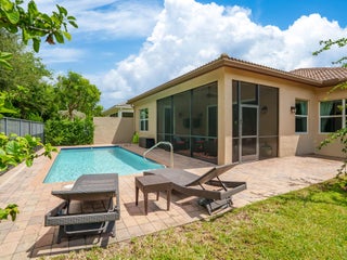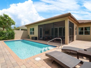 This beautiful custom home is 3002 total sf, and 2009 sf of living space, 3 bedroom, 3 full bath + Den/office, or 4th bedroom, 2 car garage, The Bimini model sits on a private lot. Includes impact windows, open floor plan, all custom floors, recessed lights with custom light package and custom trim package . The gourmet kitchen w quartz countertops, custom backsplash, built-in pantry cabinet, stainless steel appliances and under cabinet lighting. Breakfast area, dining room . Can be sold furnished or unfurnished. Screened Patio, heated pool. New ultra quiet generator, with buried LP Tank, fenced yard. HOA provides Lawn, all garden maintenance, sprinklers basic cable, clubhouse amenities.