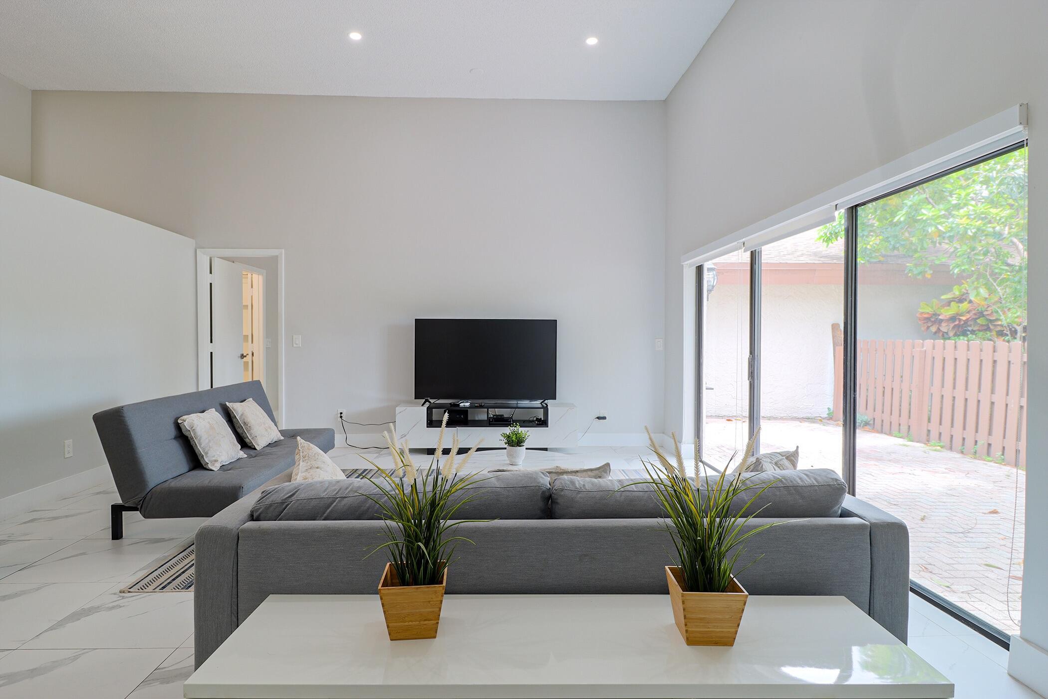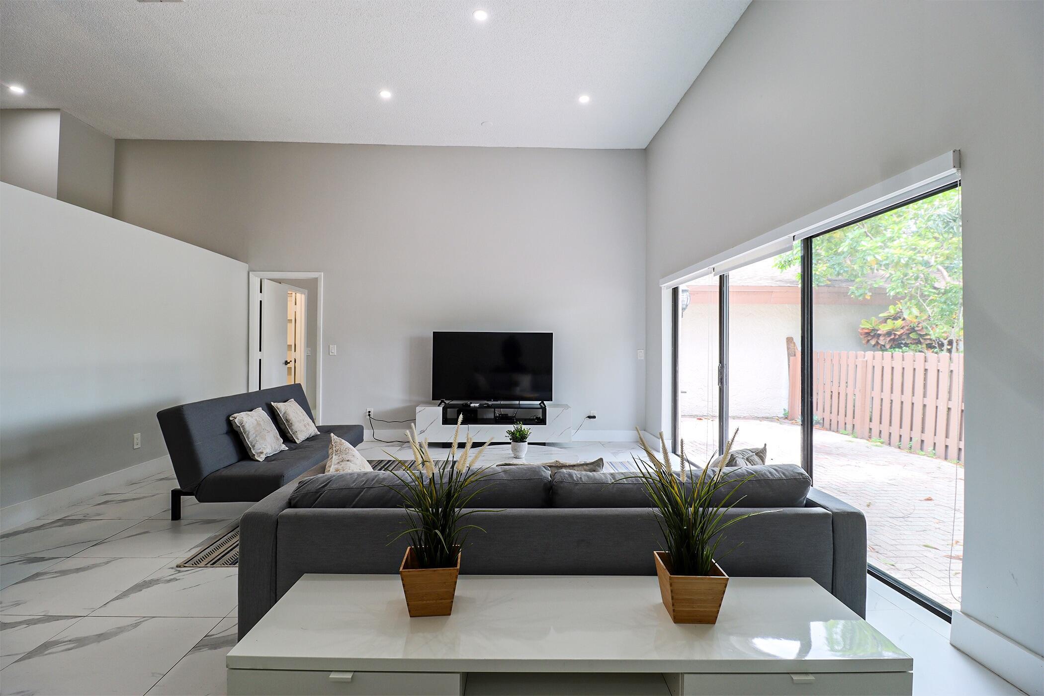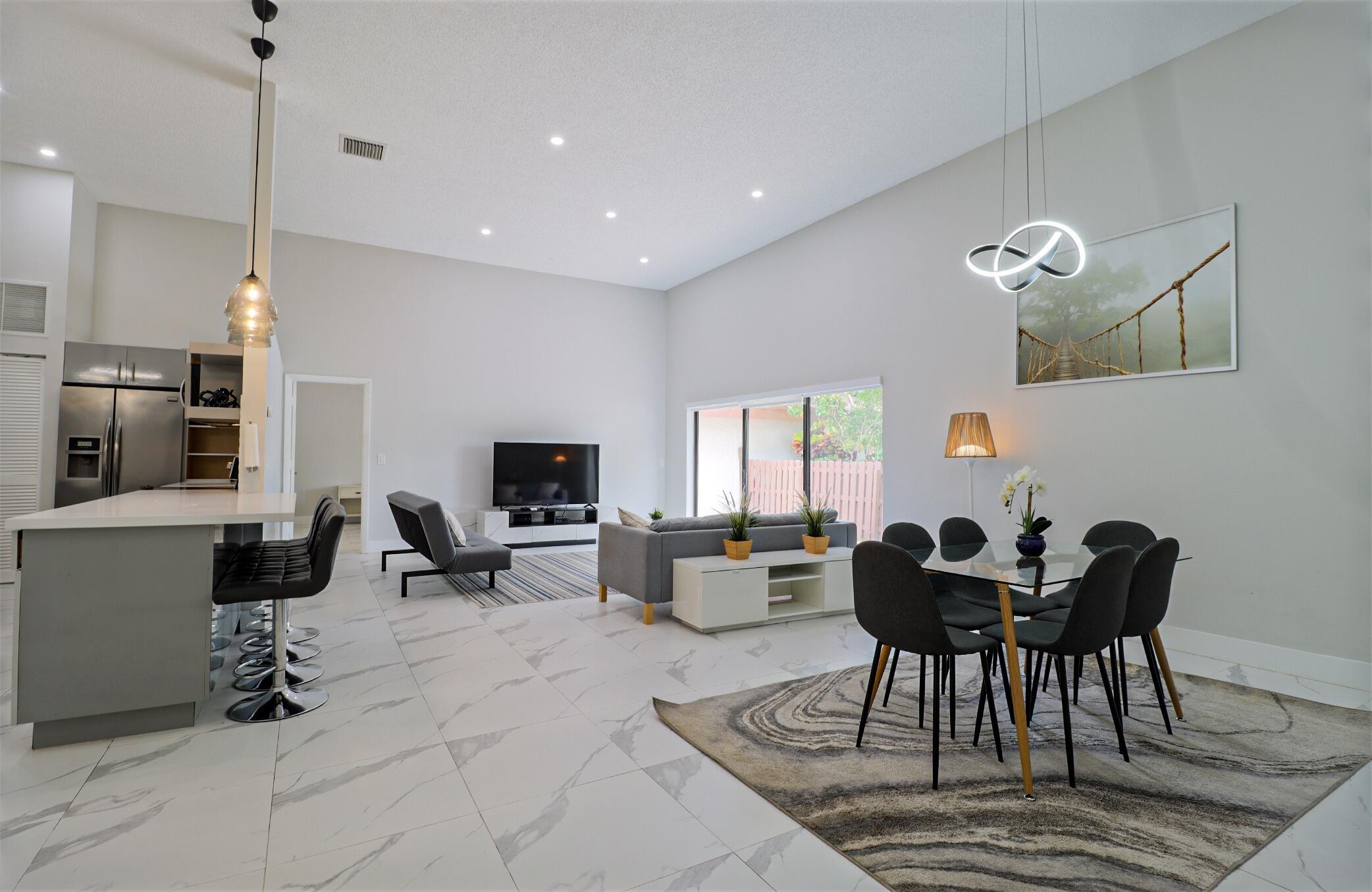 Based in the highly desirable boating community of Harbourwood Villas in Hallandale Beach, this fully renovated 3-bedroom, 2-bath villa blends modern design with coastal lifestyle. Just minutes from the beach, dining, shopping, golf, and Gulfstream Park Casino. It features an open, light-filled layout with sleek ceramic flooring, a stylish new kitchen, updated bathrooms, and all-new appliances. With two parking spaces, a private backyard with a fruit tree, and a charming walkway. The standout feature is a private boat dock and slip for up to a 45-foot vessel in the community marina, offering direct access to the Intracoastal and ocean. Offered fully furnished for turnkey convenience, with water and internet included in the HOA. This is effortless, upscale living by the water. Negotiable!