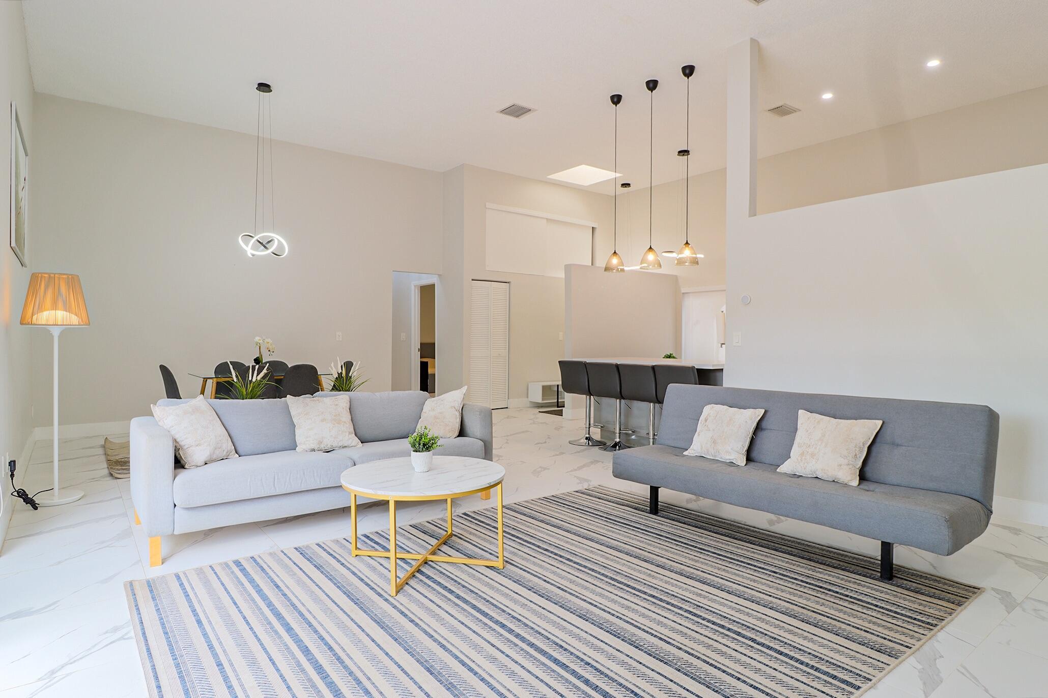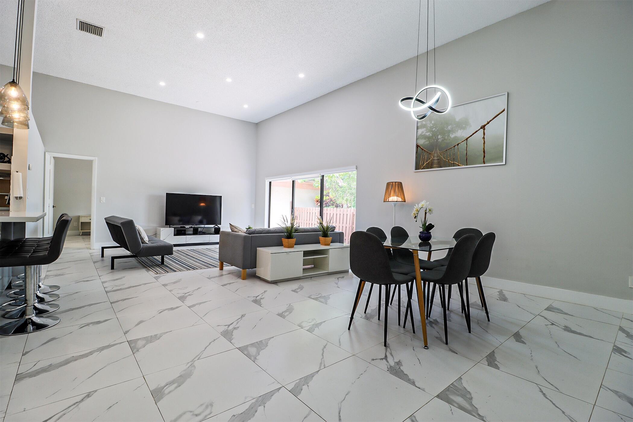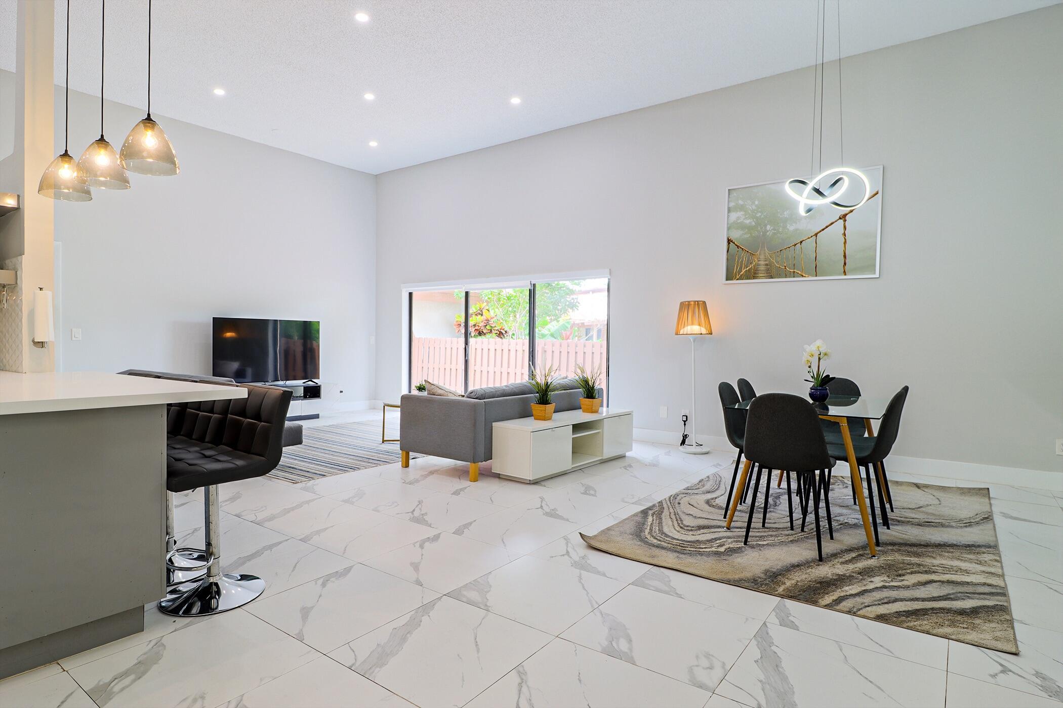 Based in the highly desirable boating community of Harbourwood Villas in Hallandale Beach, this fully renovated 3-bedroom, 2-bath villa blends modern design with coastal lifestyle. Just minutes from the beach, dining, shopping, golf, and Gulfstream Park Casino. It features an open, light-filled layout with sleek ceramic flooring, a stylish new kitchen, updated bathrooms, and all-new appliances. With two parking spaces, a private backyard with a fruit tree, and a charming walkway. The standout feature is a private boat dock and slip for up to a 45-foot vessel in the community marina, offering direct access to the Intracoastal and ocean. Offered fully furnished for turnkey convenience, with water and internet included in the HOA. This is effortless, upscale living by the water. Negotiable!