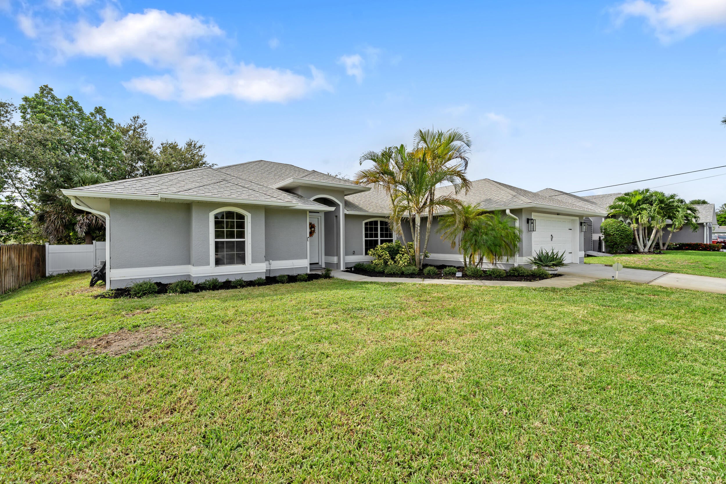 Updated 4 bedroom, 2 bathroom home with over 2,220 sq ft of living space plus a 400 sq ft Florida room in the heart of Sebastian Highlands. Open split floor plan features vaulted ceilings, new luxury vinyl plank flooring throughout, fresh interior and exterior paint, and all new light fixtures. Kitchen has been reconfigured with modern pendant lighting, Samsung stainless steel appliances, and a more open layout for easy flow. Major upgrades include new A/C (2023), brand new ductwork, new water heater (2024), and smart irrigation system. Bathrooms include new toilets and refinished guest tub. All bedrooms feature TV mounts with in-wall outlets. Large fully fenced backyard with mature oak trees offers shade and privacy. Minutes from shopping, dining, and water access with easy access toI-95, Orlando, and the beaches.