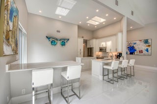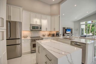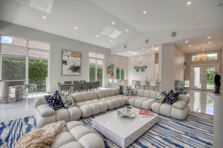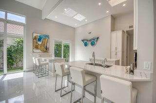 Experience elevated living in this stunning, bright, and beautifully fully renovated custom patio home, thoughtfully designed where impeccable craftsmanship meets modern elegance. Freshly painted and flooded with natural light, the open, spacious floor plan seamlessly blends indoor comfort with open views of the private pool and golf course. At the heart of the home is a stunning bespoke kitchen featuring custom cabinetry, premium appliances, stone countertops and center island, designer backsplash, and a waterfall island, perfectly capturing sophisticated style. Additional interior enhancements include smooth-finish ceilings, LED recessed lighting throughout, updated door hardware, Mirage hardwood flooring, Minka Aire ceiling fans, new closet doors in all bedrooms, an imported Spazioliving room wall unit from Italy, and an upgraded garage with epoxy floors and its own AC mini split unit and a Tesla charging station. The home also boasts two new HVAC systems with expanded ductwork for improved airflow. Also recently added a new 500 gallon propane tank. Exterior improvements include a freshly painted exterior, new landscaping with lush greenery, pet-friendly artificial turf dog run (K9 Pro/K9 Lush), upgraded perimeter and pathway lighting, impact windows, new exterior ceiling fans, a new pool pump with iAqualink remote system, with outdoor security cameras. Situated within the prestigious Frenchman's Creek Beach & Country Club, residents enjoy first-class concierge service and an unrivaled collection of five-star amenities. This private, meticulously planned 700-acre community of just 600 homes offers a lifestyle beyond compare. Highlights include the brand-new, state-of-the-art clubhouse set to open in September, an exclusive private beach club, a world-class fitness center, full-service spa, two championship 18-hole golf courses, tennis and pickleball complex, gourmet dining venues, year-round entertainment, and so much more. Here, architecture, nature, and world-class service come together to define exceptional South Florida living.
