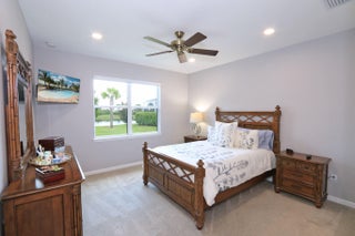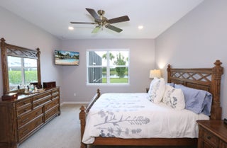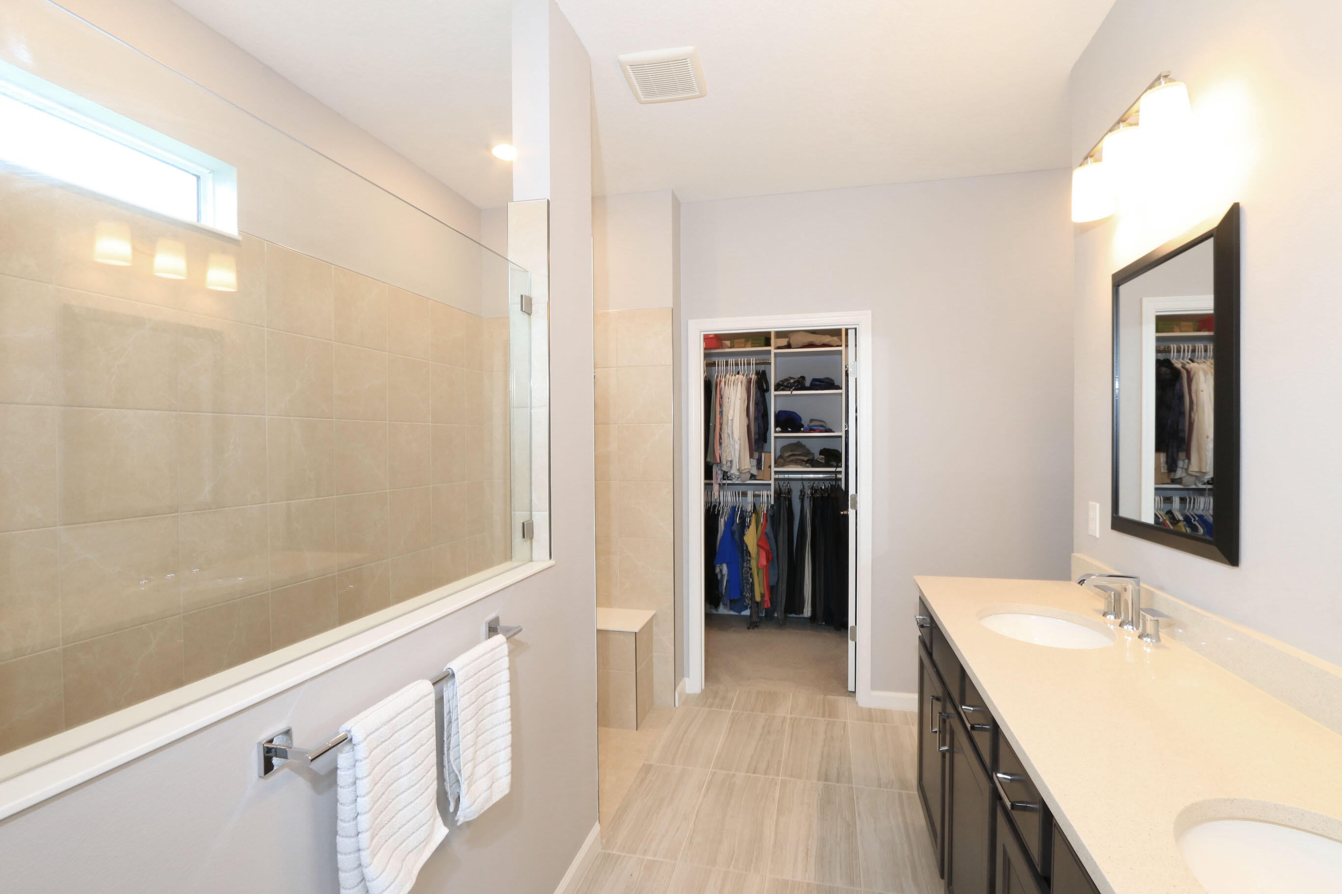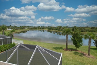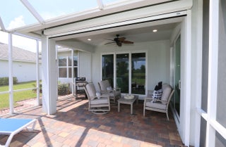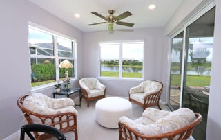 Gorgeous Prosperity Model Lakefront Home in Del Webb. Very private view with the lake and preserve. Walk to clubhouse, pool, sports courts. Highly upgraded throughout. Custom kitchen cabinets with glass doors, Quartz countertops, designer backsplash, huge walk-in pantry with shelving, GE profile black slate French door refrigerator, gas range. Hunter Douglas custom window treatments. Expanded sunroom. Flexroom great for den or 3rd bed.Spacious patio with window screen for a perfect view of the lake. Motorized Hunter Douglas Magna Trac Hurricane Screens with remote. Large master bath with walk in shower. Electrolux front load washer, dryer with base. Full house water softening system. Custom garage floor by Swiss Trax. Refrigerator to be replaced with Whirlpool brand new S.S. side by side