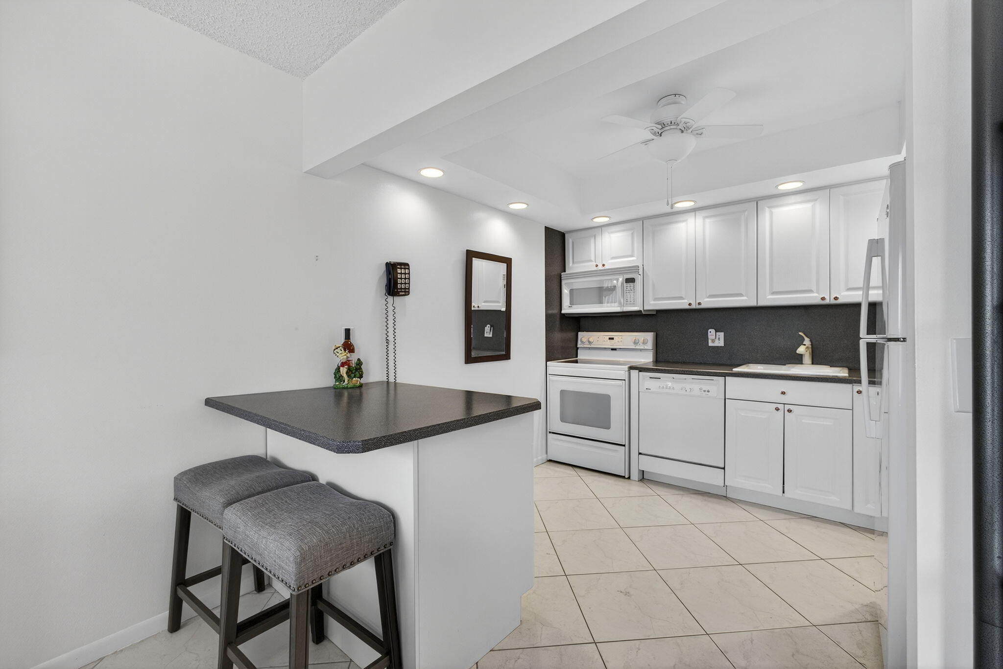 Look no further--your perfect Florida retirement home is here!This beautifully updated 2-bedroom, 2-bath condo boasts stunning lake views and a light-filled open layout. The enclosed lanai provides a peaceful retreat overlooking the water. Inside, you'll find fully renovated bathrooms with designer finishes, and neutral porcelain tile throughout--no carpet! Additional upgrades include impact windows and doors for peace of mind, a new A/C (2021), and water heater (2022). Truly move-in ready.