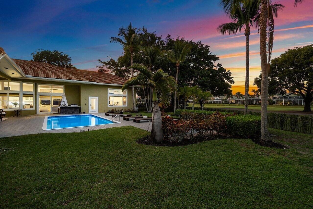 Discover a home that combines modern upgrades with timeless charm, offering more than 5,000 square feet of living space, 6 bedrooms with renovated en-suite bathrooms, and a total of 6.5 baths. Sitting on a lushly landscaped .61 acre, this property enjoys views of the 14th hole on the Palmer Course, a gorgeous backdrop for both relaxation and play. Completely remodeled within the last decade, with incredible 22 ft ceilings, this home features new air conditioning systems, upgraded impact windows, new garage doors for the 3.5 car garage, and a thoughtfully designed addition with custom barn doors that can close off the freshly created family room. The kitchen is a true chef's kitchen, which comes equipped with top of the line Wolf and Sub-Zero appliances, which includes a Wolf Range.After the sun sets, strategically placed exterior lights showcase the landscaping and architecture. Out back, you'll find a large heated, pool with salt chlorination, new coatings, tile, heater, and pumpperfect for unwinding or hosting weekend get-togethers. The HVAC offers 4 zones and is routinely serviced. Units were manufactured in 2014, 2018, 2023 and 2023. The brand-new outdoor barbecue kitchen is set up for alfresco dining, and the half-court basketball area is ready for friendly pickup games. When you're ready to wind down, catch the sunset under the banyan tree. And there's more: the Preston community, widely considered the crown jewel of PGA National Resort, is located less than half a mile from the fantastic amenities at PGA National Park. It's a place where thoughtful details, modern comforts, and a prime location come together to create a truly inviting home.