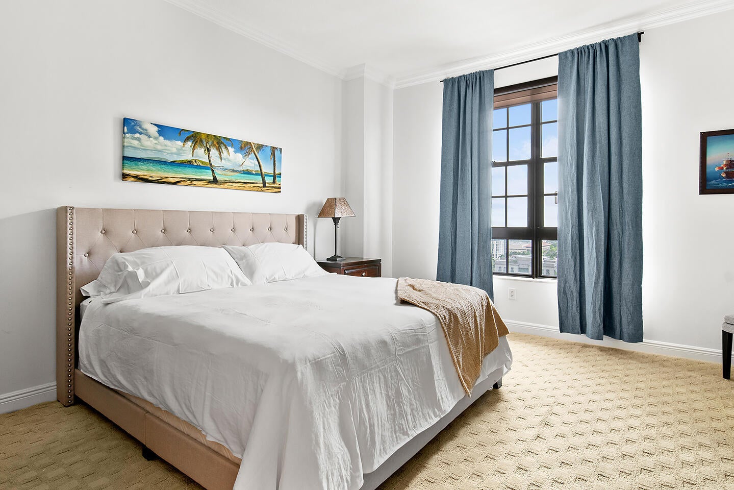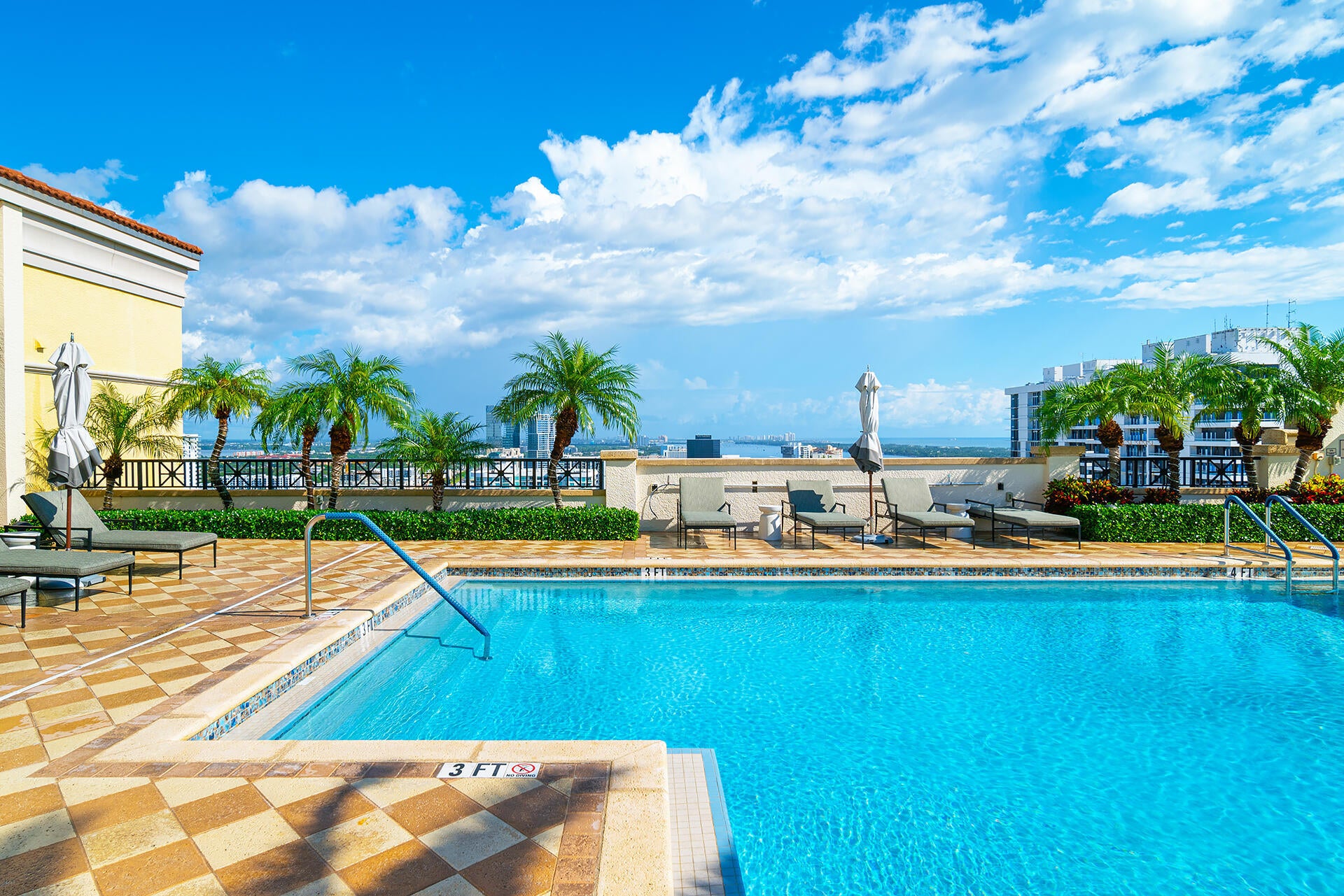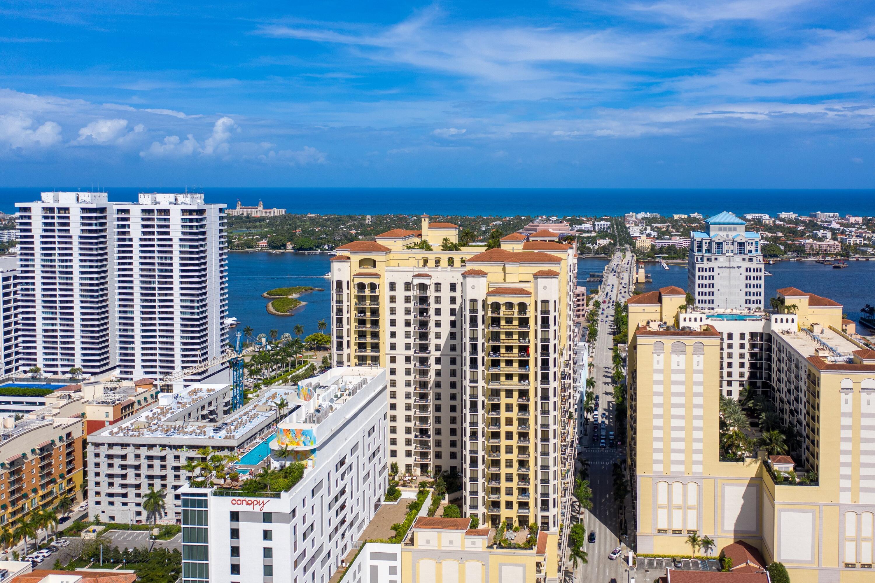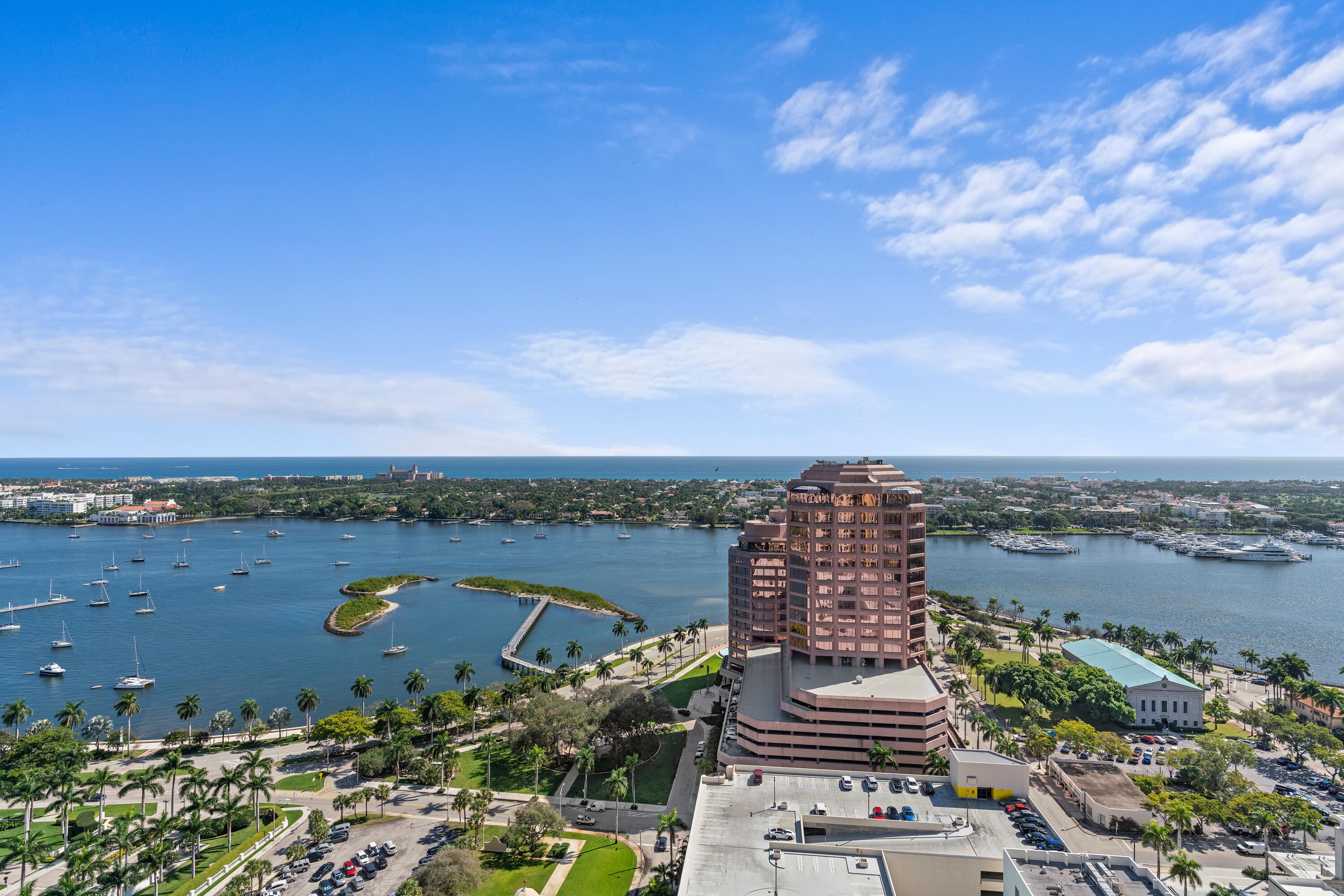 This 2/2 + den condo is an incredible furnished rental in the luxury high rise of Two City Plaza! Unique corner floor plan at 2,156 square ft and windows all throughout. You will enjoy entertaining in your chef's kitchen while watching the sunset & gorgeous northeast intracoastal water views from the living room. Guest bedroom has a daybed with a trundle bed underneath and the den has a full size pull out couch. A separate laundry room with tons of cabinet storage space. Walkability to all shopping & dining, intracoastal and Palm Beach make this the perfect home away from home! Amenities include stunning rooftop pool, fitness center, steam room & sauna, movie theatre, club room, complementary valet parking and 24 hr front desk. 6/mth min.