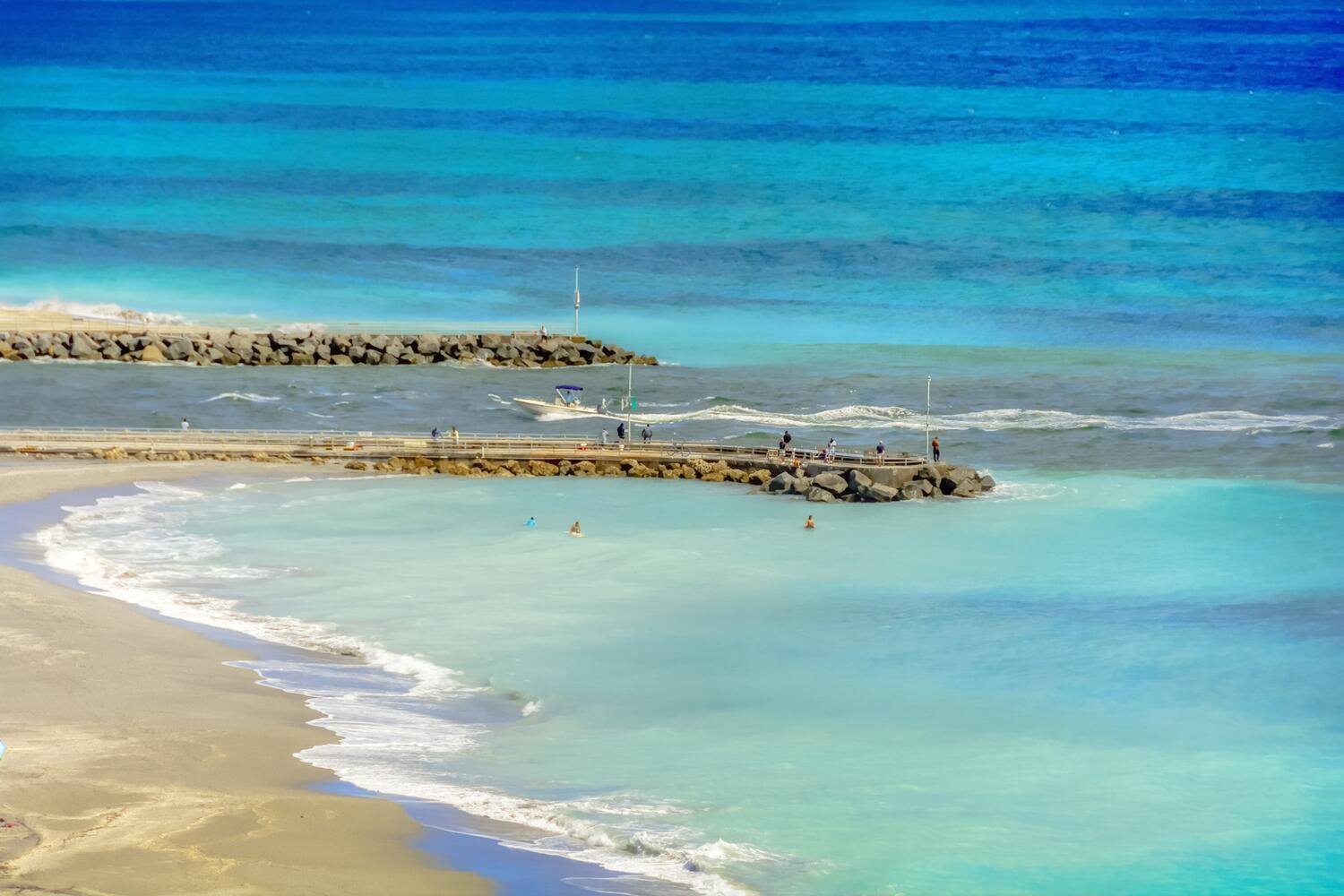 Jupiter is 12 miles north of Palm Beach Shores via I-95 and Rte. 706. Jupiter is one of the few little towns in the region not fronted by an island. Beaches here are part of the mainland, and Route A1A runs for almost 4 miles along the beachfront dunes and beautiful estates.