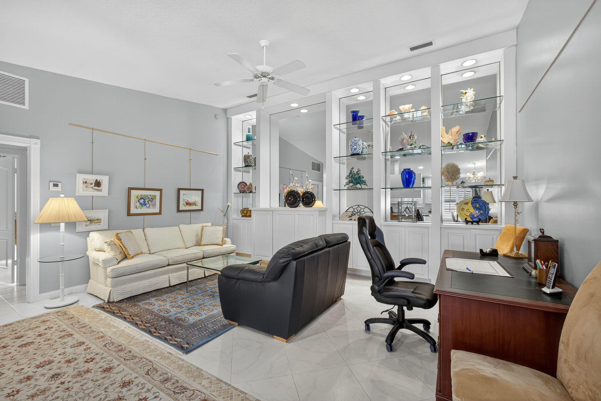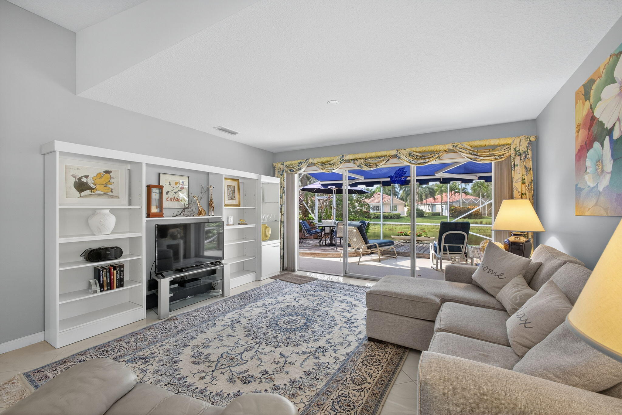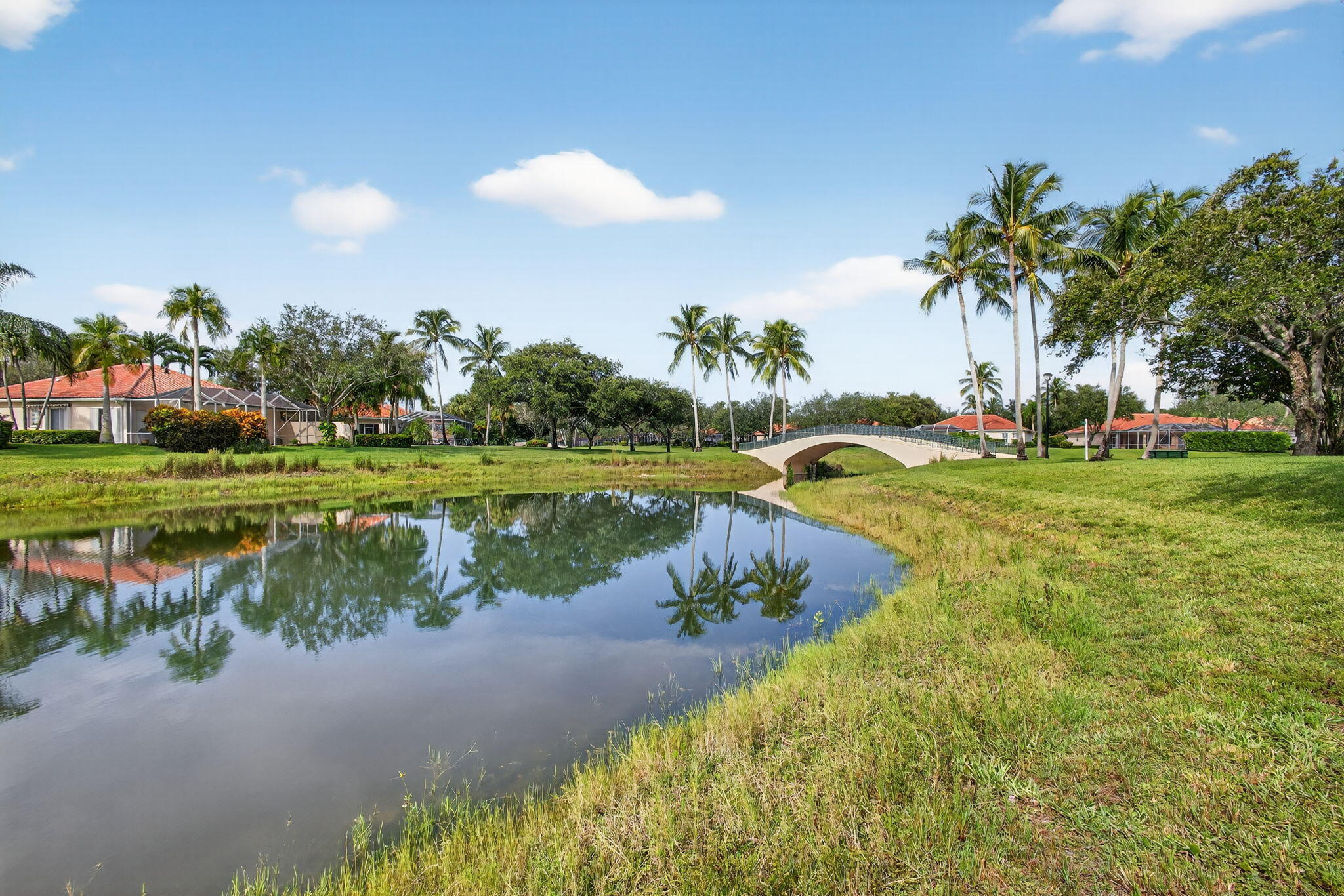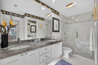 Artist-Owned & Curated Villa w Stunning Waterfront Views! Step into this beautiful move-in-ready 2BR / 2BA villa with a 2-car garage & NEWER ROOF (2022) in the sought-after Riverwalk community. DON'T WAIT This home is full of thoughtful upgrades & creative touches. Enjoy fabulous views from the spacious screened lanai featuring plank and concrete flooring & electric awning, fountain-perfect for entertaining, sipping your favorite beverage, or simply relaxing / chillin. This solid DiVosta-built home offers peace of mind with a newer roof, accordion hurricane shutters, & concrete construction. Inside, you'll find a updated kitchen &, plantation shutters, newer renovated main bathroom with dual sinks and a walk-in shower, granite countertops, tile flooring, and stainless steel appliances.features include: " Plantation Shutters " Electric Awning " Large bedrooms and living spaces " Central vacuum system " Generous laundry room " Plenty of storage throughout Riverwalk offers a prime location W on site restaurant & just minutes to PBI Airport, Downtown West Palm Beach, Palm Beach Island, top-tier dining, shopping, and more! This DUPLEX style villa (only 2 per building) is naturally a corner unit that feels like a home.