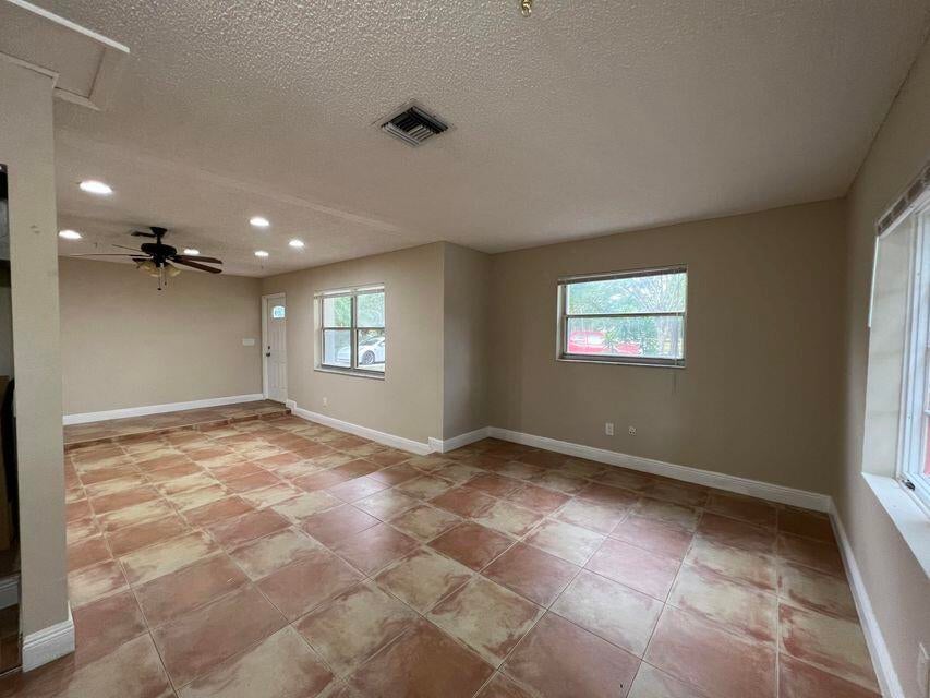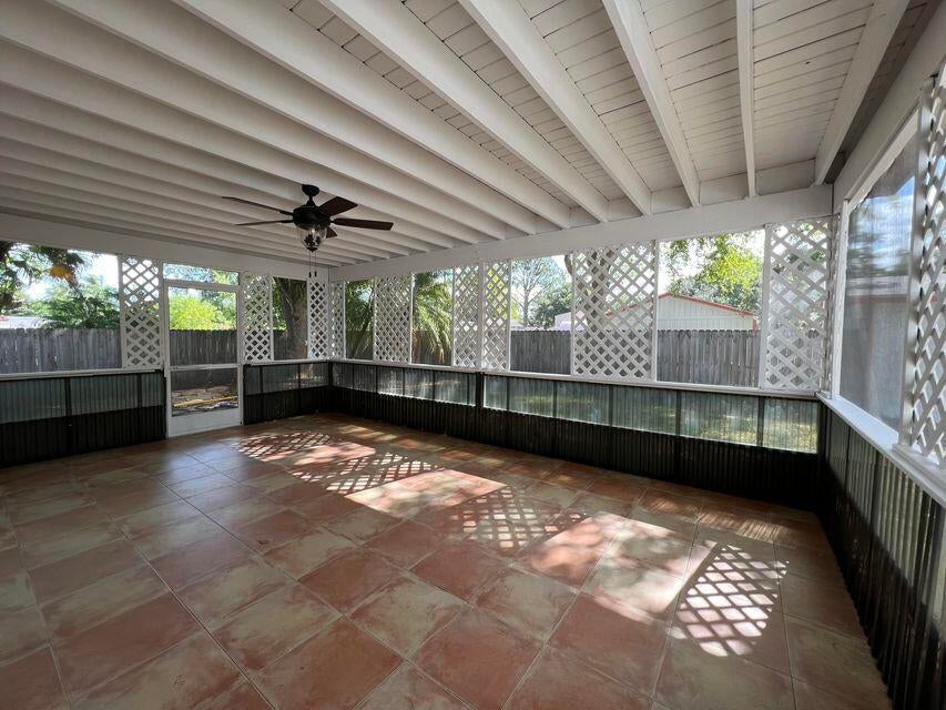 This is a unique single family house located off Lantana Rd in Palm Beach Farms with over 1/2 acre and no HOA. and great schools. The house is 3 beds/2 full baths, covered screened patio and several storage buildings in the back. The back yard is fenced and pets are welcome. You could use as a workshop or just store stuff. Easy to show and move in right away. Bring your RV, trailers or work equipment. Seller is negotiable on credit score as long as income meets 3x mo rent.