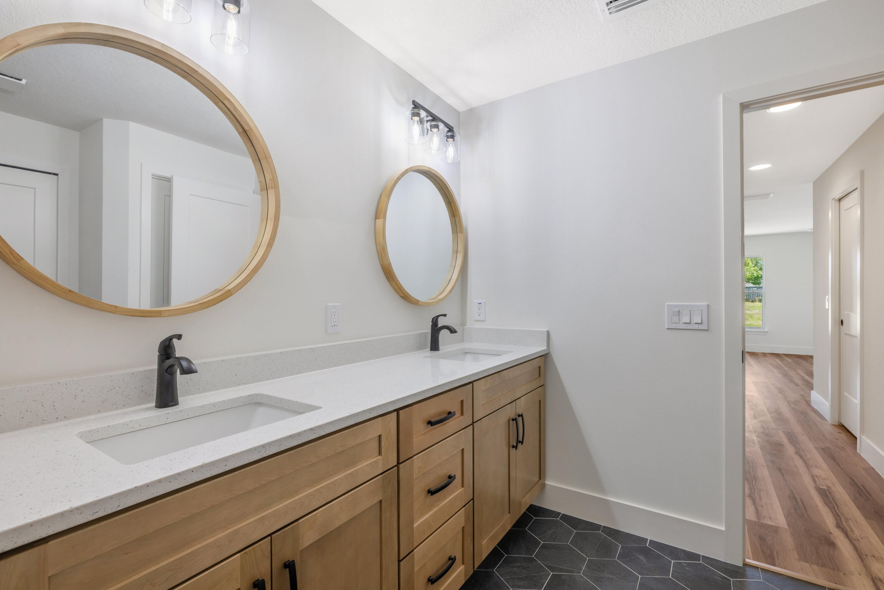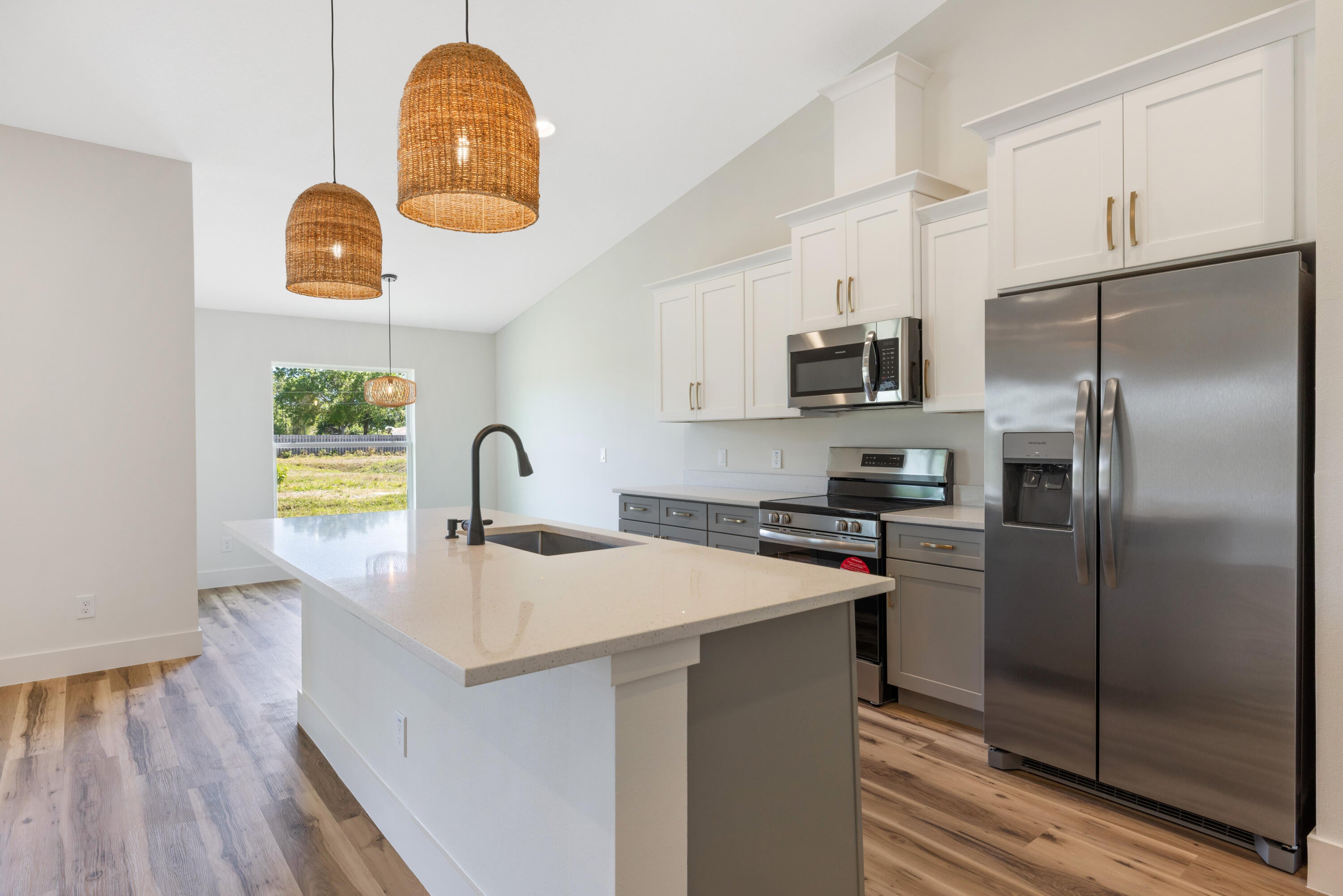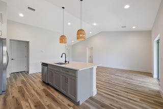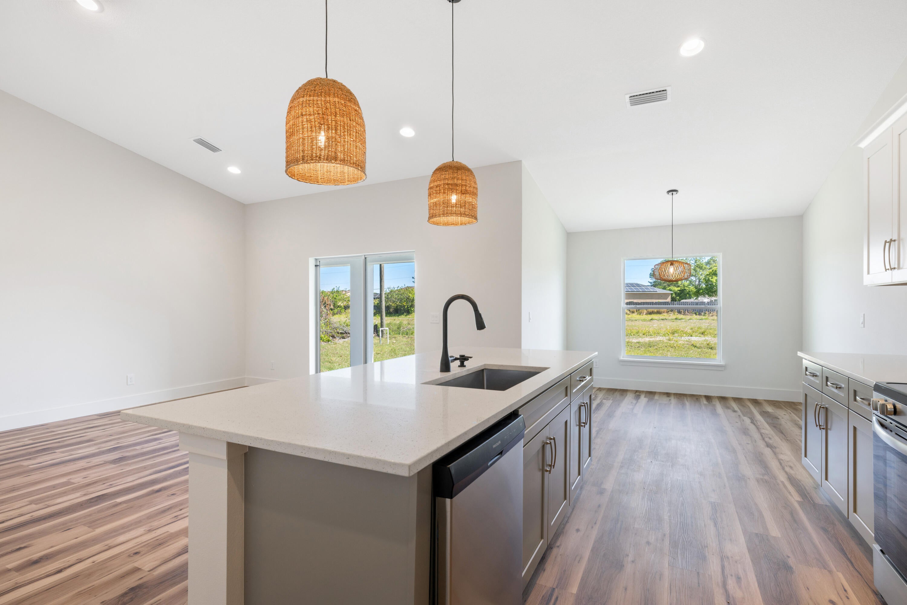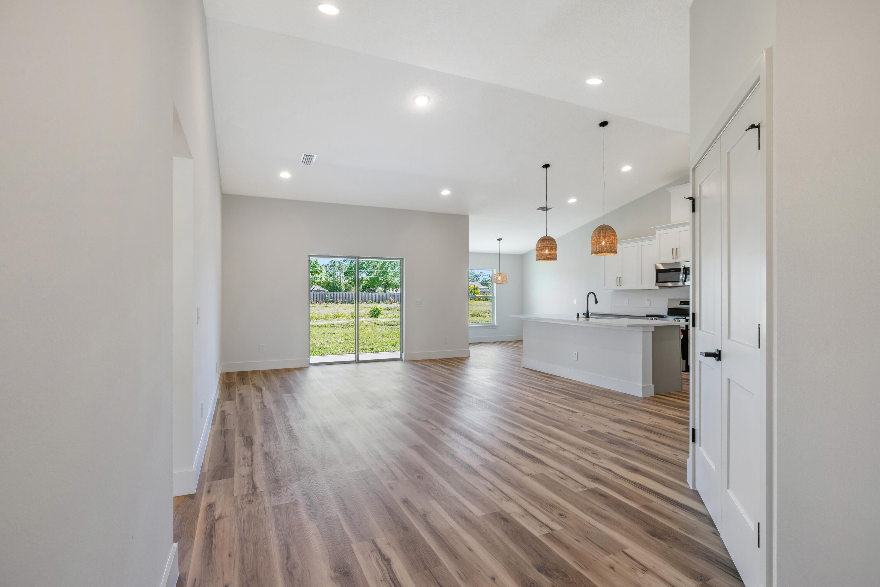 This beautifully designed, 2025 construction 3-bedroom, 2-bathroom home offers modern elegance and thoughtful upgrades. With a flex room, it's perfect for remote work or extra living space. The primary suite features a freestanding soaking tub for a spa-like retreat. An open-concept layout fills the home with natural light, while the gourmet kitchen boasts stainless steel appliances and granite countertops with an island. The spacious backyard is ideal for relaxing or entertaining. The home backs up to an easement so there is extra space behind for added privacy! Your dream home in Palm Bay is waiting: spacious, stylish, and perfectly located. Schedule your showing today!