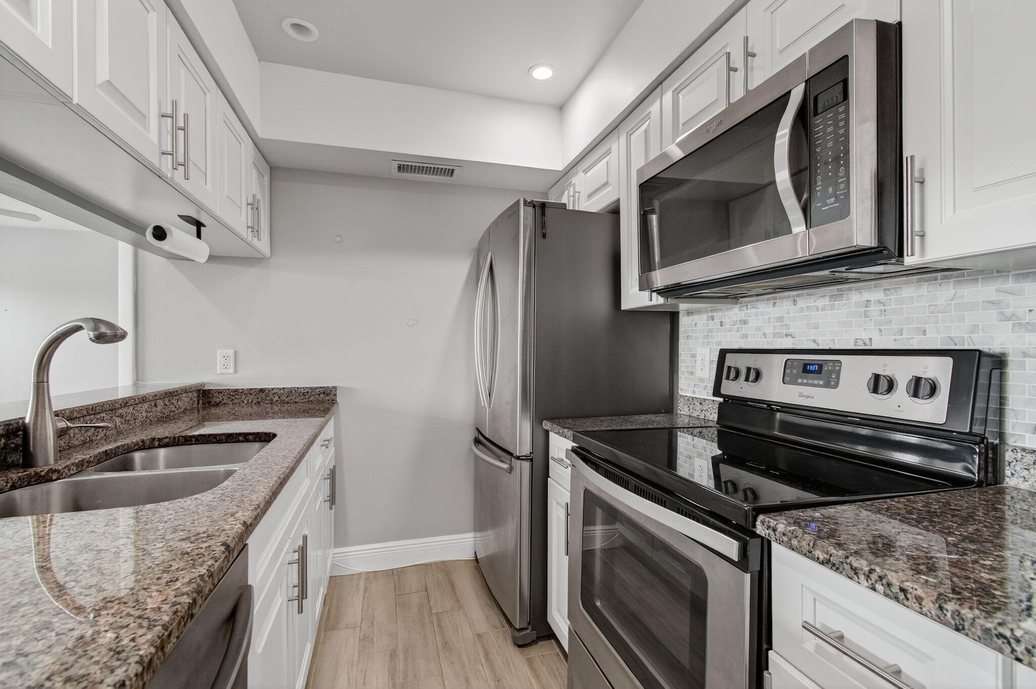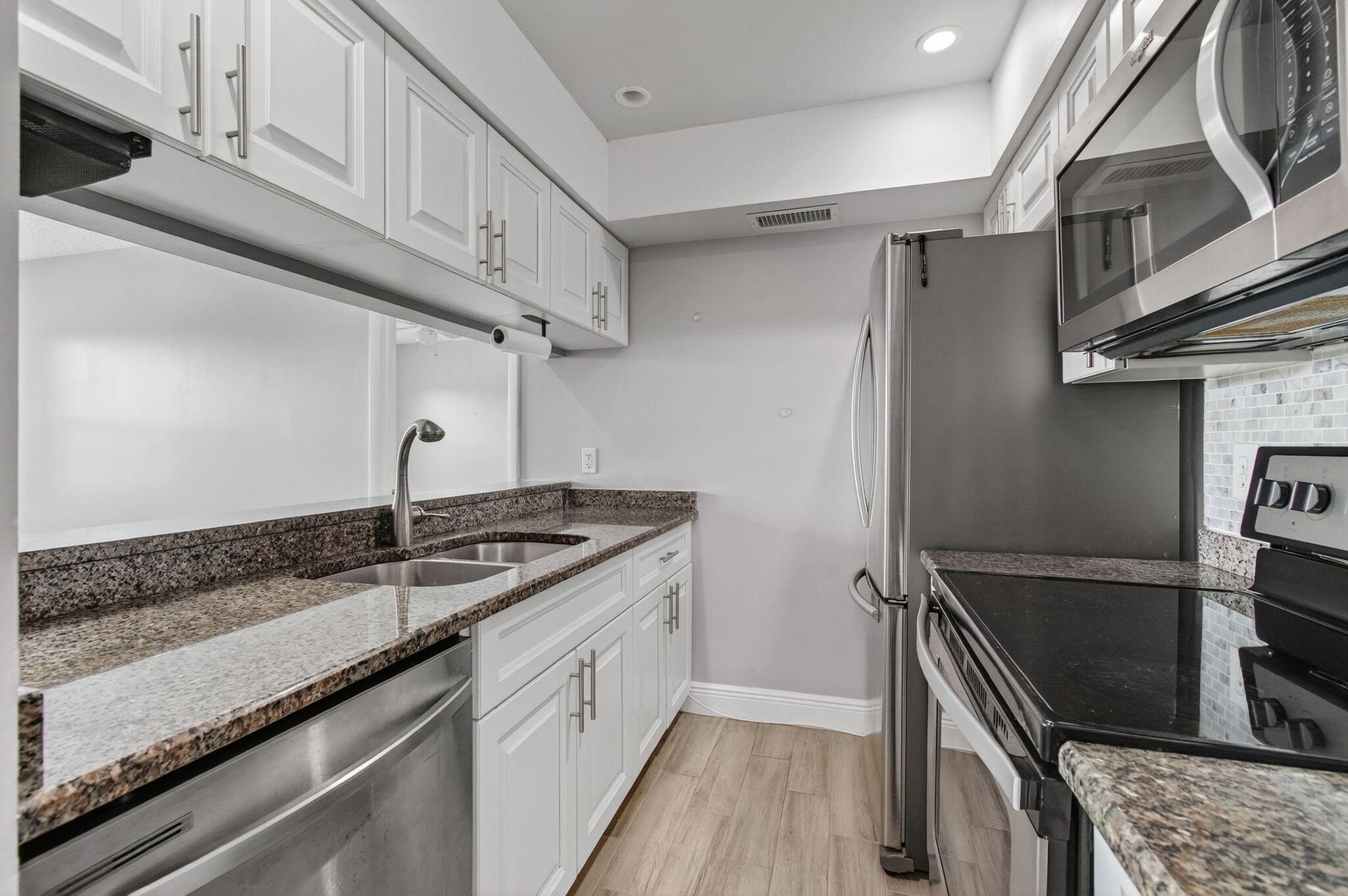 Charming and cozy 2nd-floor condo in the desirable ''All-Age'' section of Lucerne Lakes! This inviting 2-bedroom, 2-bathroom home boasts nicely sized bedrooms and modern upgrades, including granite kitchen counters, stainless steel appliances, and new flooring throughout. Stay comfortable year-round with a 2017 AC and water heater, plus a 2023 washer and dryer for added convenience. Enjoy peace of mind with metal panel hurricane protection. The main bedroom features a spacious walk-in closet. Attic space, accessible from the screened-in front porch, provides extra storage. Conveniently located near grocery stores and Florida's Turnpike for easy access to shopping and travel. Perfect for those seeking a move-in-ready home in a vibrant community!