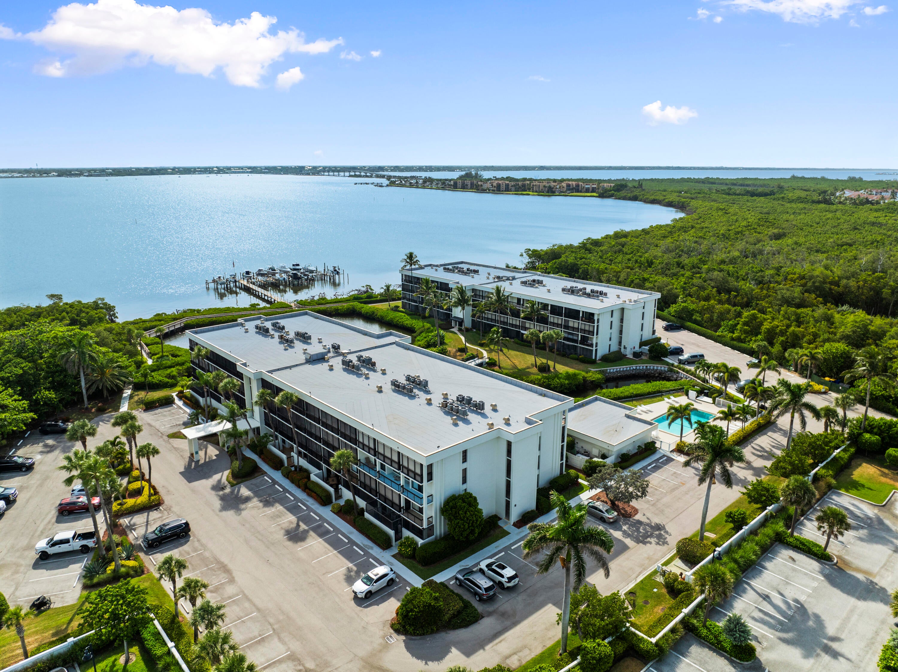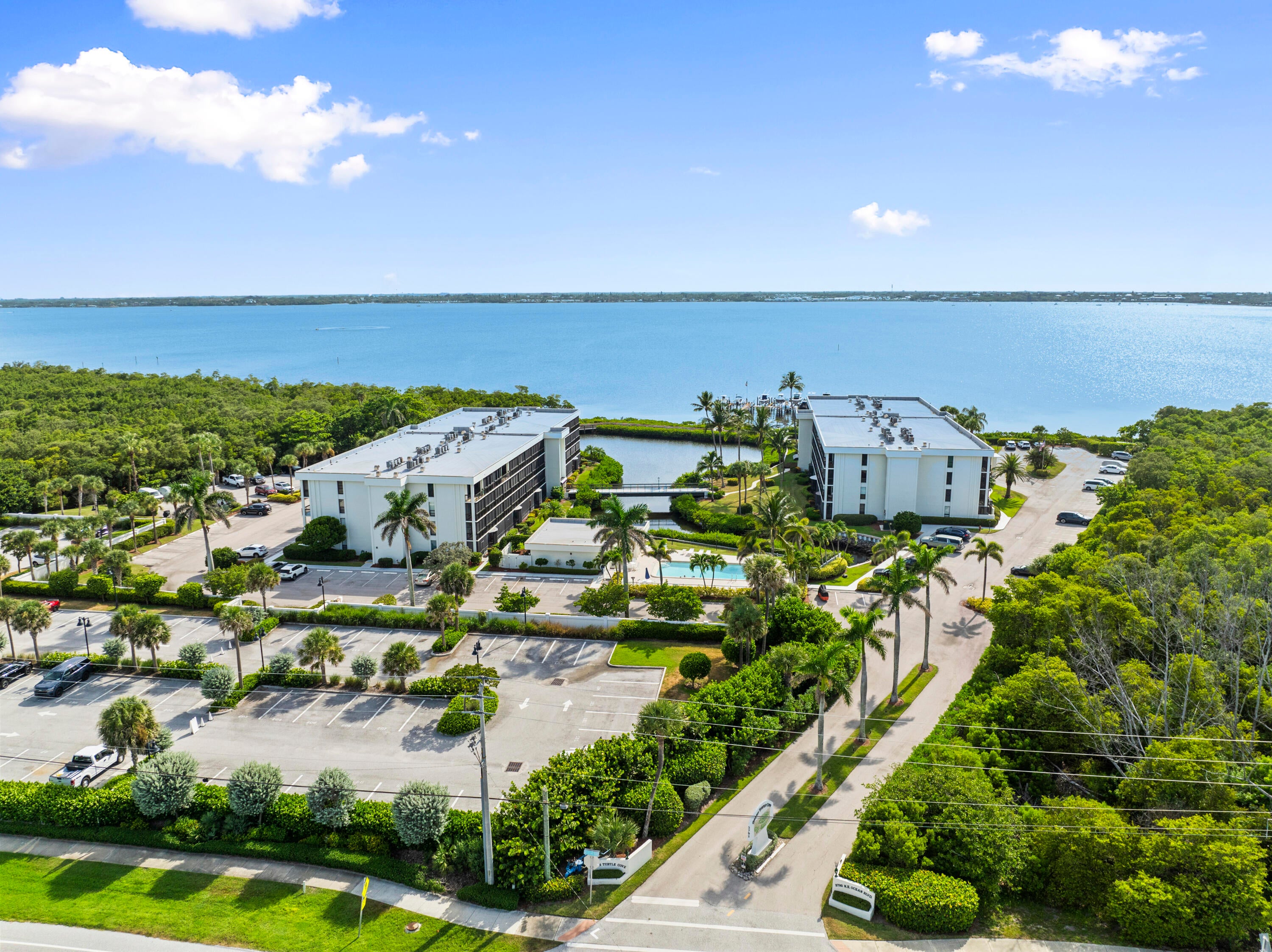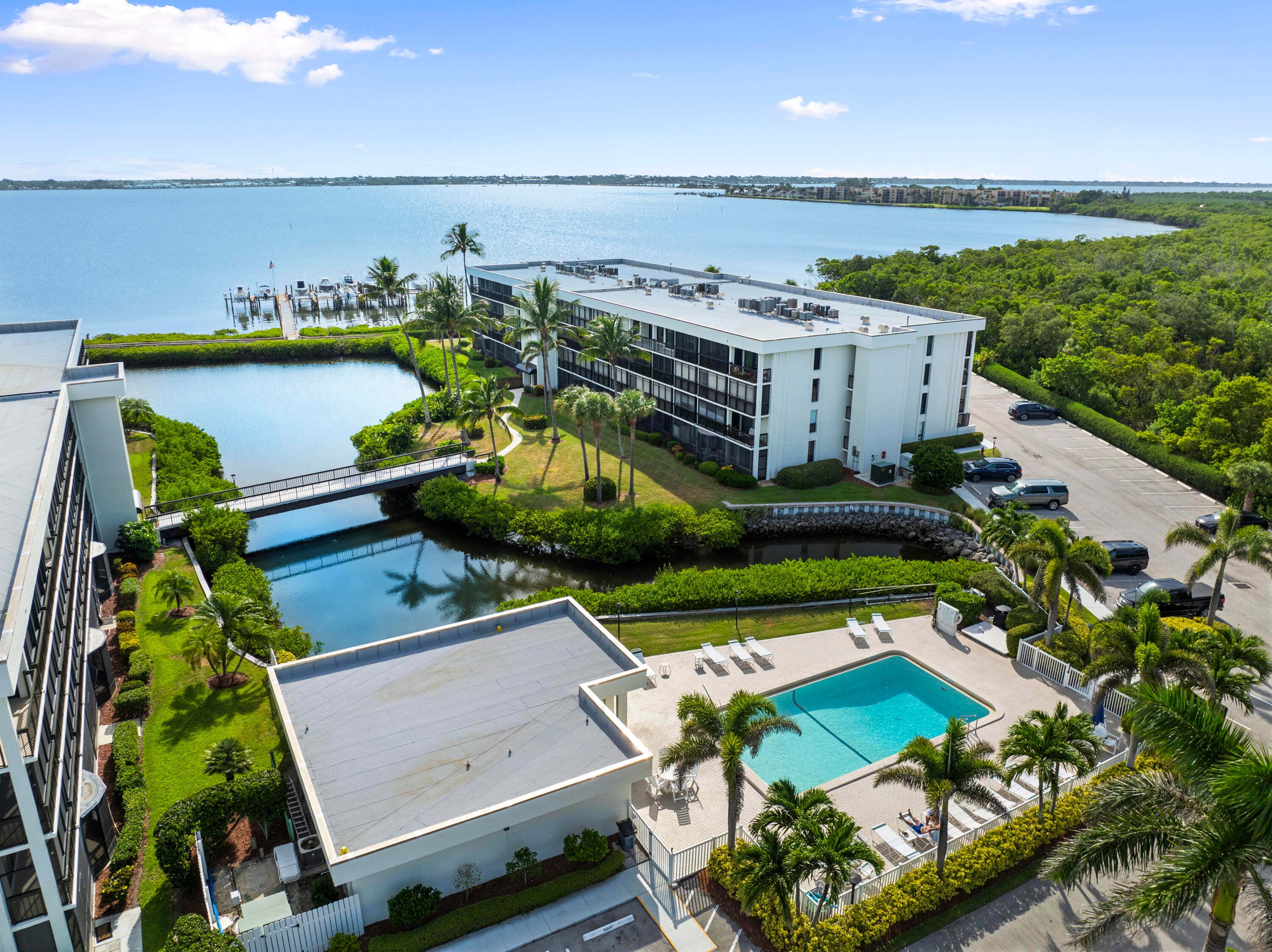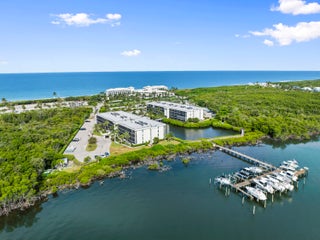 Waterfront 2Bed 2Bath condo with spacious patio. Dock slips up to 40' boats on the Indian River upon availability. Located across from Hutchinson Shores Resort & Jensen Beach with public access. Comm. Marina, Clubhouse, Heated Swimming Pool, BBQ & Gym. Fully furnished Tommy Bahama inspired decor. Kitchen has white cabinets, SS appliances, white counters & SS backsplash. Porcelain tile wood plank floors. Beverage cooler, and wine chiller. Main suite features PGT impact sliding glass doors to patio spacious, walk-in closet and second standard closet. Main bath has been renovated with new vanity and vessel sink. Roof 2025, Hot water heater 2024 & A/C in 2009. Stack washer dryer in unit.