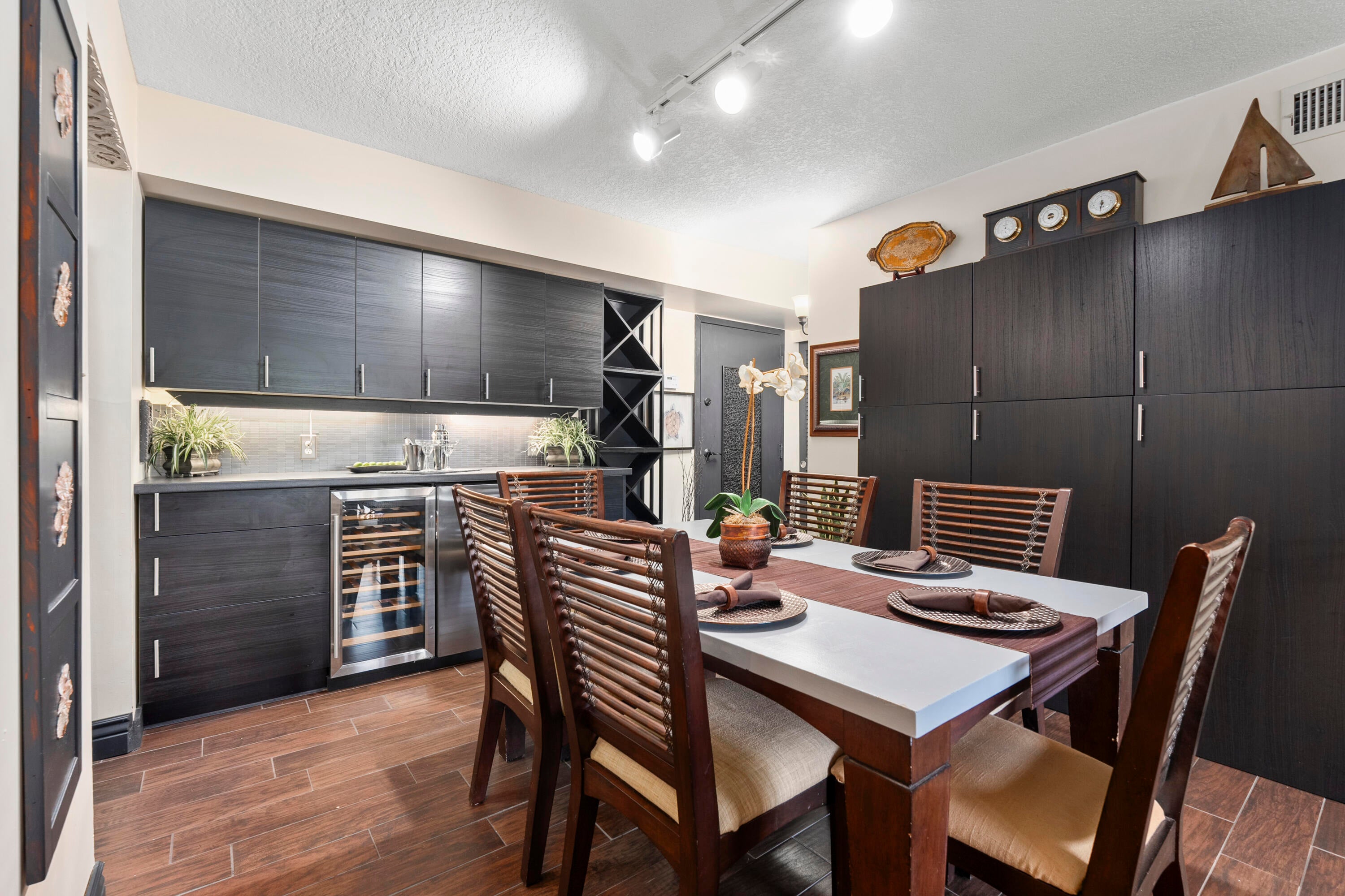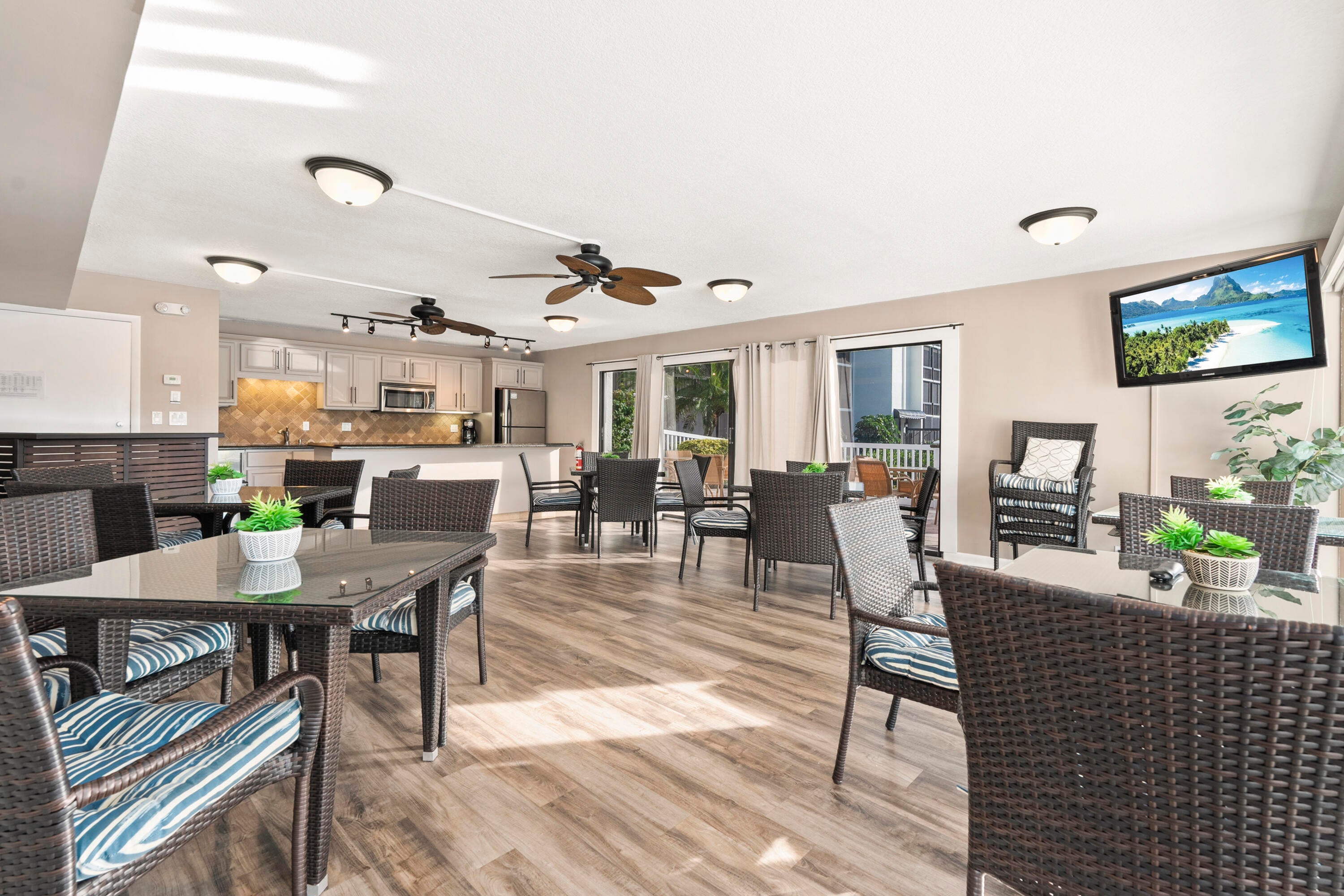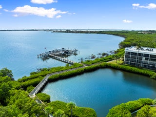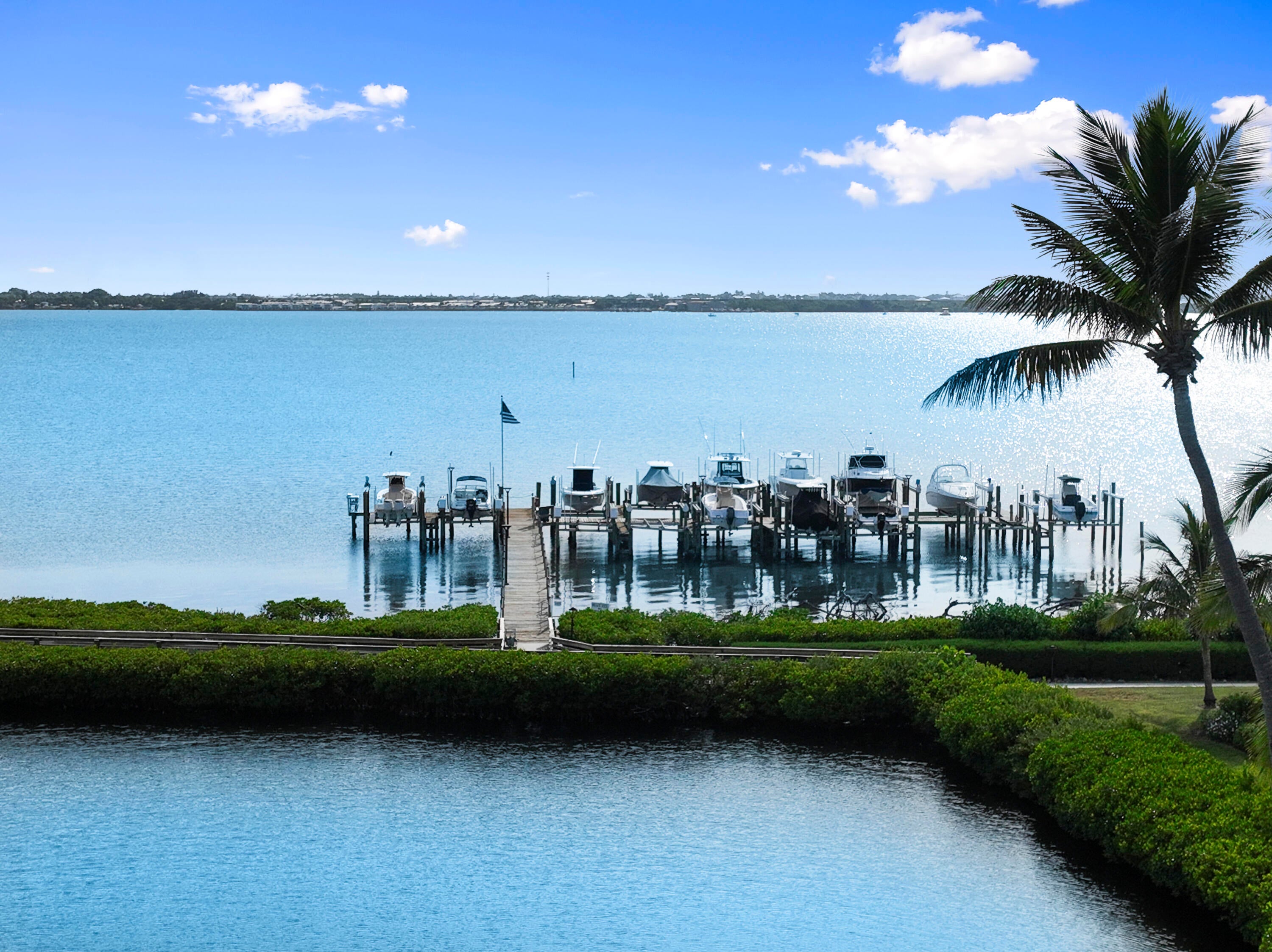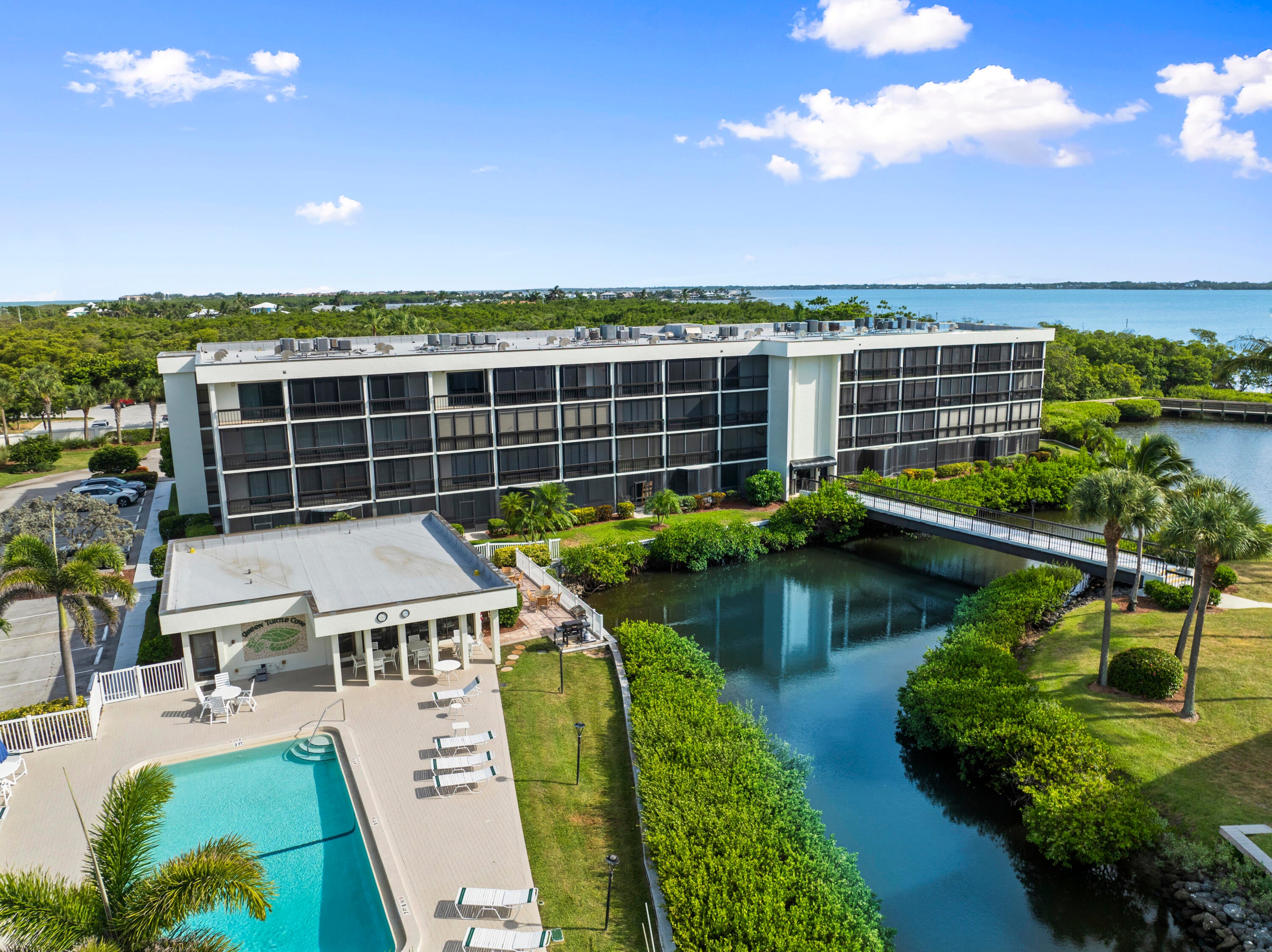 Waterfront 2Bed 2Bath condo with spacious patio. Dock slips up to 40' boats on the Indian River upon availability. Located across from Hutchinson Shores Resort & Jensen Beach with public access. Comm. Marina, Clubhouse, Heated Swimming Pool, BBQ & Gym. Fully furnished Tommy Bahama inspired decor. Kitchen has white cabinets, SS appliances, white counters & SS backsplash. Porcelain tile wood plank floors. Beverage cooler, and wine chiller. Main suite features PGT impact sliding glass doors to patio spacious, walk-in closet and second standard closet. Main bath has been renovated with new vanity and vessel sink. Roof 2025, Hot water heater 2024 & A/C in 2009. Stack washer dryer in unit.