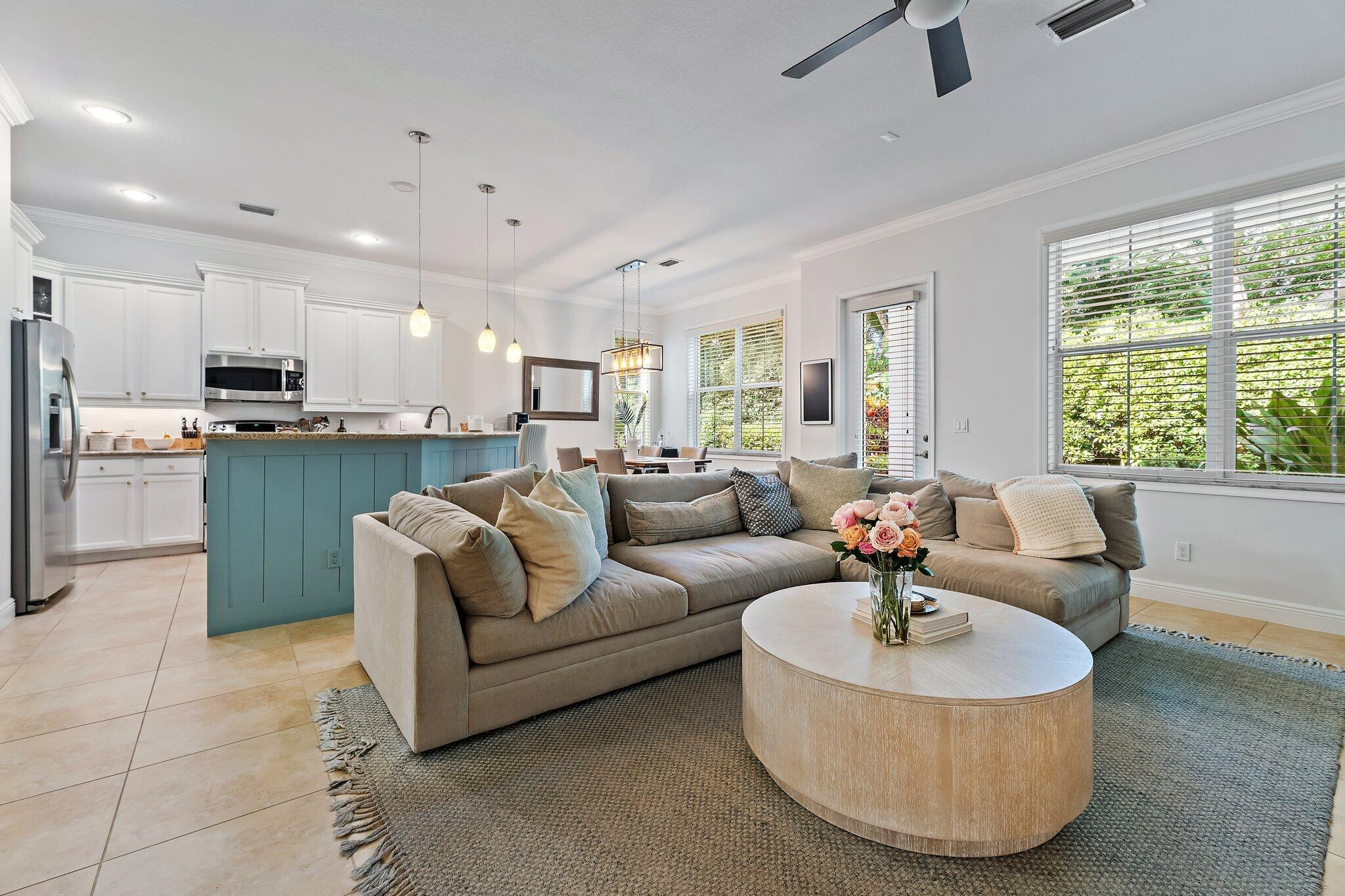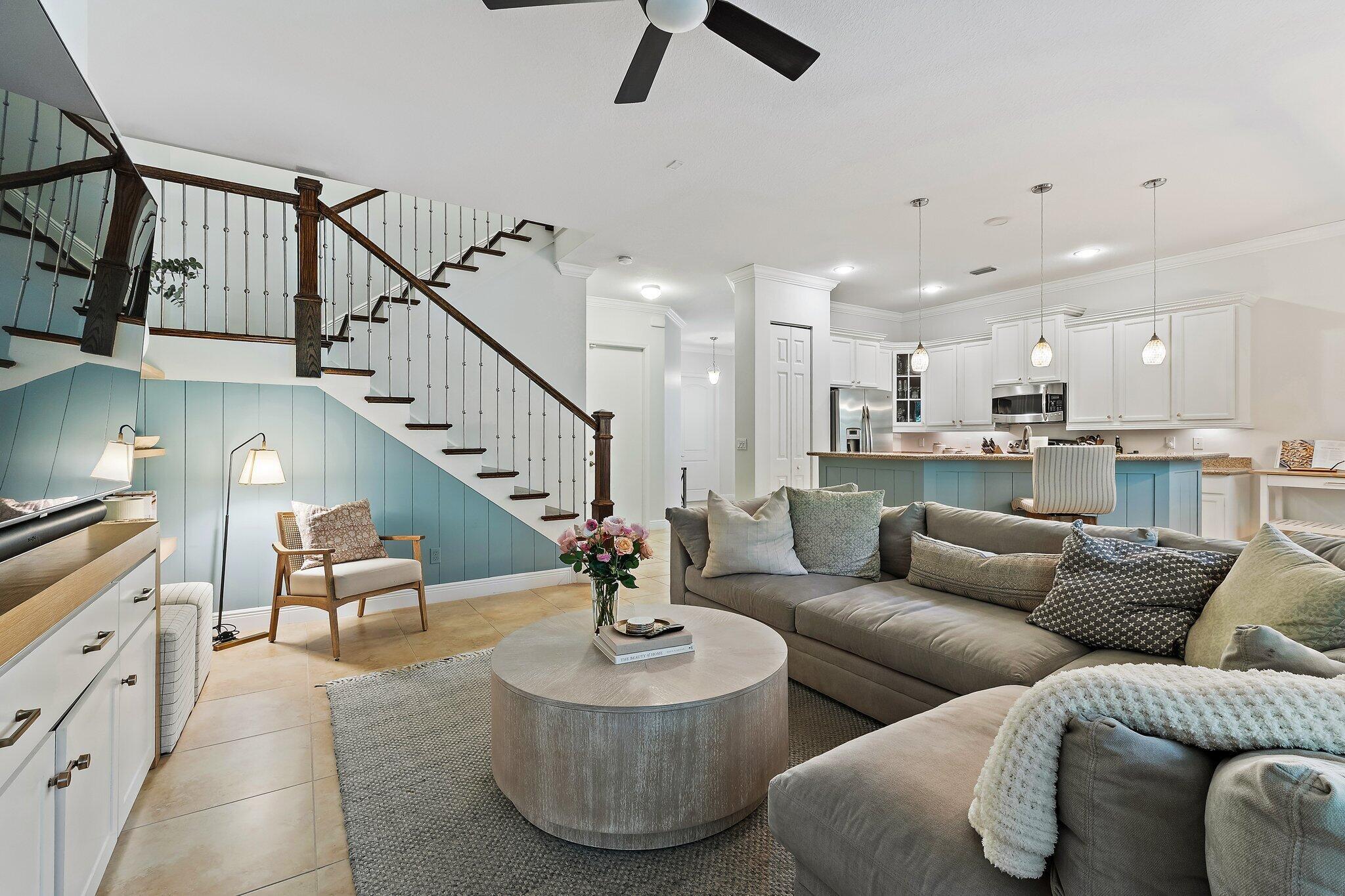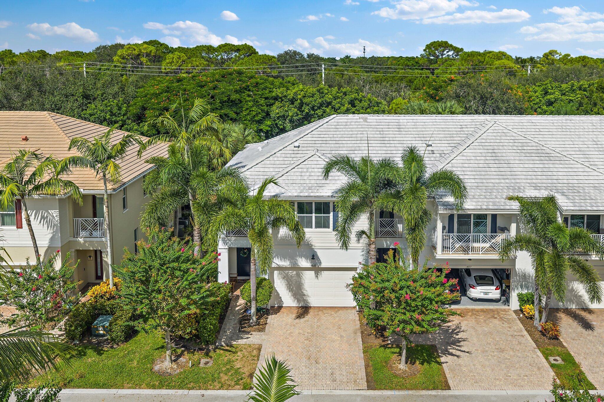 Welcome to 4033 Kingston Lane, a beautifully updated, 2 story corner townhome in the desirable gated community of Hampton Cay. This spacious residence offers 3 bedrooms, 2.5 bathrooms, a 2-car garage, and over 2100 Sf of living space, with all-impact windows and approximately $100k in upgrades. The open concept layout features tile flooring throughout the main living areas, luxury carpet upstairs, and a modern kitchen with stainless steel appliances, perfect for both everyday living and entertaining. A stunning custom built-in wall anchors the large family room, which opens to a private patio, ideal for relaxing, dining, or hosting guests. Upstairs, all bedrooms are conveniently located together, including a laundry room and the expansive primary suite with a large balcony, 2 walk-inclosets and a completely renovated bathroom featuring a soaking tub and separate glass-enclosed shower. Hampton Cay residents enjoy resort-style amenities, including a clubhouse overlooking the community lake, heated pool, hot tub, outdoor lounge, fitness center, and billiards. Cable and internet are included in the HOA. The community's prime location offers walkability to PGA Boulevard's restaurants and shops, top-rated schools, parks, tennis and pickleball courts nearby, plus quick access to I-95 and the beaches. This is the ideal home to enjoy the year-round coastal lifestyle of Palm Beach Gardens and the Palm Beaches.