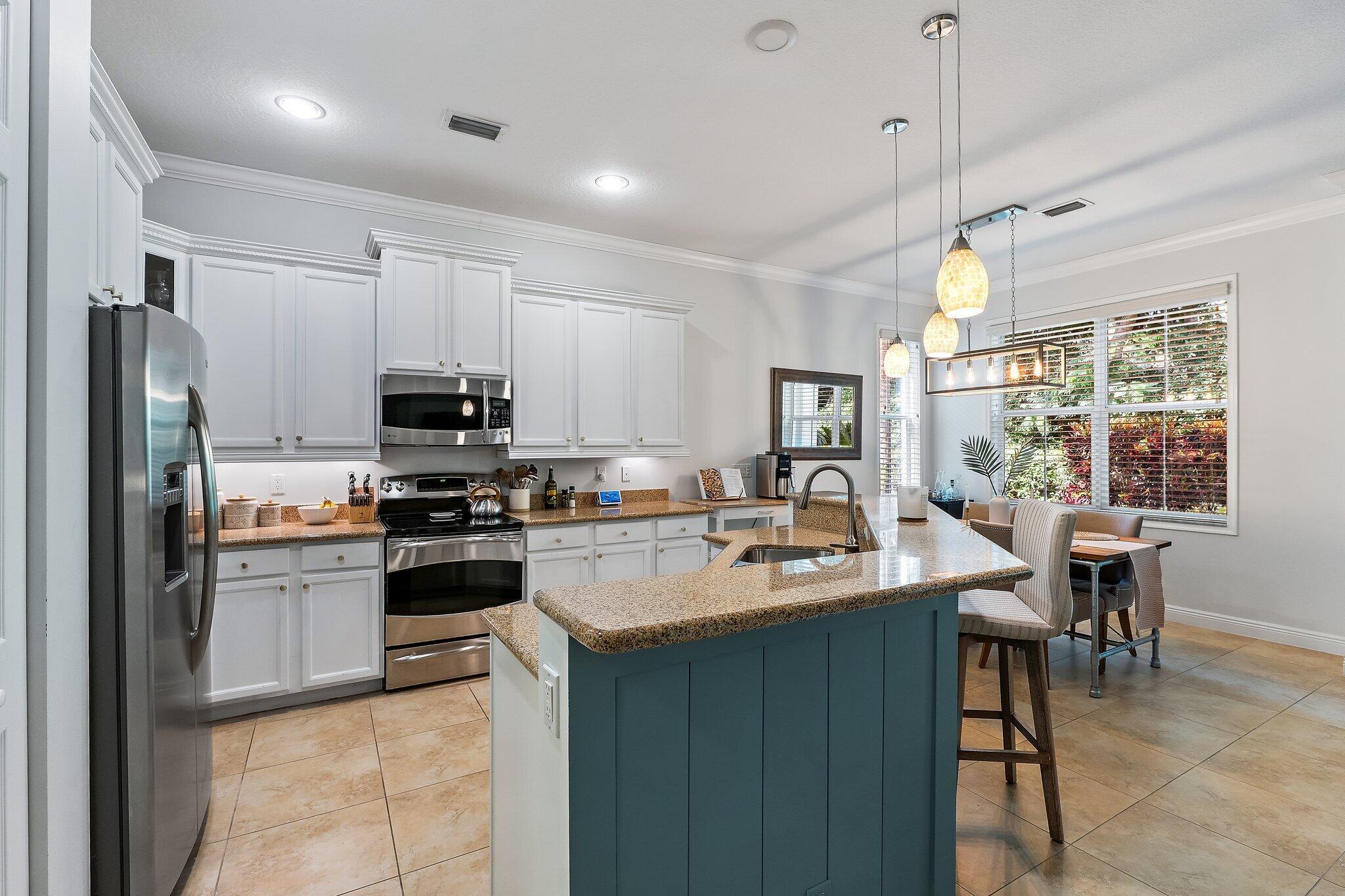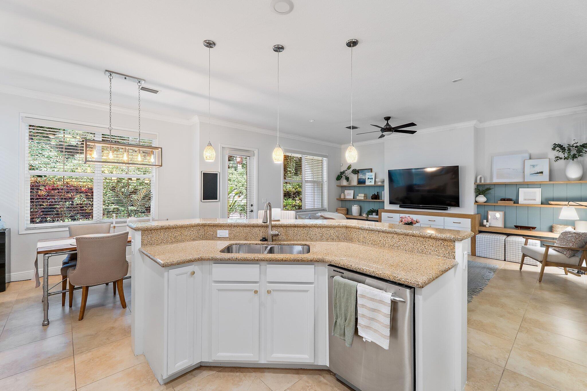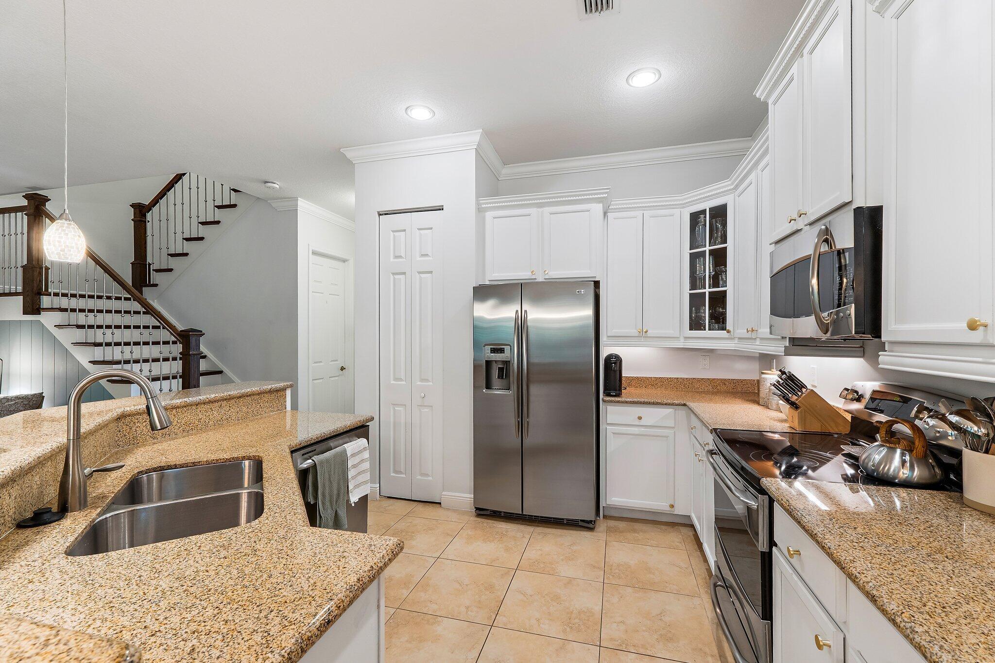 Welcome to 4033 Kingston Lane, a beautifully updated, 2 story corner townhome in the desirable gated community of Hampton Cay. This spacious residence offers 3 bedrooms, 2.5 bathrooms, a 2-car garage, and over 2100 Sf of living space, with all-impact windows and approximately $100k in upgrades. The open concept layout features tile flooring throughout the main living areas, luxury carpet upstairs, and a modern kitchen with stainless steel appliances, perfect for both everyday living and entertaining. A stunning custom built-in wall anchors the large family room, which opens to a private patio, ideal for relaxing, dining, or hosting guests. Upstairs, all bedrooms are conveniently located together, including a laundry room and the expansive primary suite with a large balcony, 2 walk-inclosets and a completely renovated bathroom featuring a soaking tub and separate glass-enclosed shower. Hampton Cay residents enjoy resort-style amenities, including a clubhouse overlooking the community lake, heated pool, hot tub, outdoor lounge, fitness center, and billiards. Cable and internet are included in the HOA. The community's prime location offers walkability to PGA Boulevard's restaurants and shops, top-rated schools, parks, tennis and pickleball courts nearby, plus quick access to I-95 and the beaches. This is the ideal home to enjoy the year-round coastal lifestyle of Palm Beach Gardens and the Palm Beaches.