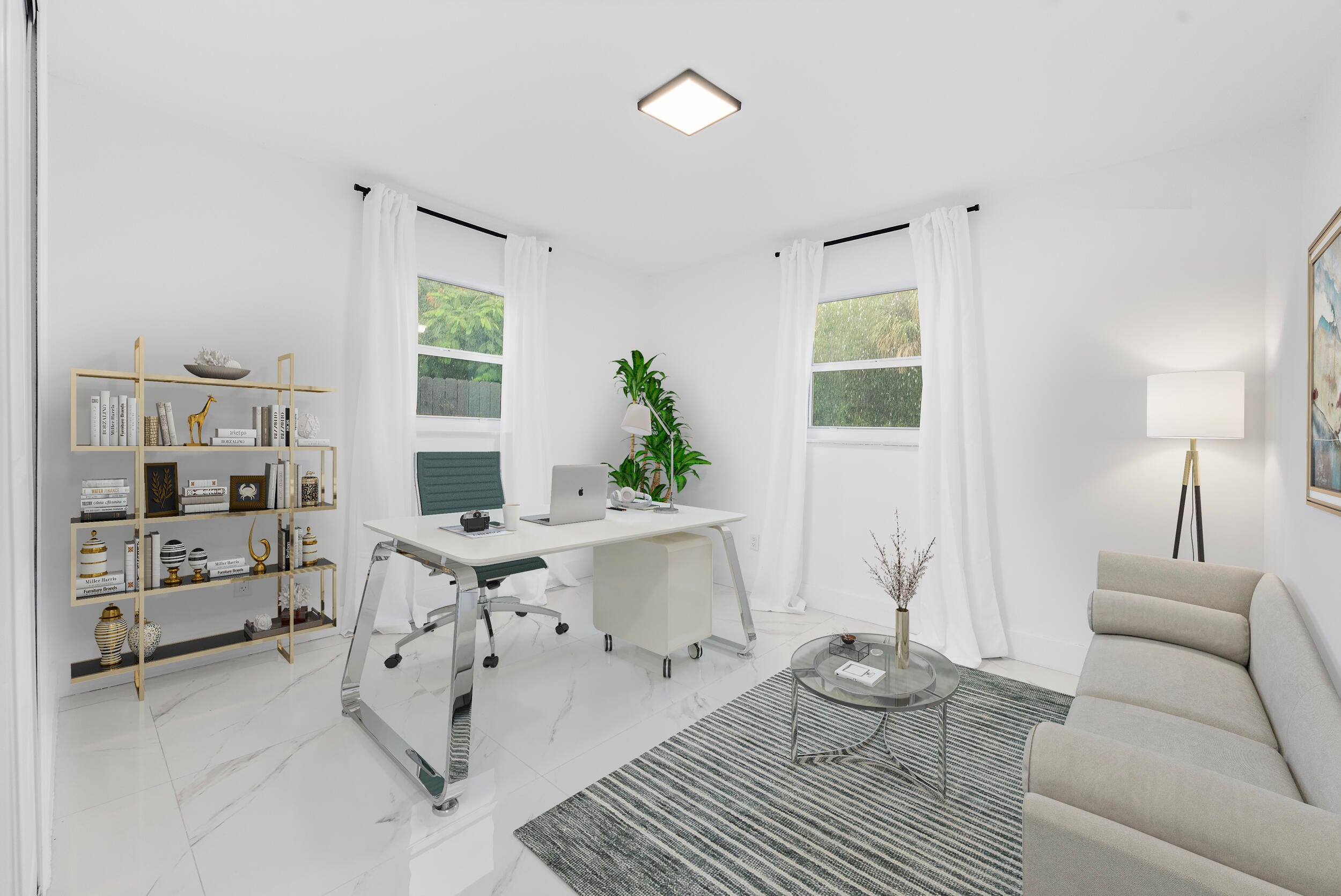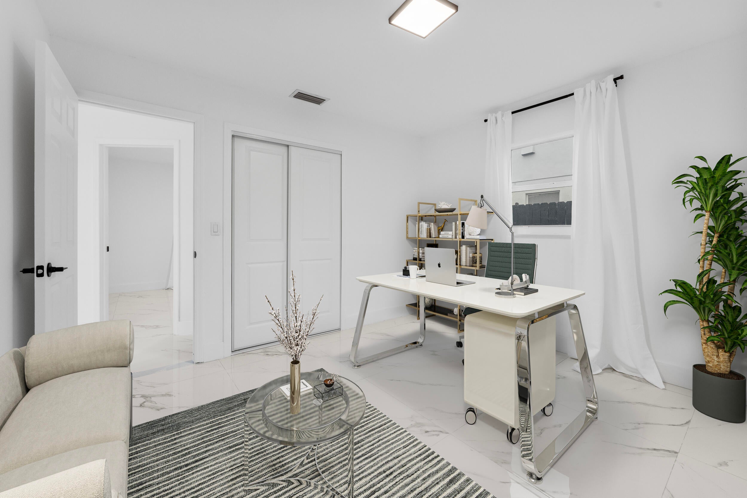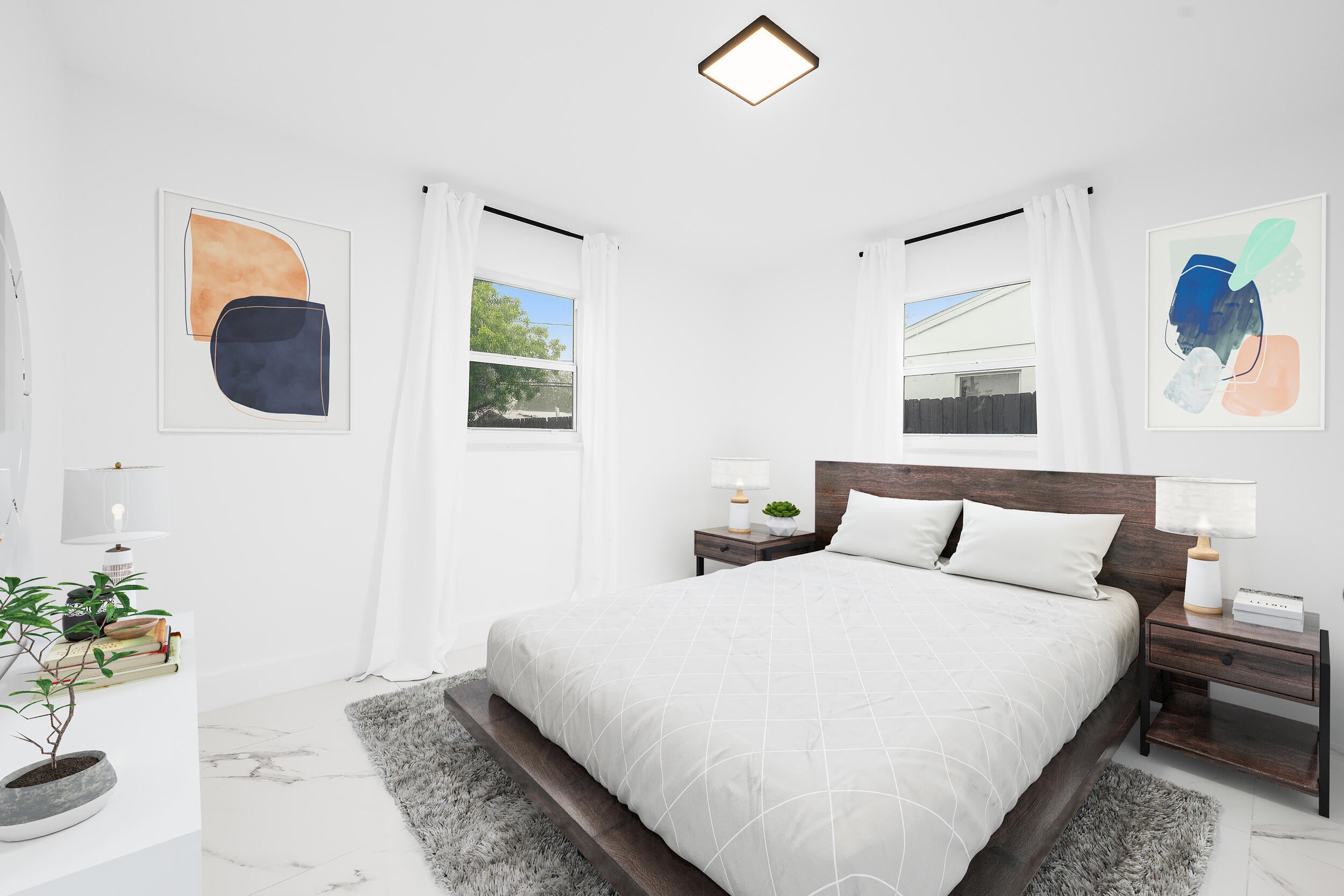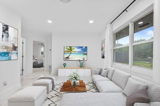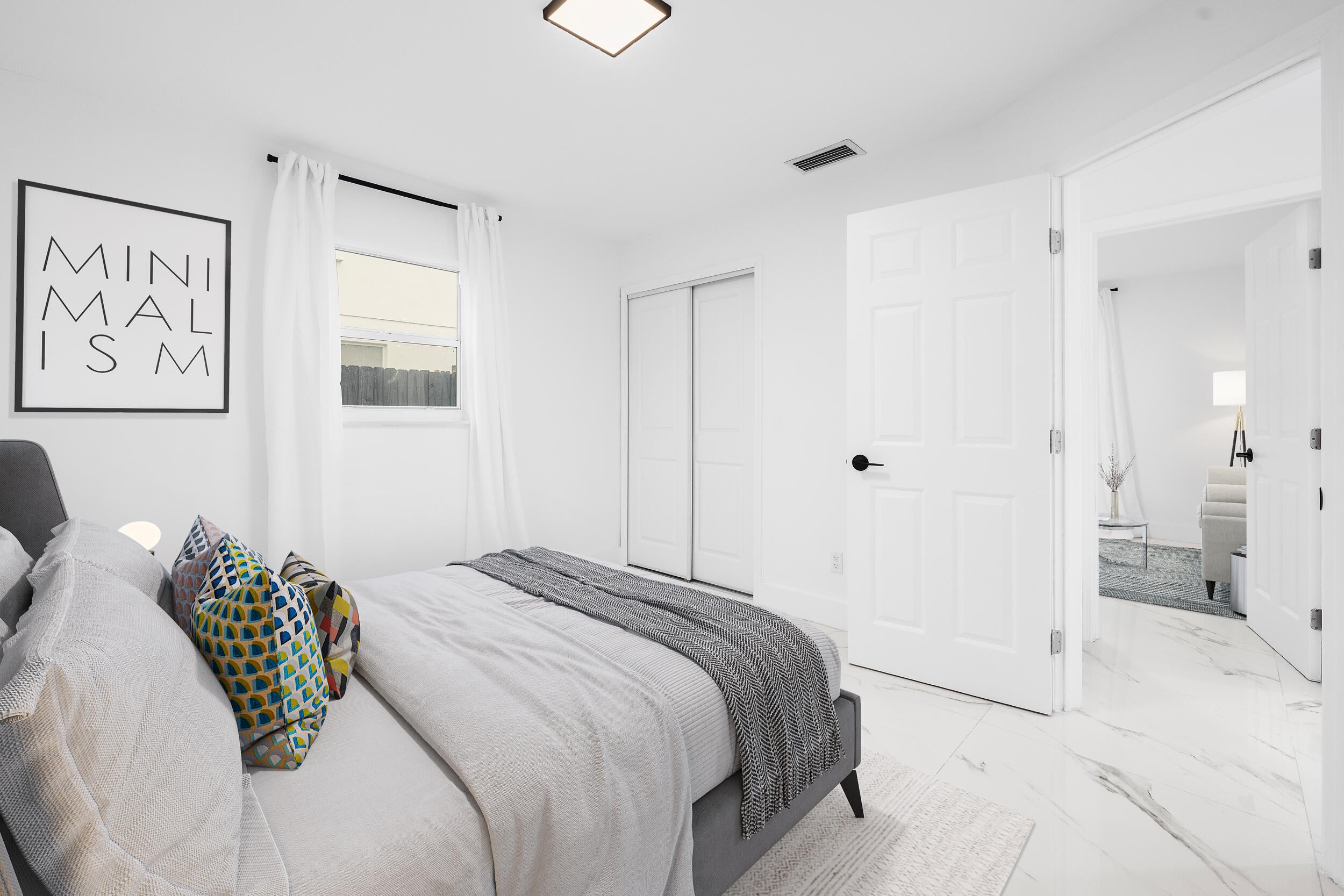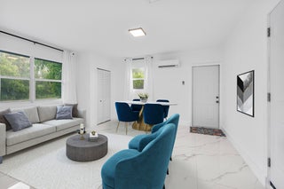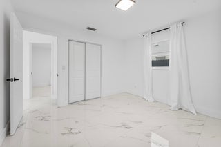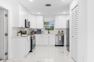 Modern, renovated 3-bedroom, 2-bathroom Jensen Beach home close to the surf with opportunity to rent half as an Accessory-Dwelling Unit (ADU) or Mother-In-Law Quarters! Updated kitchen with custom-wood-soft-close cabinets, ivory-quartz countertops and backsplash and new stainless appliances. Open-concept, 1,106-square-feet, with marble-porcelain-tile and impact-front door providing extra light. Sleek, black accessories include modern lighting, faucets and knobs. Large-main bedroom with private-entrance has en-suite bathroom - black-marble-tile shower with glass door, wooden vanity and lighted mirror. New stainless-stackable washer and dryer. That space has side-entrance door and private door to main house. Could be rented as studio to pay mortgage. Airbnb and mid-term .