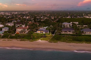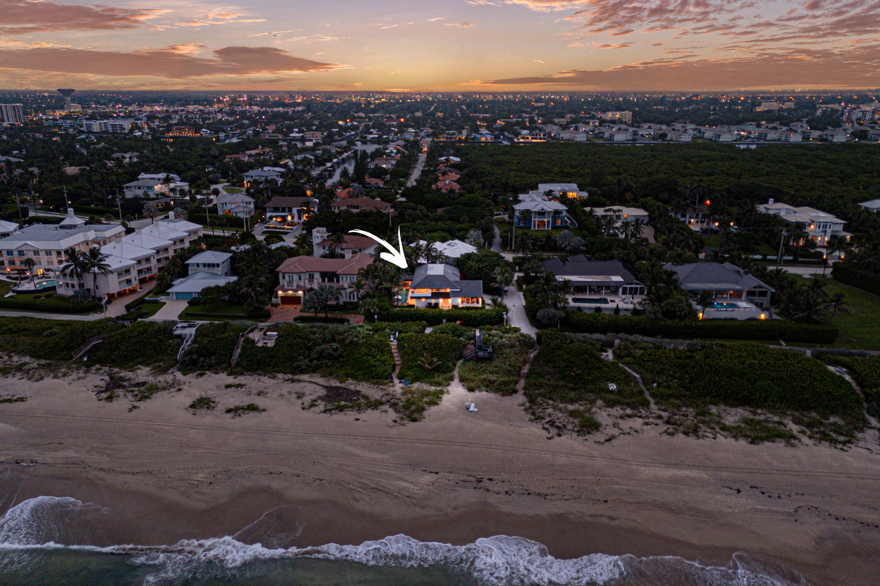An extraordinary oceanfront opportunity awaits in the coveted seaside enclave of Ocean Ridge--one of Palm Beach County's last charming coastal villages, just minutes from Worth Avenue and Atlantic Avenue. This fully updated estate pool home offers over 5,200 sq ft on an oversized corner lot with direct ocean frontage. Highlights include a contemporary kitchen with Sub-Zero appliances and a generous central island, a dramatic elevated living room with soaring ceilings and ocean views, and two guest suites on the main level. The expansive upstairs primary suite features unobstructed ocean vistas, sitting area, office/den, dual baths, and dual walk-in closets. A 45-foot lap pool is privately set within lush tropical gardens, creating a serene coastal retreat.