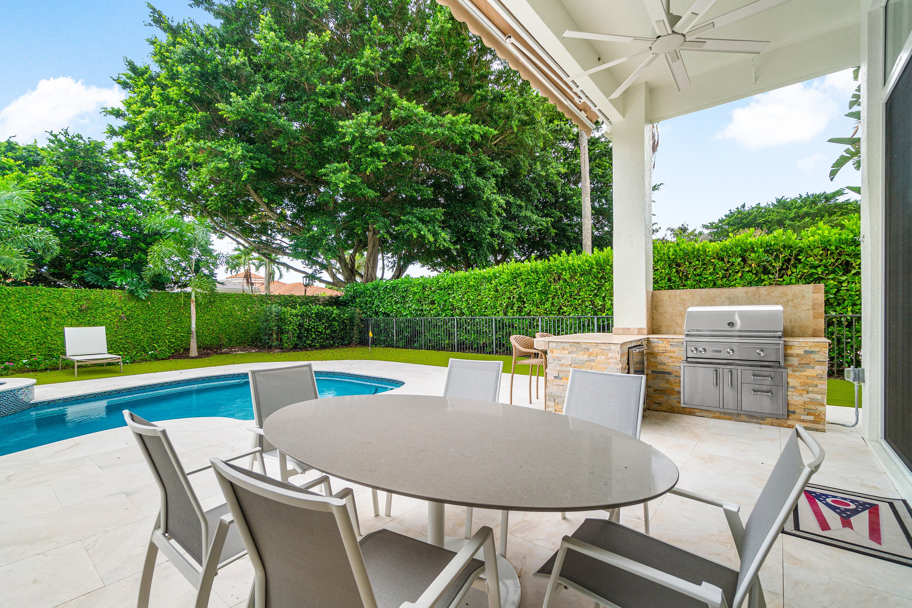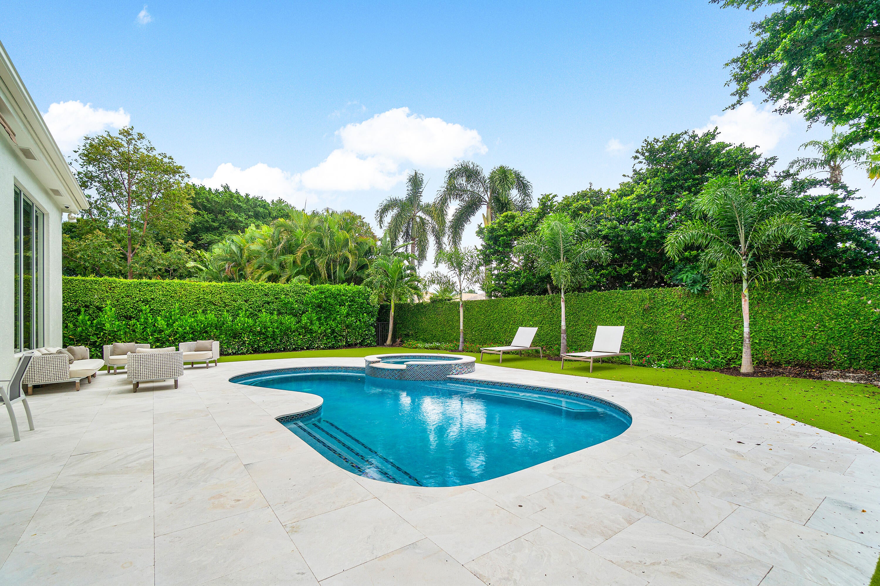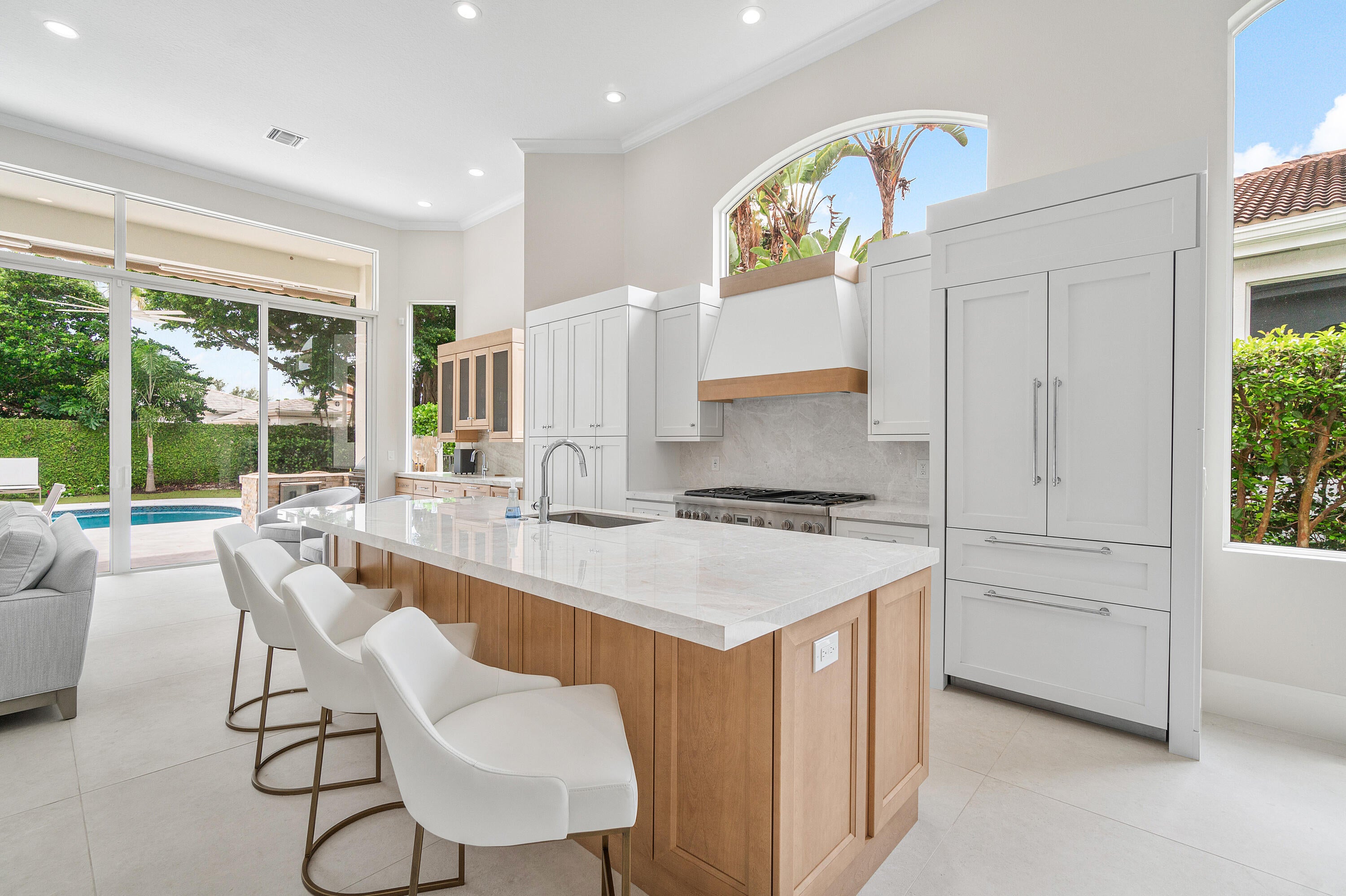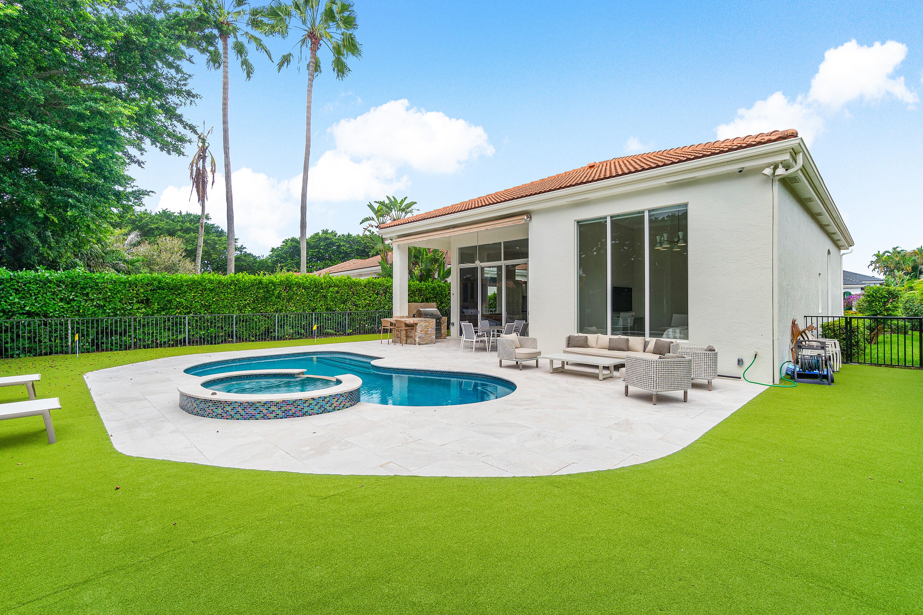 Available 1/1/26 with potential availability earlier. Full golf membership and cart included. This exquisitely renovated one-story features 3 bedrooms and 3 bathrooms. Nestled within BallenIsles Country Club, it is now offered for seasonal lease, fully furnished. Highlights include an airy open floor plan with high ceilings, a chef's kitchen, grill and pool bar, a heated spa-pool, and a 2-car garage. Pets permitted on a case-by-case basis. BallenIsles features 24-hour manned gates, a redesigned 115000 SF Clubhouse, 3 golf courses, and a 65000 SF Sports Complex, which includes a spa and salon, fitness center, world-class tennis facilities, resort-style swimming pool, and six dining areas noted for their variety of offerings, from casual to exceptional cuisine.