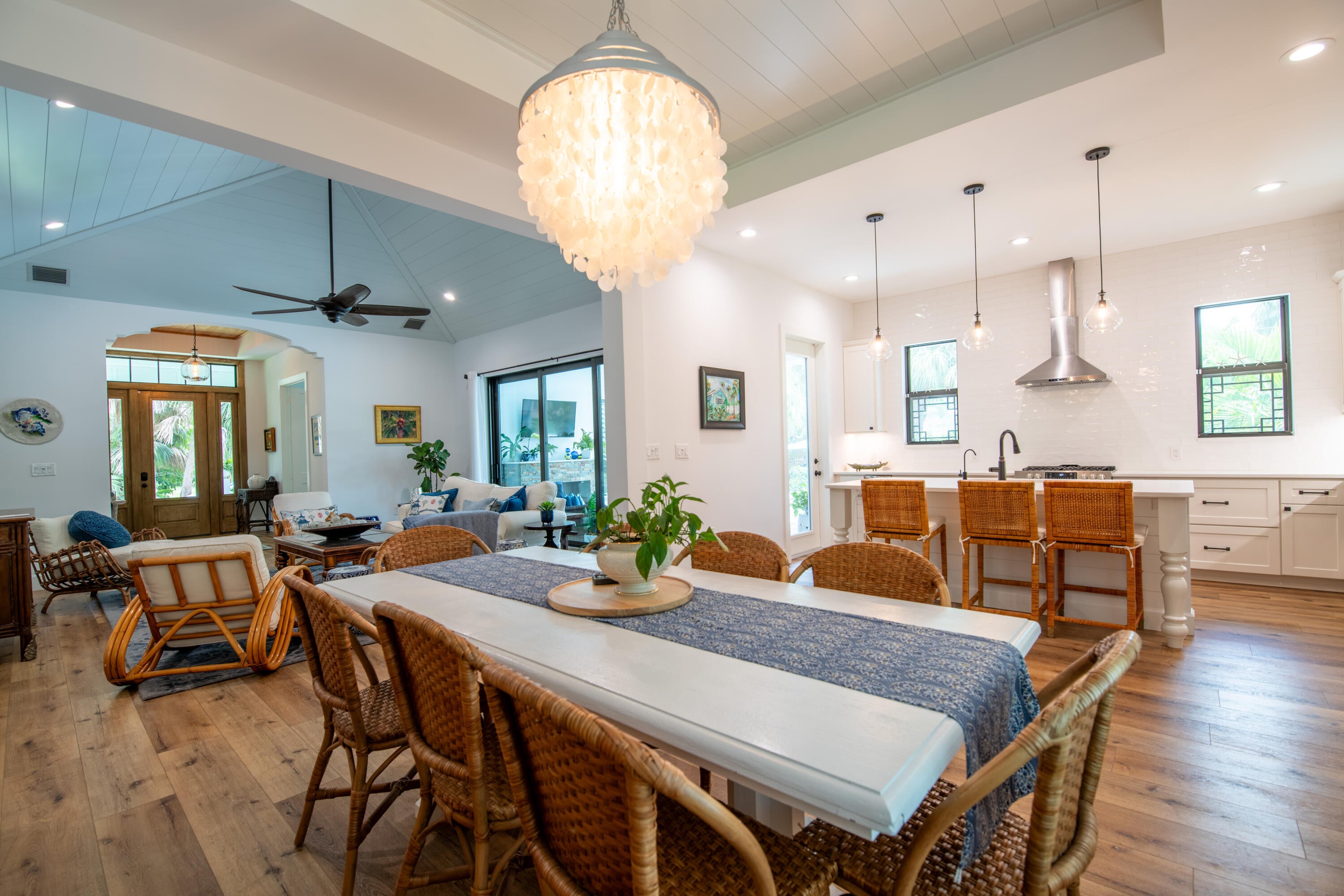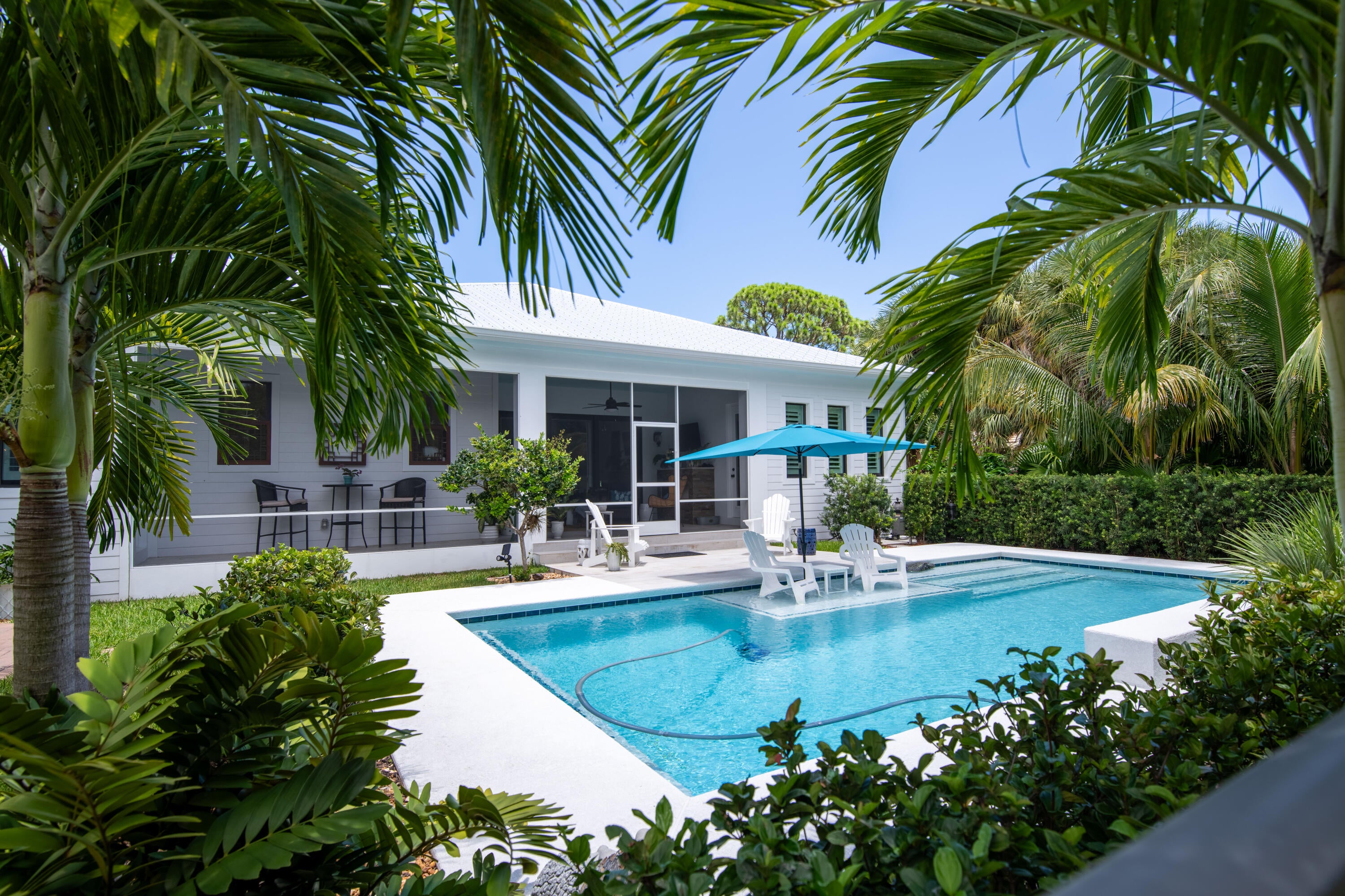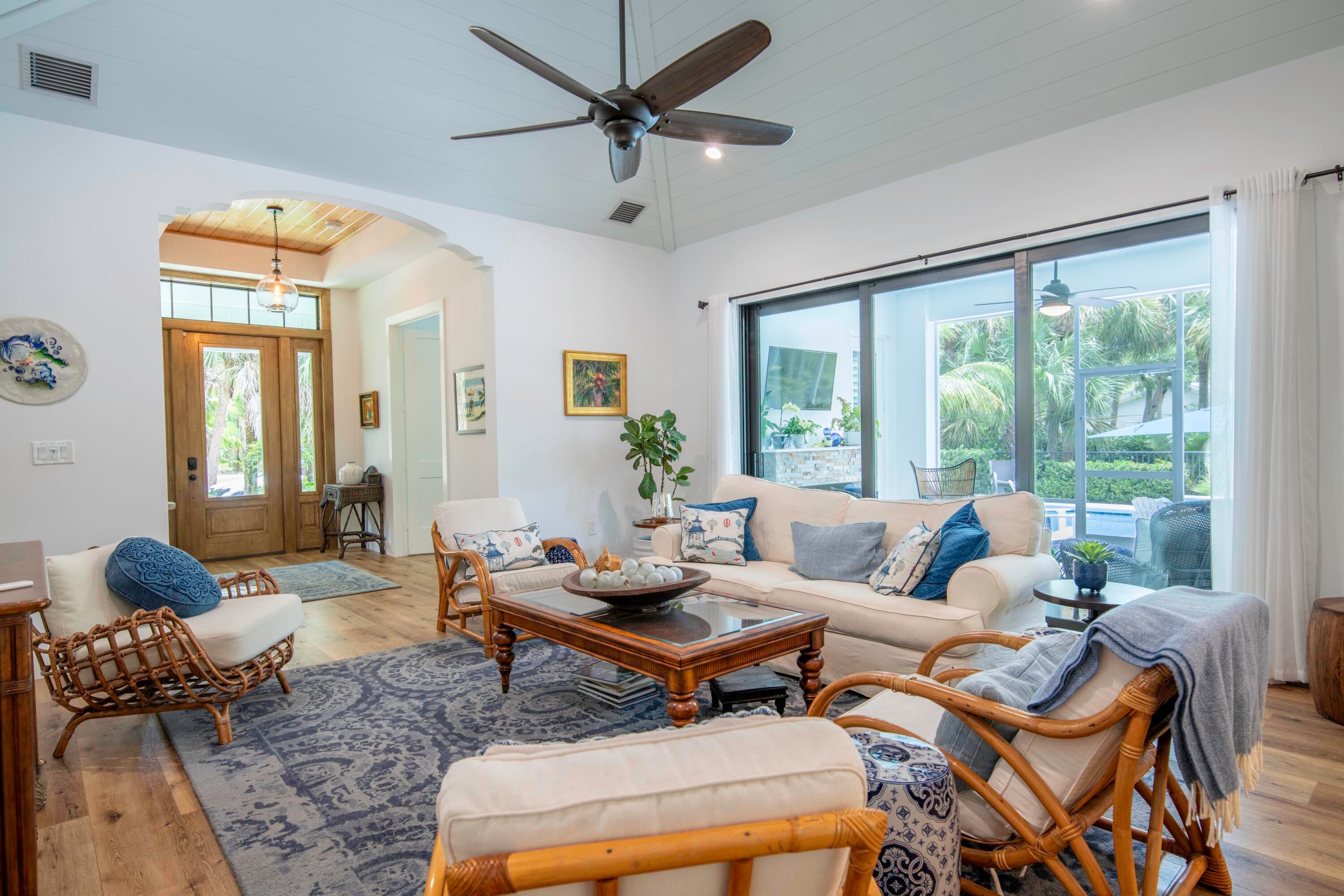 SEASONAL RENTAL JANUARY-MARCH. Two month minimum. Newly built southern craftsman style home on private, lushly landscaped lot with saltwater pool. Walk to Jupiter Island beach and historic Hobe Sound featuring coffee shops, live music, brewery, designer shops and outdoor dining at gourmet restaurants. Housekeeping, landscaping and pool services included. Fenced back yard for your pets. Enjoy the cozy fireplace on your screened porch overlooking the pool. Volume tongue and groove ceilings, designer furnishings and chefs kitchen.