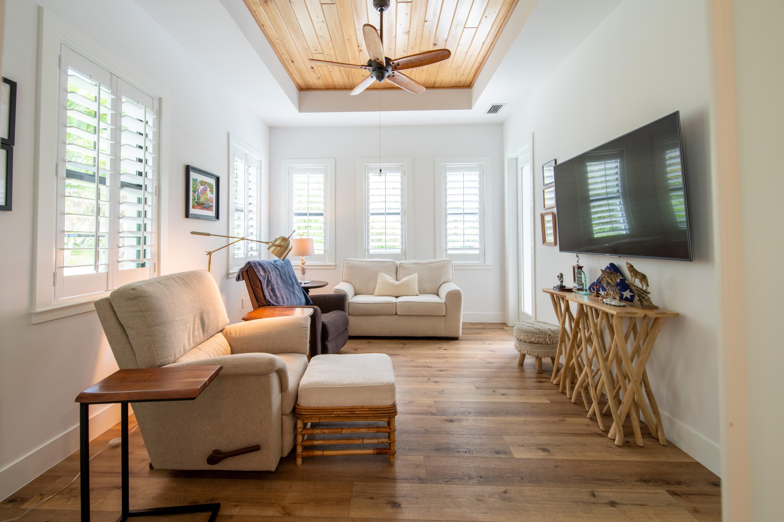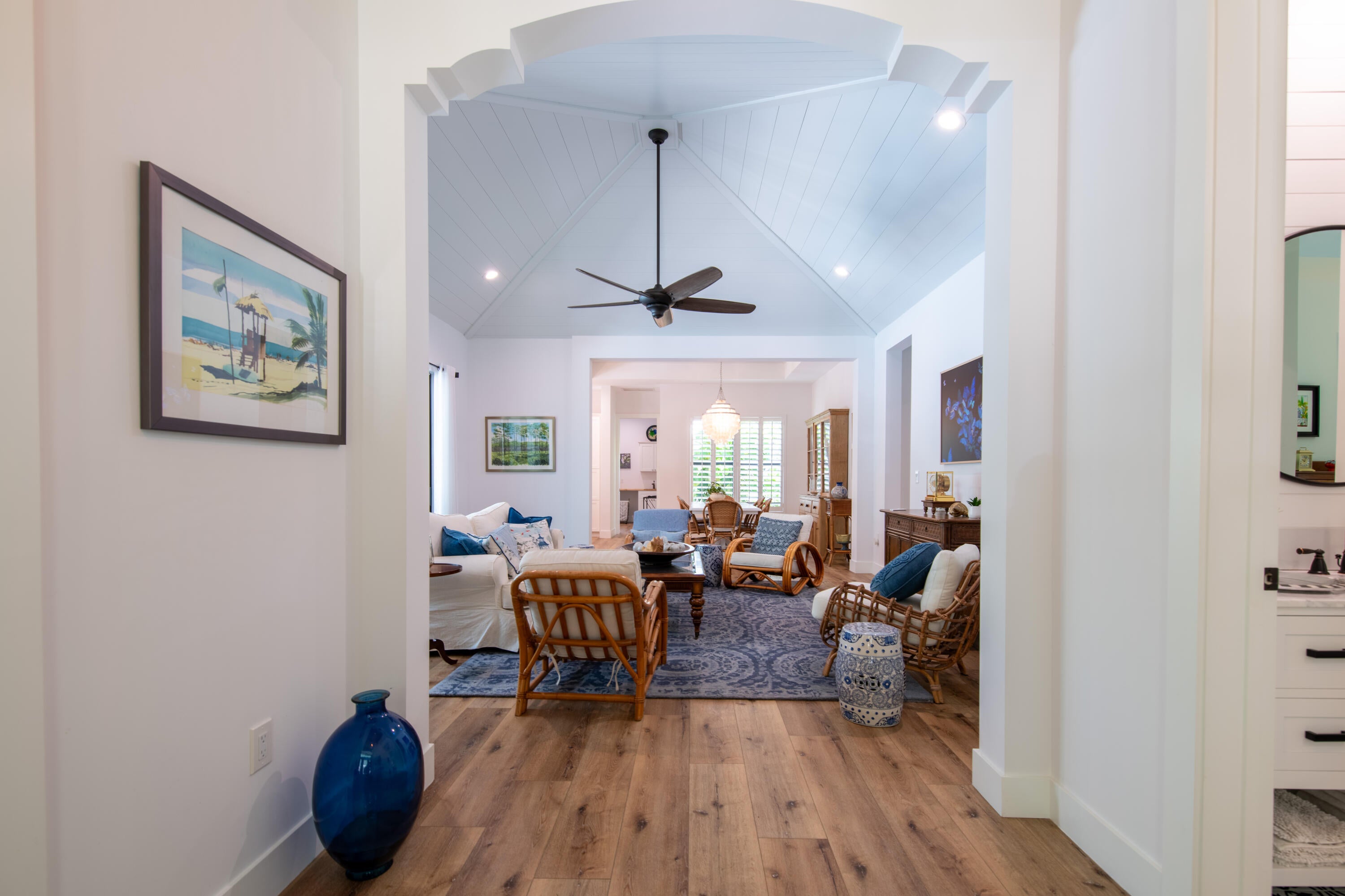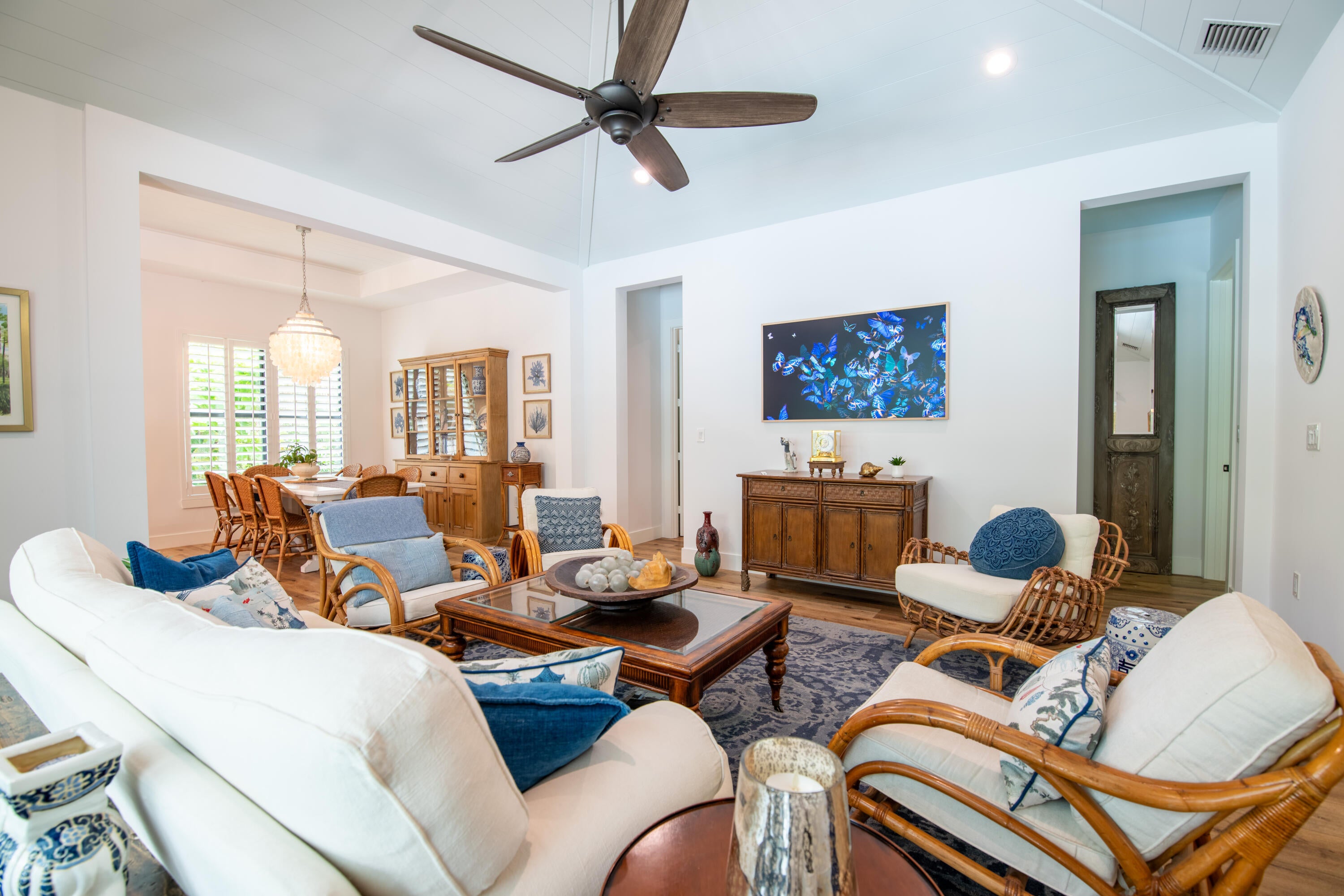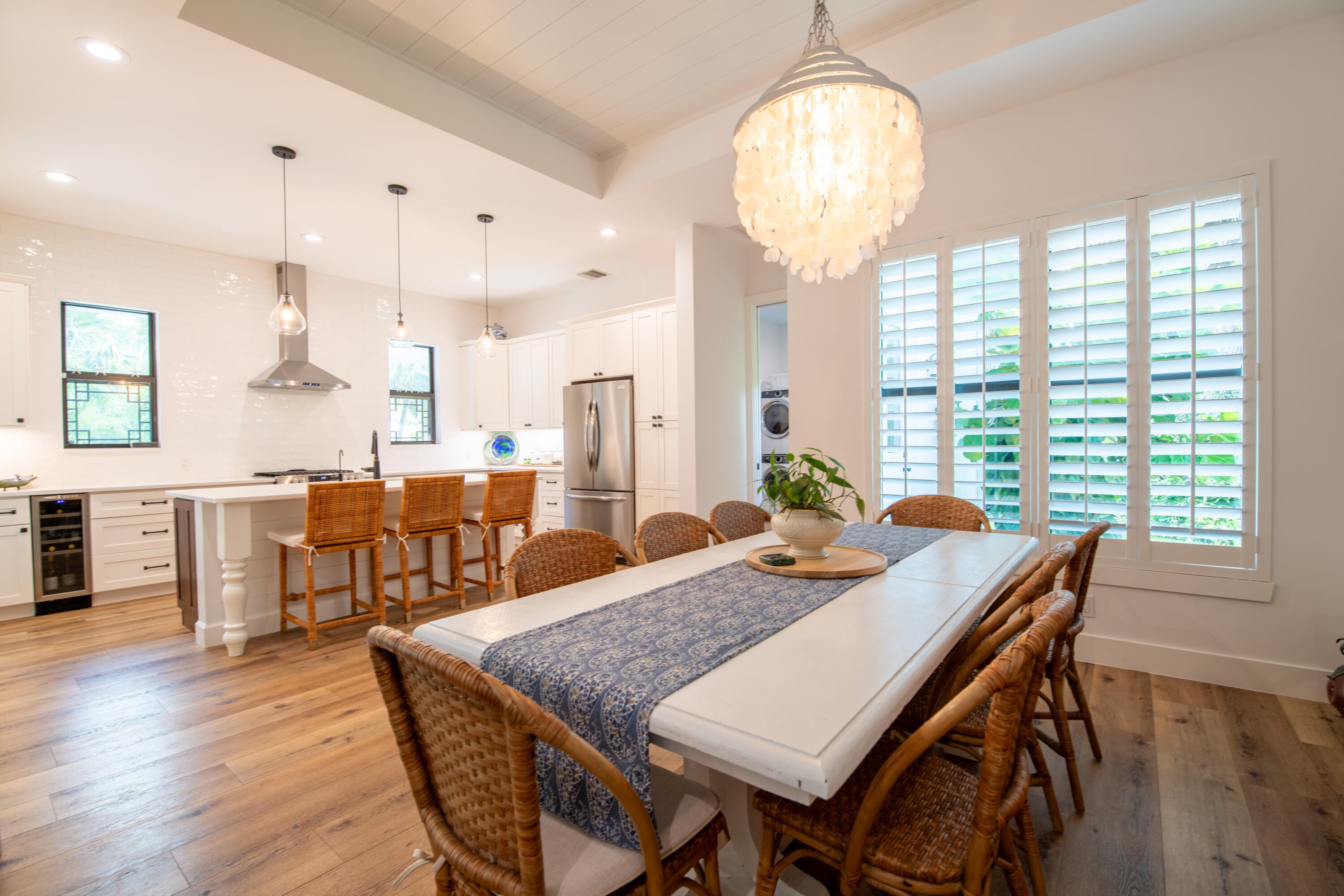 SEASONAL RENTAL JANUARY-MARCH. Two month minimum. Newly built southern craftsman style home on private, lushly landscaped lot with saltwater pool. Walk to Jupiter Island beach and historic Hobe Sound featuring coffee shops, live music, brewery, designer shops and outdoor dining at gourmet restaurants. Housekeeping, landscaping and pool services included. Fenced back yard for your pets. Enjoy the cozy fireplace on your screened porch overlooking the pool. Volume tongue and groove ceilings, designer furnishings and chefs kitchen.