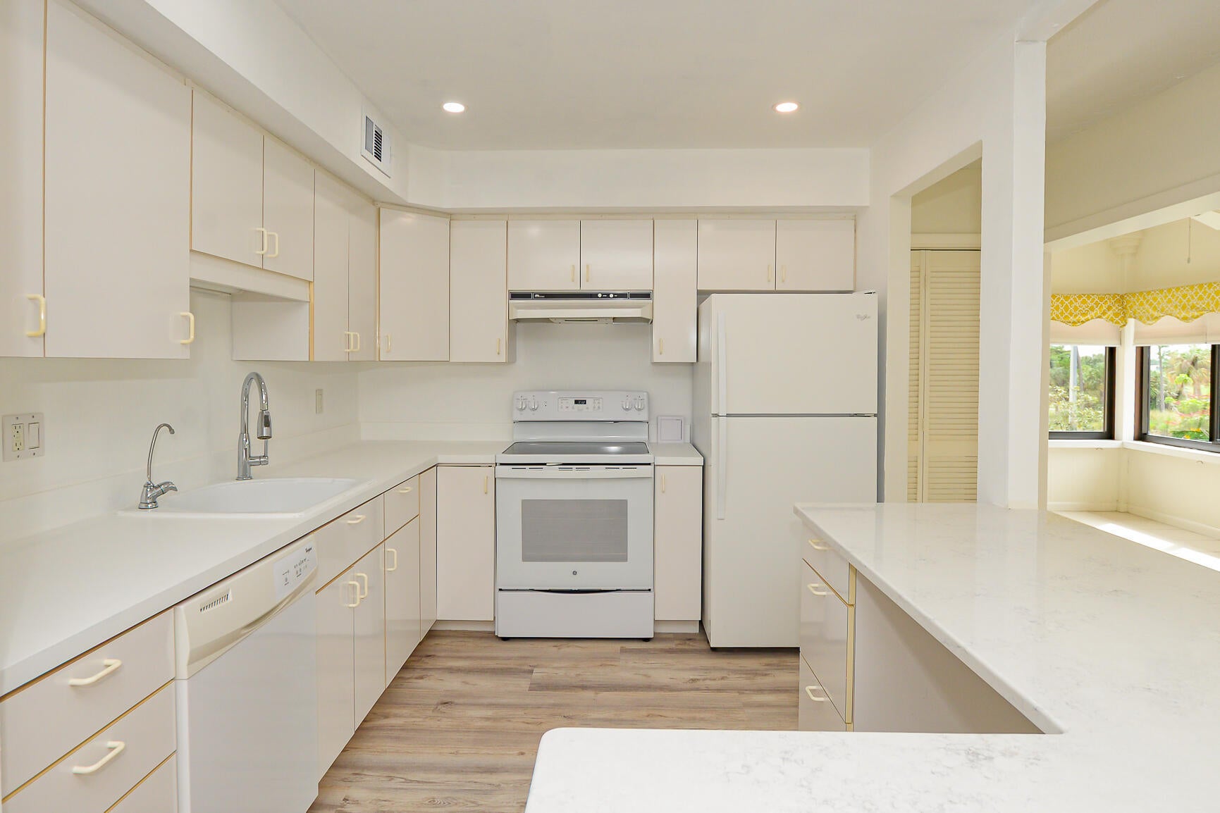 Location, location - Conquistador is a sought after adult condominum community nestled in the prestigious area of Stuart. This 3rd floor unit gets you golf views you can't get from the 1st or 2nd floor. It's added value! The elevator makes it easy. Partially renovated unit with new floor in main living area. Kitchen with LED lights, and quartz island countertop, was opened up to allow an open floor plan and view of the golf course. Virtual Staging Photography has been used. The community has a clubhouse, pool, tennis, pickleball, and shuffleboard. Enjoy fishing off the dock. Close to downtown Stuart, with the best restaurants and quaint shops. Beaches are less than a mile away. Cleveland Clinic Hospital and all the doctors and their specialies are minutes away