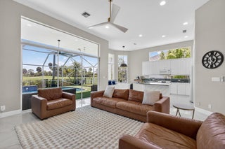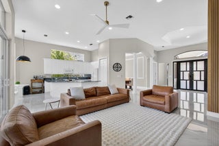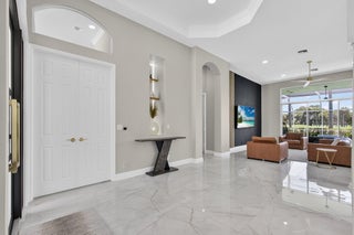 Set on a private cul-de-sac in the boutique Ironhorse community, this updated 4-bedroom, 4-bath ranch styled home offers panoramic views of the preserve, & the renowned Arthur Hills Championship golf course, with no mandatory membership. Be captivated by the 12-ft ceilings with abundant natural light, elegant new porcelain tile floors throughout, a brand-new roof (2024), new A/C, new pool heater, new water heater, new pool pump, new impact double front door, extended driveway & fresh interior & exterior paint. The open-concept kitchen with quartz countertops, a built-in breakfast nook, & a shiplap-accented island, flowing into spacious living areas framed by custom wood panel media wall & sweeping golf views, while the primary suite boasts custom his & hers closets & a spa-style bath. Your own private oasis, enjoy a screened-in pool, turf lounge area, & spacious fenced yard, all overlooking breathtaking golf & preserve views.