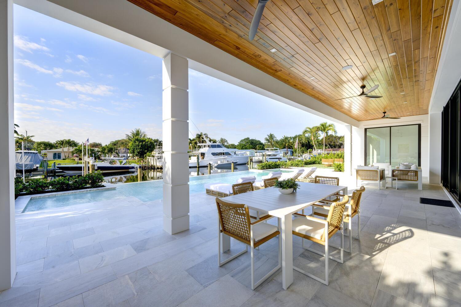 This extraordinary new-construction waterfront estate offers a refined lifestyle of sophistication, elegance, and seamless indoor-outdoor living. Designed with meticulous craftsmanship and cutting-edge architecture, the residence spans 6,504 square feet of living space and 8,465 square feet in total. Every detail has been carefully curated to provide an atmosphere of effortless luxury in one of Palm Beach Gardens' most sought-after waterfront communities. With direct ocean access and no fixed bridges, this property is a boater's paradise, offering 95 feet of prime water frontage on a deep, extra-wide canal.The estate combines breathtaking water views, a contemporary coastal aesthetic, and state-of-the-art technology, making it the perfect retreat for those seeking both luxury and convenience. A dramatic entryway welcomes guests into a grand, open-concept living space, where floor-to-ceiling sliding glass doors allow natural light to flood the interior. The great room and dining area create a seamless flow, designed for both intimate gatherings and large-scale entertaining. High ceilings and custom-built features enhance the sense of grandeur, while stunning waterfront views provide an elegant backdrop to everyday living. The gourmet chef's kitchen is a masterpiece of design and functionality, equipped with top-of-the-line appliances, including a Wolf gas range, 30" convection Wolf microwave, Subzero refrigeration, two Cove dishwashers, and Cristallo waterfall-edge countertops. Custom oak cabinetry and a concealed butler's pantry with additional refrigeration, a Miele coffee station, and a Viking microwave offer both beauty and practicality. This kitchen is designed for those who appreciate fine dining and entertaining in effortless style. The primary suite is a private sanctuary, offering expansive his-and-her walk-in closets, a spa-inspired bathroom with dual showers, a soaking tub, and Taj Mahal countertops. A morning bar with a Subzero beverage cooler and Miele coffee station adds a layer of convenience, while private balcony access provides serene waterfront views. Thoughtfully designed with comfort in mind, this retreat embodies tranquility and sophistication. Designed for outdoor entertaining, the backyard offers a resort-style oasis with a 50-foot heated saltwater infinity pool and spa, marble paver decking. Covered verandas on both levels provide shaded areas for relaxation, complemented by ceiling fans that bring a cool tropical breeze. A fully equipped summer kitchen with a built-in gas grill, sink, and refrigerator ensures effortless outdoor dining. For the avid boater, this property offers an exceptional waterfront experience. A newly constructed seawall with batter piles and heavy-duty Vanguard sheet piles ensures durability, while the 70-foot composite dock and 30,000-pound High-Tide boat lift with quad motors provide the ultimate convenience. With no fixed bridges and direct access to the Intracoastal Waterway just 350 yards away, this home offers one of the finest boating locations in South Florida. Luxury extends beyond design with smart-home technology and high-end features throughout. The estate includes an air-conditioned bonus room perfect for a tackle room or gym, two oversized two-car garages with 13-foot ceilings to accommodate car lifts, and two laundry rooms equipped with double LG washer and dryer pairs, a freestanding steamer, and custom cabinetry. Large-format Italian porcelain tile flooring downstairs and hand-scraped engineered wood upstairs add warmth and style, impact-resistant hurricane windows and doors, and a dual-zone climate-controlled 489-bottle wine cellar enhance both security and comfort. Generator-ready infrastructure with installed transfer switches. Palm Beach Gardens offers a lifestyle of prestige, combining luxury waterfront living with world-class golf courses, fine dining, and exclusive shopping. Pristine beaches, elite yacht clubs, and convenient access to Palm Beach International Airport make this location one of the most desirable in South Florida. Whether as a primary residence or seasonal retreat, this home presents an unparalleled opportunity to experience coastal living at its finest. This brand-new waterfront estate is designed for those who demand the best in craftsmanship, location, and lifestyle. With a one-year builder warranty included, this is an investment in both luxury and lasting value.