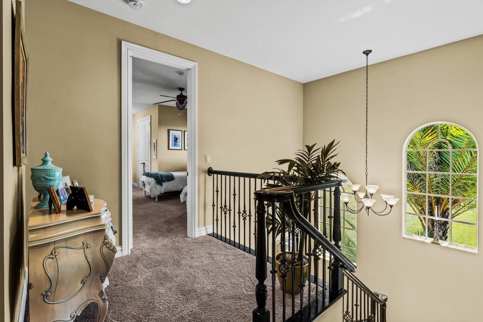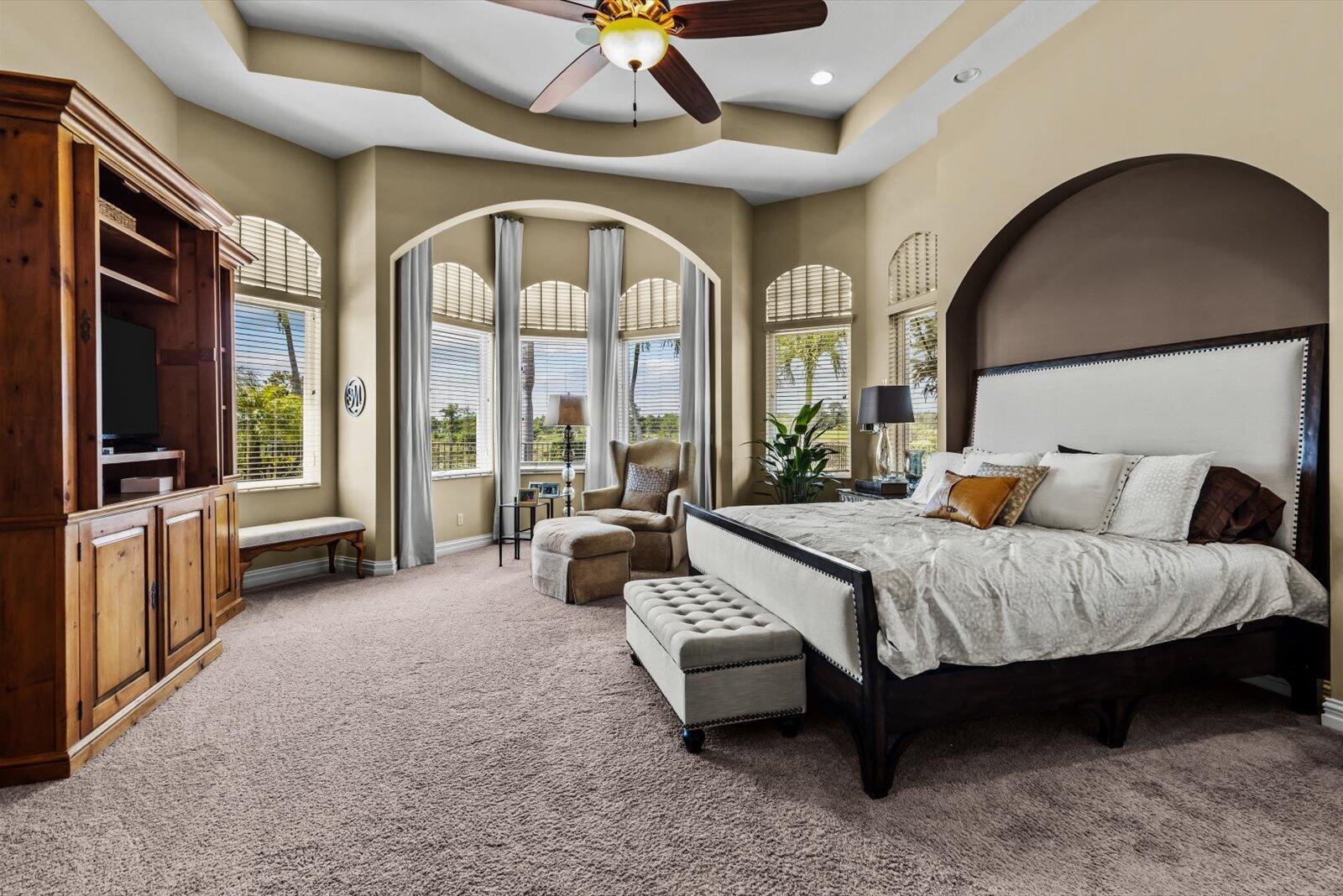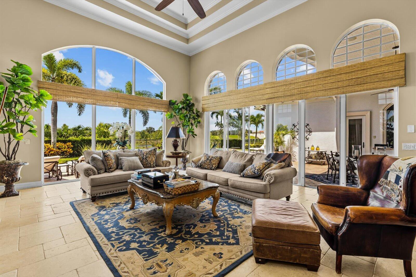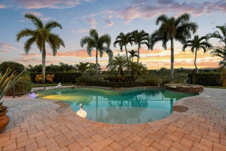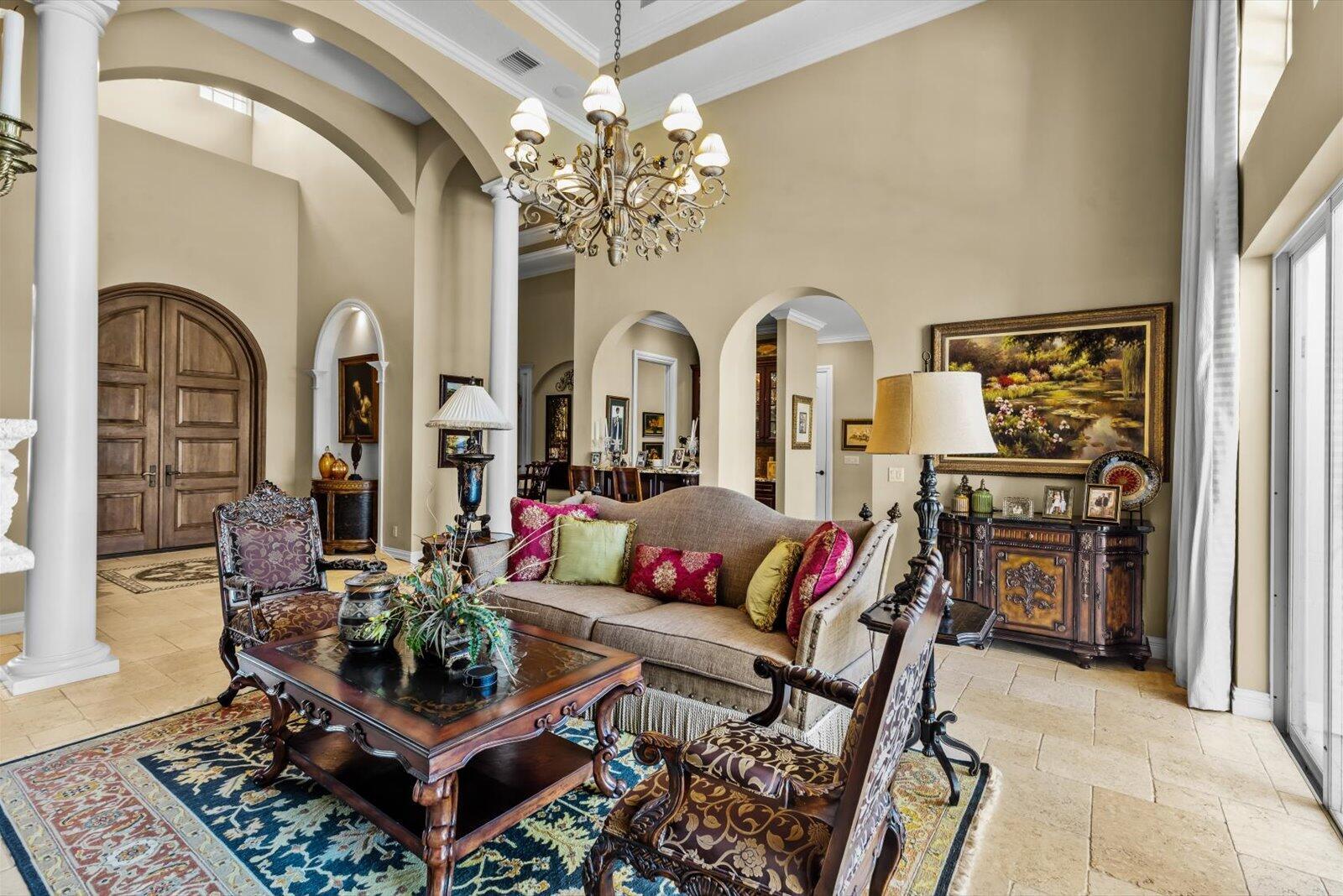 Exquisite Spanish Revival two-story home with long views of flowing freshwater creeks, preserve, & future golf course awaits you. Custom-designed & lovingly built, this home features hand-laid marble floors, 16 ft to 22 ft high ceilings, wide wood molding, a fireplace, a wet bar, & tall transom windows. The kitchen features a chef's island, breakfast bar, & top-quality appliances. The family room has a triple tray ceiling and features sliding storm-proof glass doors that open onto the patio and pool with a spa. The primary bedroom features a tray ceiling, six tall windows with custom arches, and detailed closets. The Primary bath features a spa tub, double vanities, and a roll-in shower that overlooks a walled privacy garden. The 2nd-floor guest suites feature private baths.