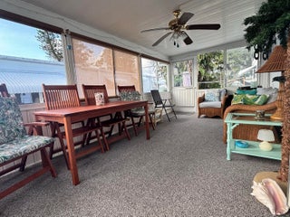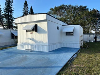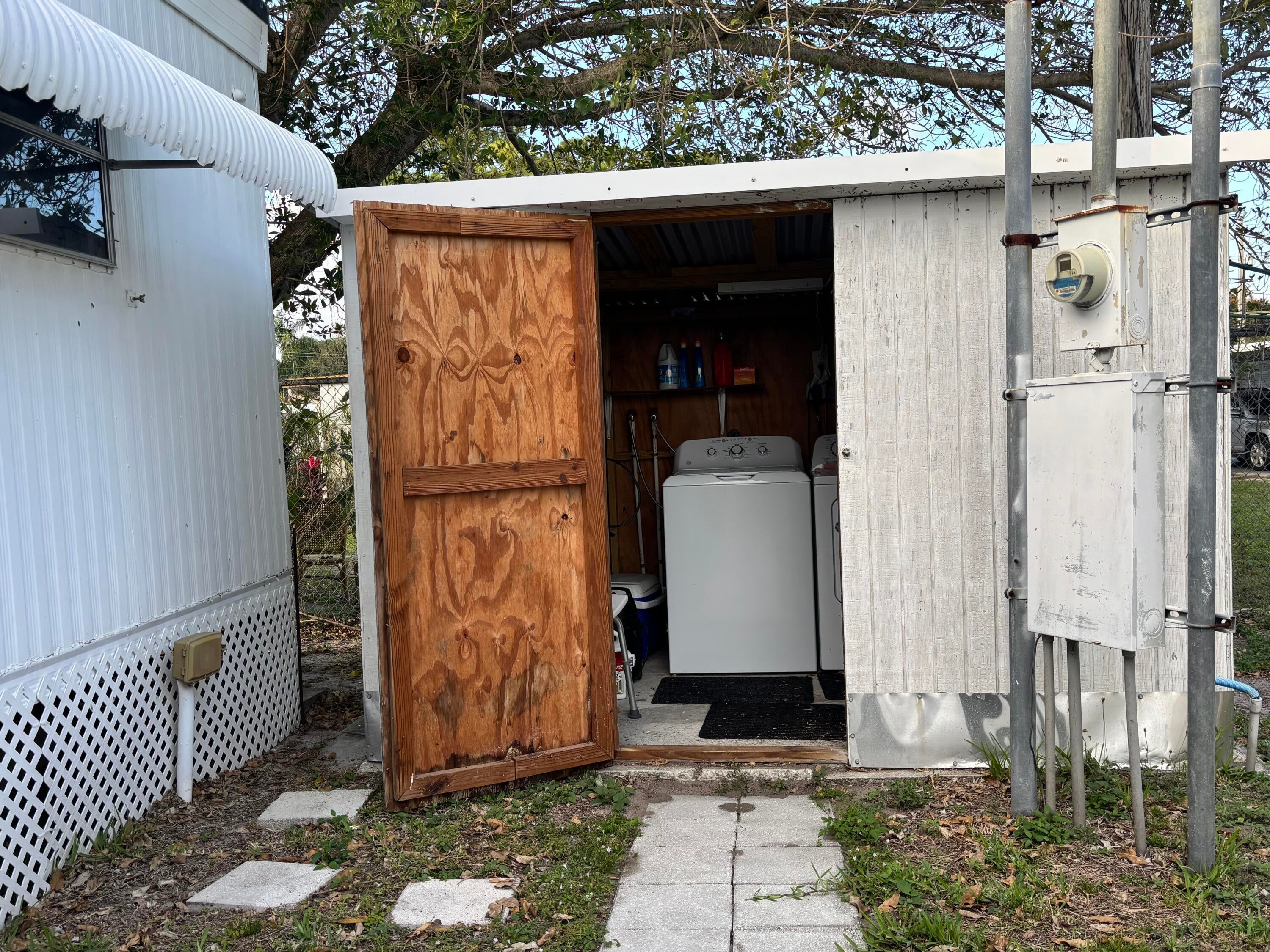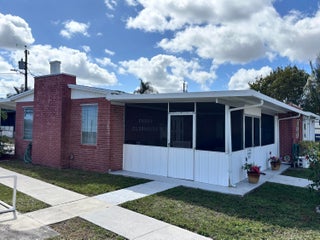 LOW HOA + NO LAND LEASE + LOW RE TAXES = AFFORDABLE LIVING! Enjoy Florida life at its best in this charming single-wide offering a simple yet inviting facade complemented by furnishings that enhance its relaxed atmosphere. A seasonal or year-round residence, the home provides comfortable living with thoughtful design. A spacious living area flows seamlessly into the FL room, perfect for unwinding or entertaining. The kitchen island provides ample storage plus seating for casual dining. The split-BR floor plan ensures privacy for both owners & guests, w/each BA featuring a step-in shower. A side door & entry door allow for a refreshing cross breeze. The neat patio is perfect for grilling & is adjacent to a storage shed housing a full-size washer/dryer adds to the home's functionality.