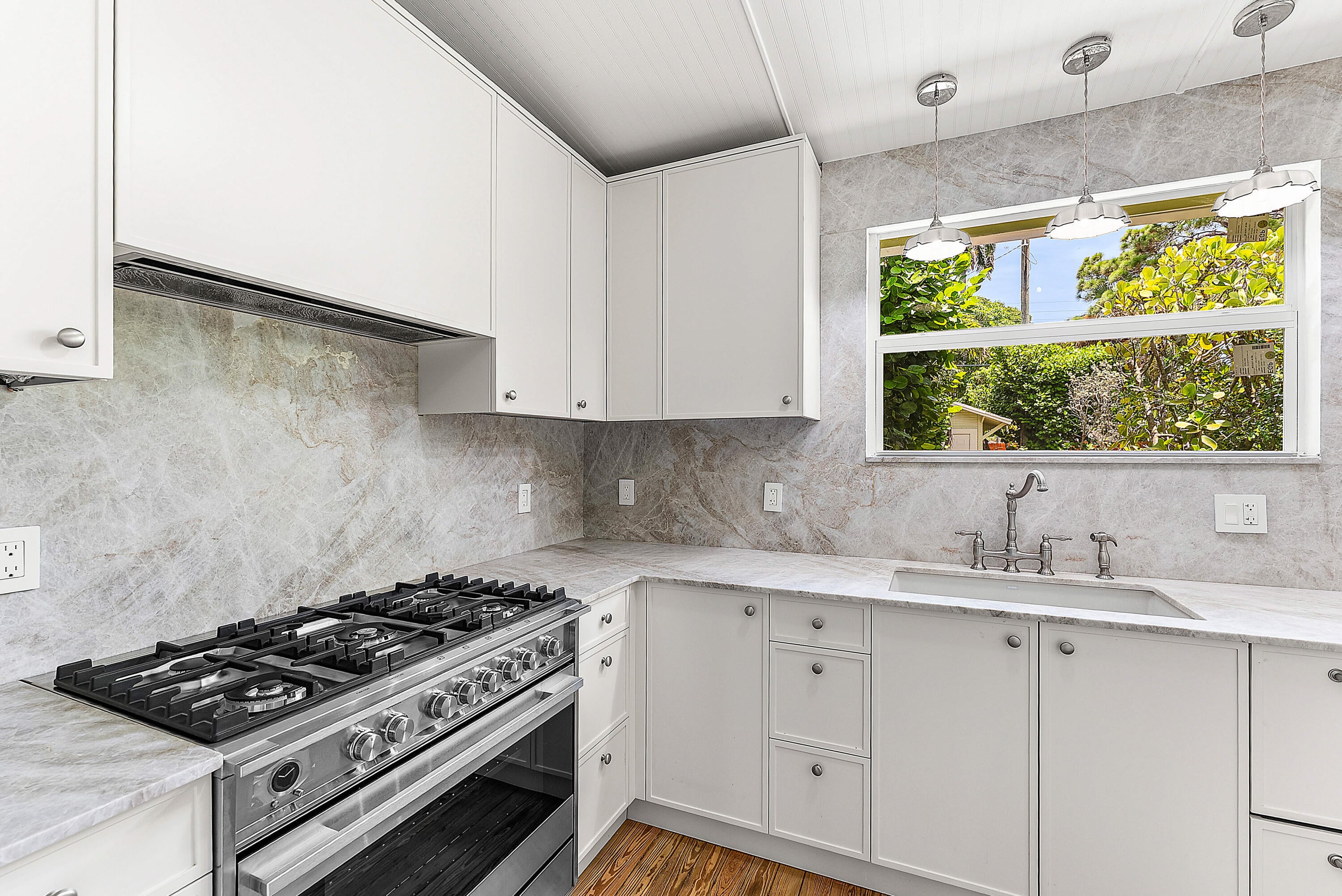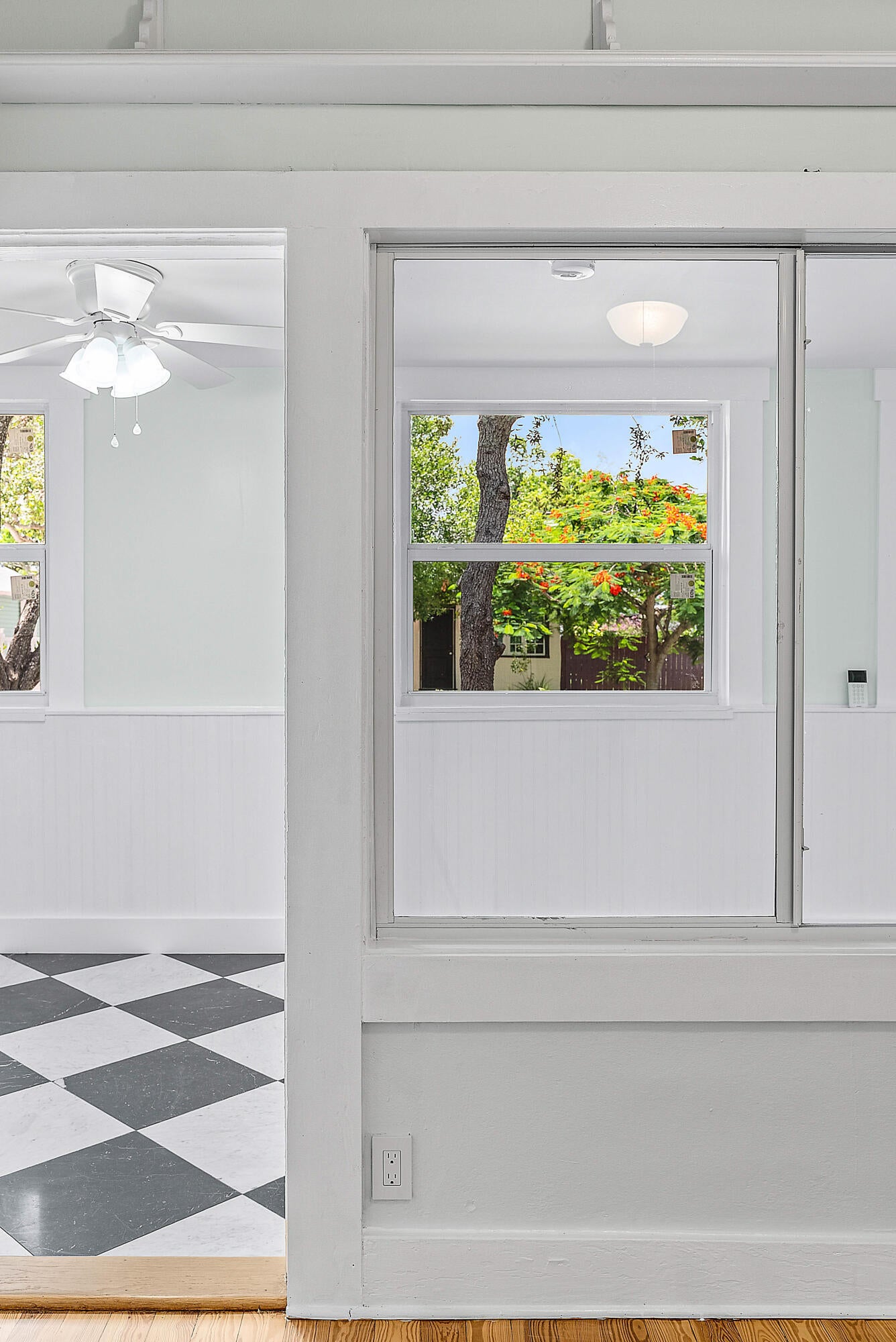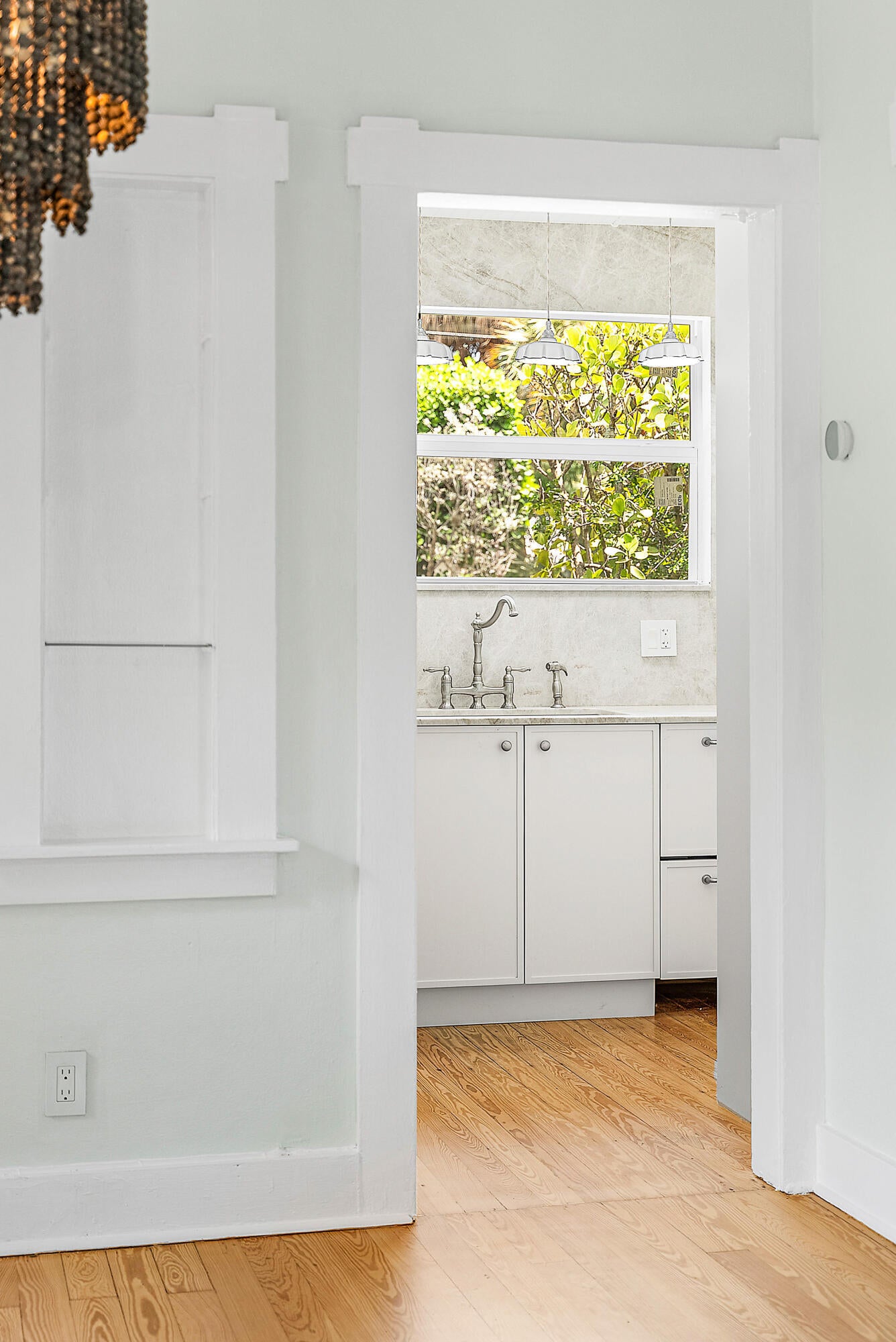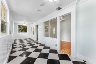 In the heart of downtown Lake Worth's historic district, this restored 1920s home blends timeless character with modern sophistication. Sunlit interiors feature original pine floors in Loba Whitener stain, a cast-stone fireplace, and a striking Noir Moon & Bianco Carrara marble entry.The chef's kitchen offers custom cabinetry, Fisher & Paykel appliances, a Blanco Silgranit sink, and Lyngard lighting. Baths are finished with Calacatta Green marble, handcrafted Zellige tile, and Signature Hardware fixtures. Additional highlights include a terrazzo laundry, detached garage with ADU potential, and a deep backyard with space for a pool.Brand-new impact windows and a new roof in 2018 complete this rare offering, just minutes from West Palm Beach and PBI Airport.