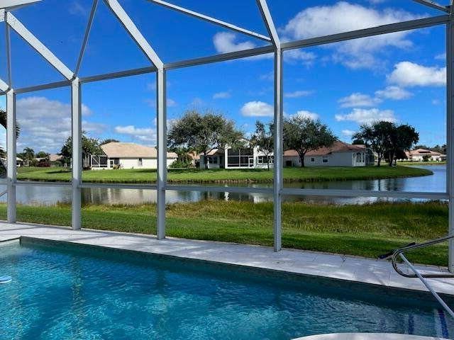 This welcoming retreat features an open concept layout highlighted by magnificent water views from the Kitchen, Family Room, Living Room and Master Bedroom. Enjoy entertaining and relaxing in the screened, saltwater and heated pool with limestone pavers.The White Renovated Kitchen, with Quartz counters, backsplash and Island plus Stainless Steel appliances are beautiful and functional.Separate den is a possible 4th bedroom but is currently outfitted with dual desks and cabinets.. Crown moldings, outfitted closets, all tile floors, Hurricane Shutters, 8500 W generator and transfer box are included.Avalon Clubhouse has been redecorated and has an oversized Pool, Spa, Fitness Center and PIckleball &Tennis Courts.Close to restaurants and shopping.