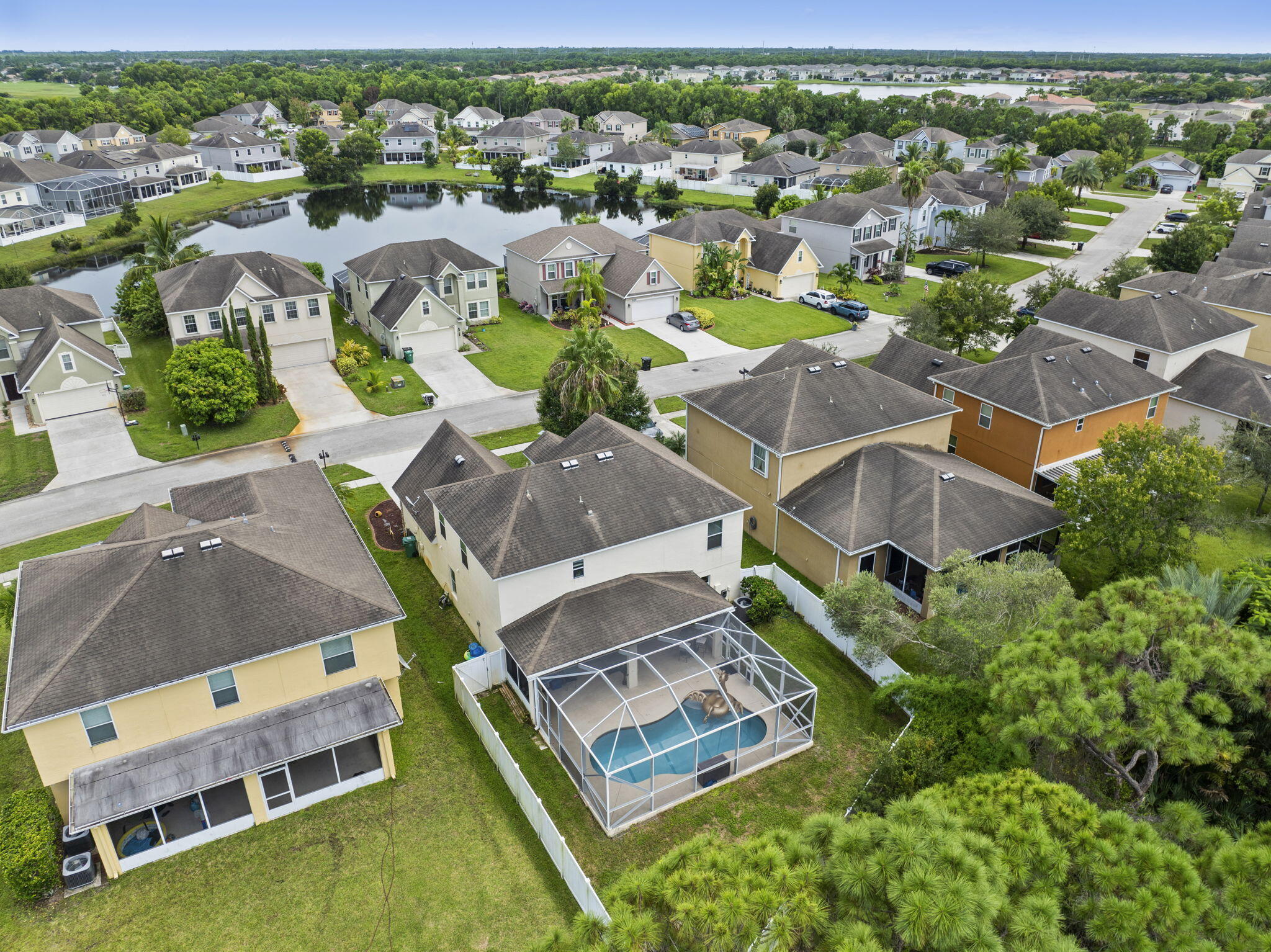 Beautifully updated 2-story 3BR + den, 2.5BA home on a quiet cul-de-sac in a family-friendly neighborhood. Spacious layout with large living room, separate dining & family rooms, and a den/office. Kitchen boasts granite counters & stainless steel appliances. Master suite offers spa tub, walk-in closet & custom closet with shelving. Indoor laundry. Enjoy a screened saltwater pool with new pump & water heater (2024) and a fenced yard for privacy. Recent upgrades: new A/C, water heater, plantation shutters & fresh paint (2024). 2-car garage. Community park, tennis, basketball & dog park nearby. Close to I-95 & St. Lucie West shopping & dining.