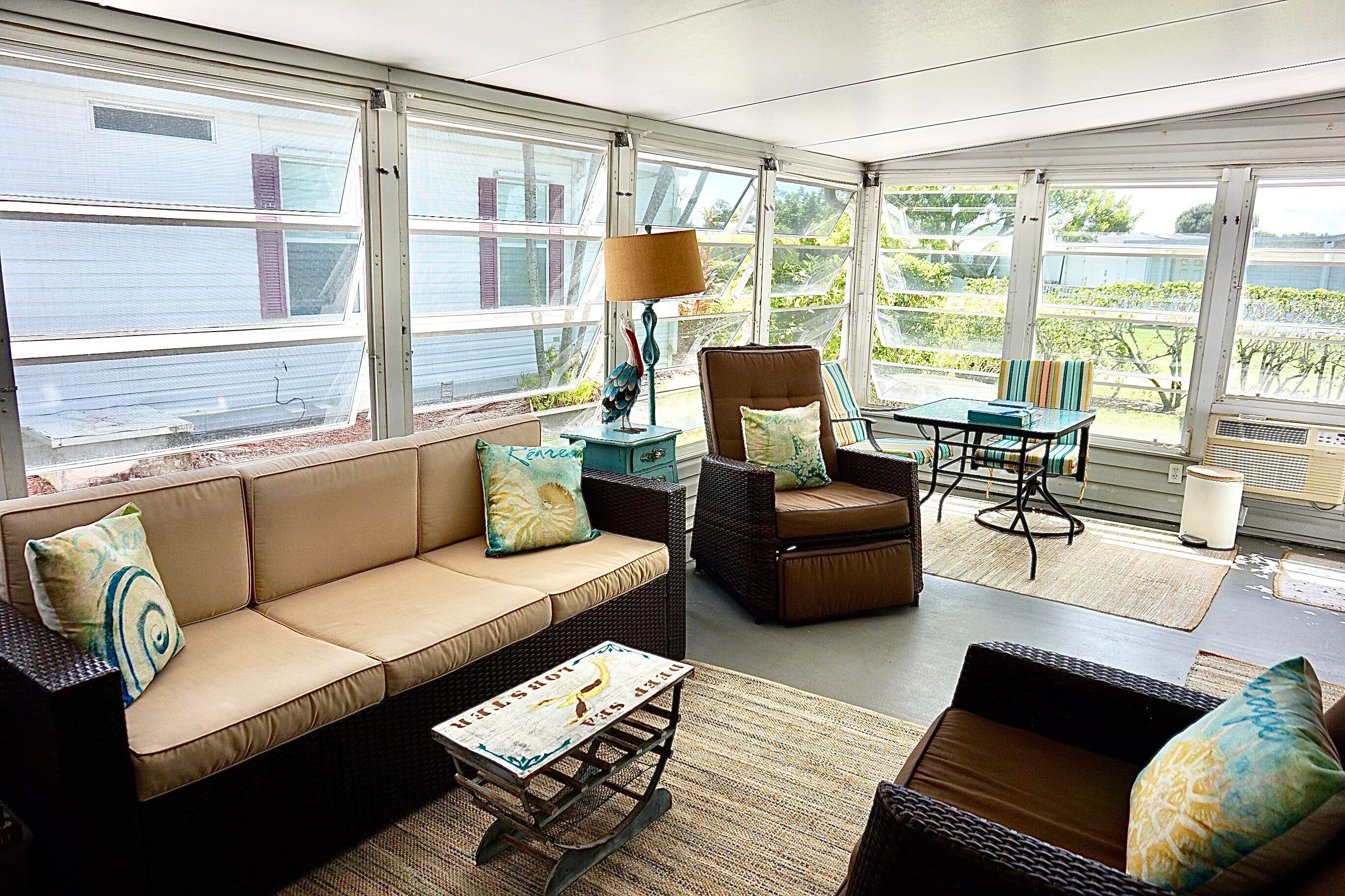 LAND-OWNED corner lot beautifully furnished home. Upgraded kitchen with quartz counter tops & newer appliances. Pantry with pull-out drawers. Main area tastefully tiled. Bedrooms carpeted. Skylights in kitchen and both bathrooms. Ceiling fans throughout. Split floor plan for privacy. Spacious lanai for those cooler days with cross breezes. Outside patio for barbecuing. Well provides water to auto sprinklers. Savanna Club is a highly desired 55 and over community with a plethora of activities. Owner is including 4 seater golf-cart with newer batteries. VA assumable loan balance $142,500 at 2.99% interest. Don't have to be a vet to assume.