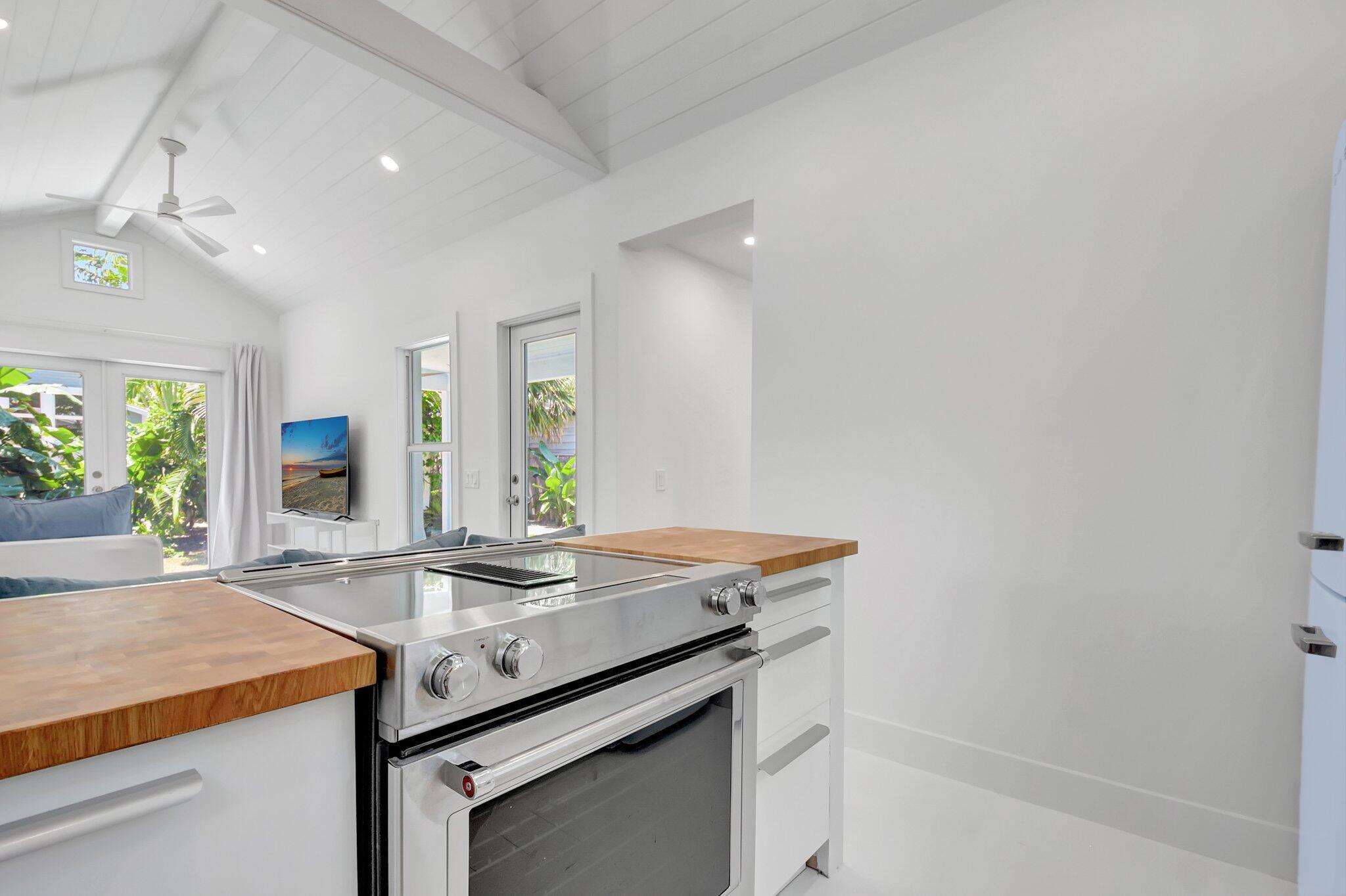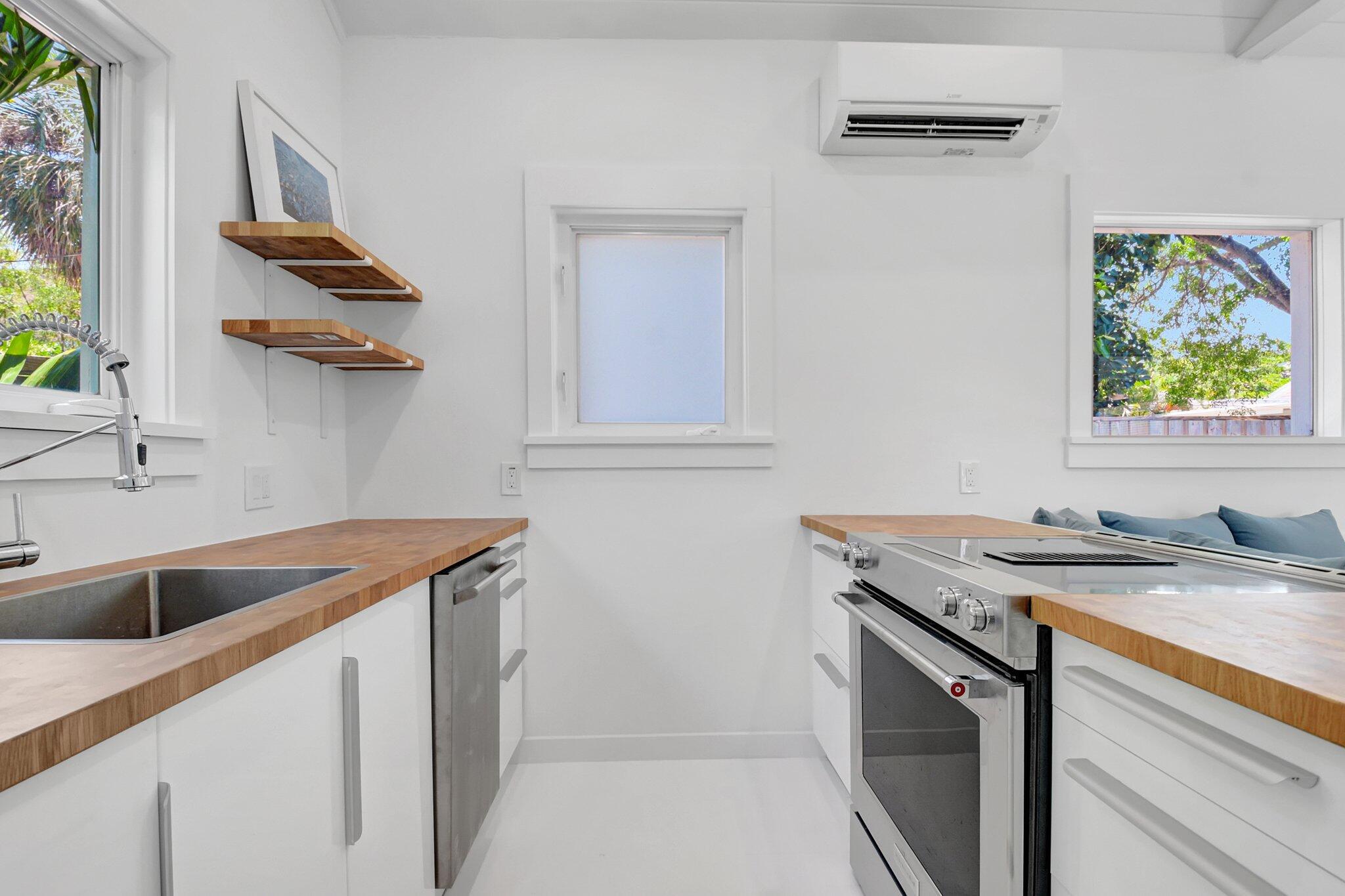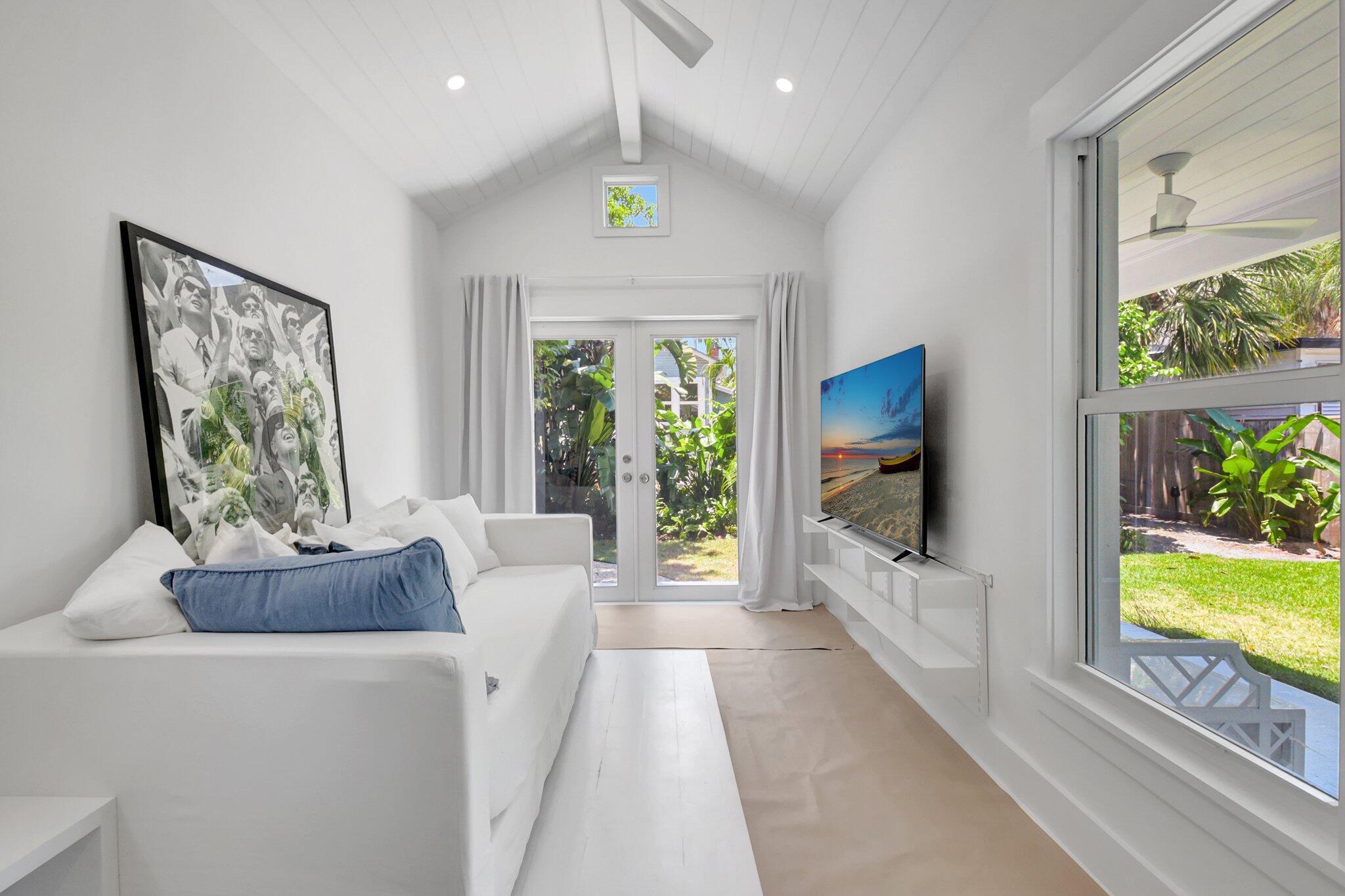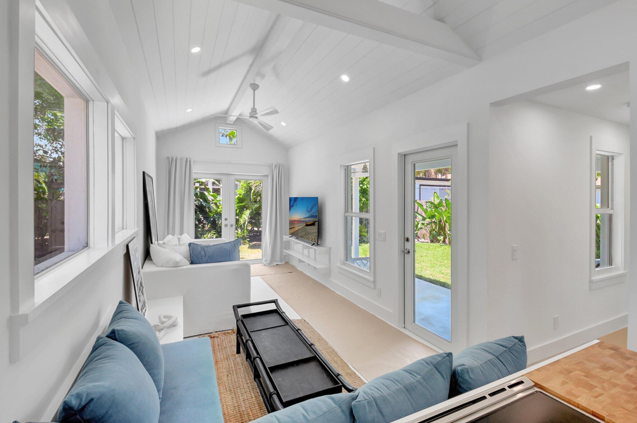 Annual furnished Rental. All new construction should be as nice as this. Just completed in 2025 - Be the first to reside/live there! Key West or Lake Worth Beach? It would be hard to tell sitting on your front extended covered patio. Outdoor private living at its finest. Vaulted ceilings with multiple impact windows and French doors for a light, bright & fresh appeal. Private rear entrance with a parking space. Comes furnished as seen at time of showing. Perfect location 2 blocks from the heart of downtown. Washer & Dryer. Additional storage area. All new Furnishings! Don't miss this!