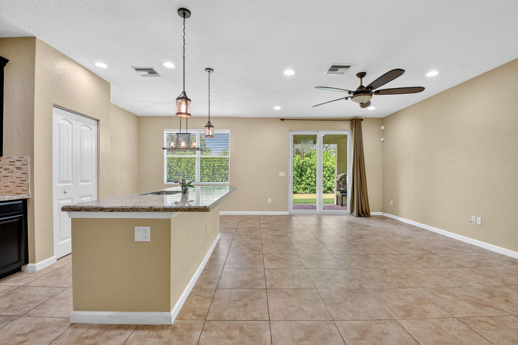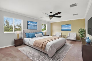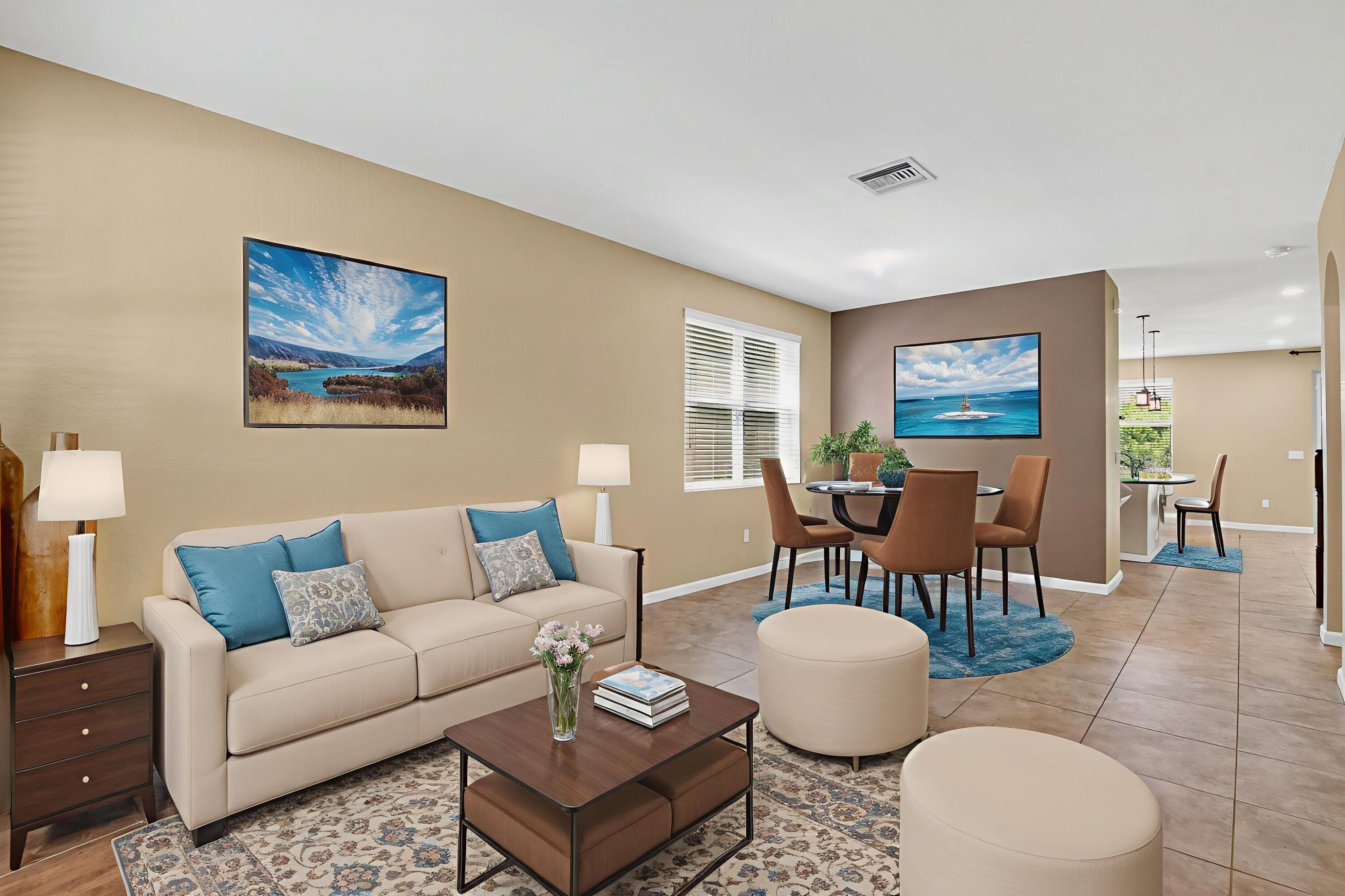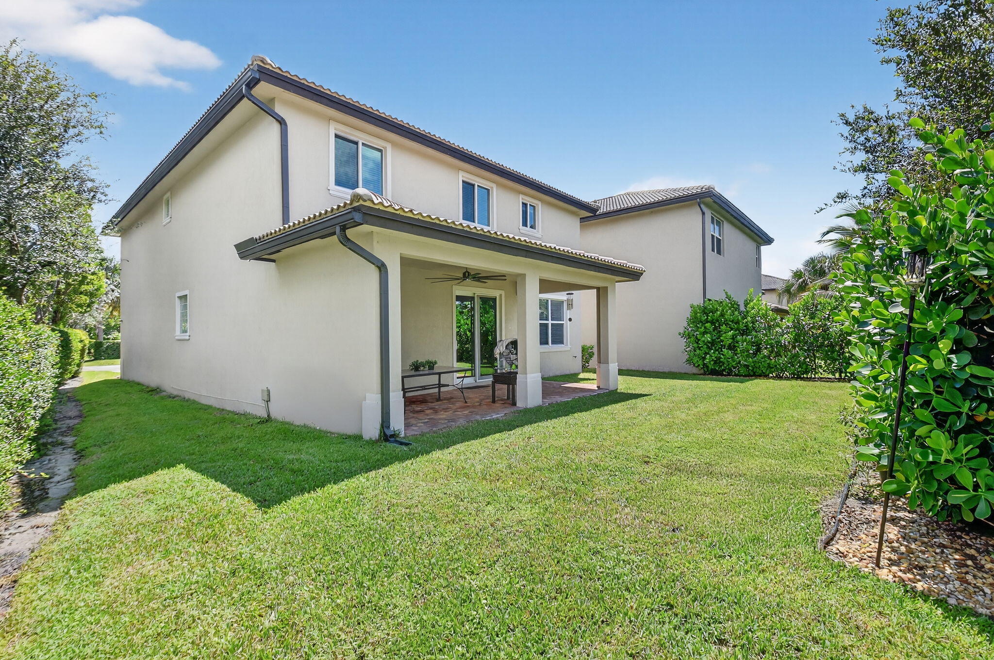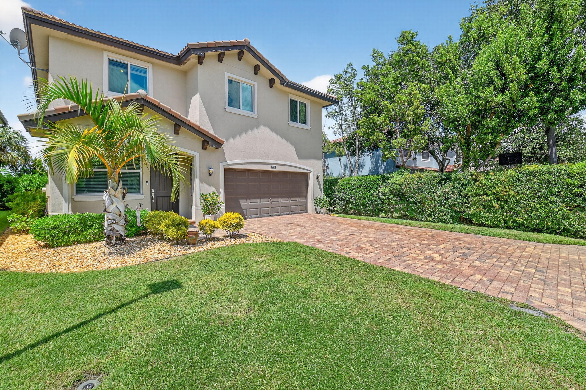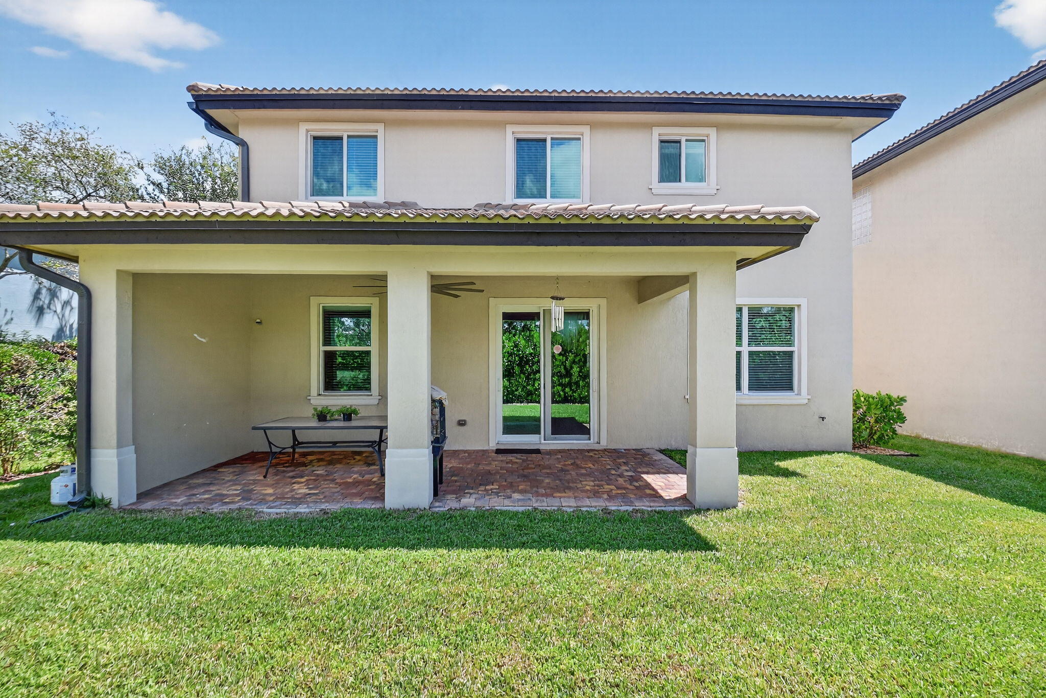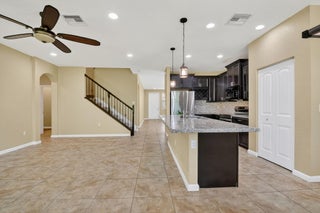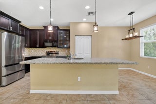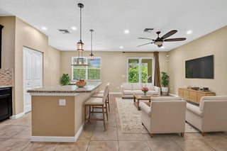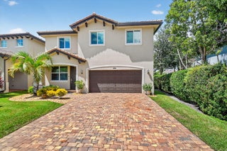 PRICED TO SELL! Beautifully maintained 5 bedroom, 3 bath home with 2,855 living square footage in the desirable Abbington gated community in Lake Worth! Built in 2016, this bright two-story home with two-car garage, boasts the privacy of being one of the northernmost home in the community, on a quiet end street!Enter through the grand living room and dining room space, offering high ceilings and neutral tiled flooring. Ceiling heights and flooring continue in to the spacious family room aside the open gourmet kitchen offering granite countertops, a tiled backsplash, stunning espresso wood cabinetry, large chefs island with sink, stainless steel appliances and a substantially sized breakfast area. Another exceptional property highlight is ...the well-thought out downstairs guest bedroom with full bath accessibility and separate laundry room with NEW Whirlpool washer and dryer with transferable warranty! Enjoy peace of mind with all impact windows, sliders and doors throughout, as well as a home security system. Serene covered paved patio with fan, looks out over large grassy area with mature Calusia privacy hedges. Cast iron and wood handrails lead to a well-designed floor plan on level two with three guest bedrooms, a large guest bath with double sink, a sizable loft area for added optional usage. The grand primary bedroom is a split floorpan design, offering full privacy, as well as a generously oversized closet an impressive primary bath with double sink, separate shower, soaking tub, linen closet and water closet. Stairway and upstairs flooring offers lush carpeting. The Abbington association provides its residents with lawn care, a secured gated entry, a low HOA, a community pool and clubhouse! These homes do not come on the market often! Don't miss this incredible opportunity to secure this stunningly luxurious well-priced home in the coveted Abbington gated community!