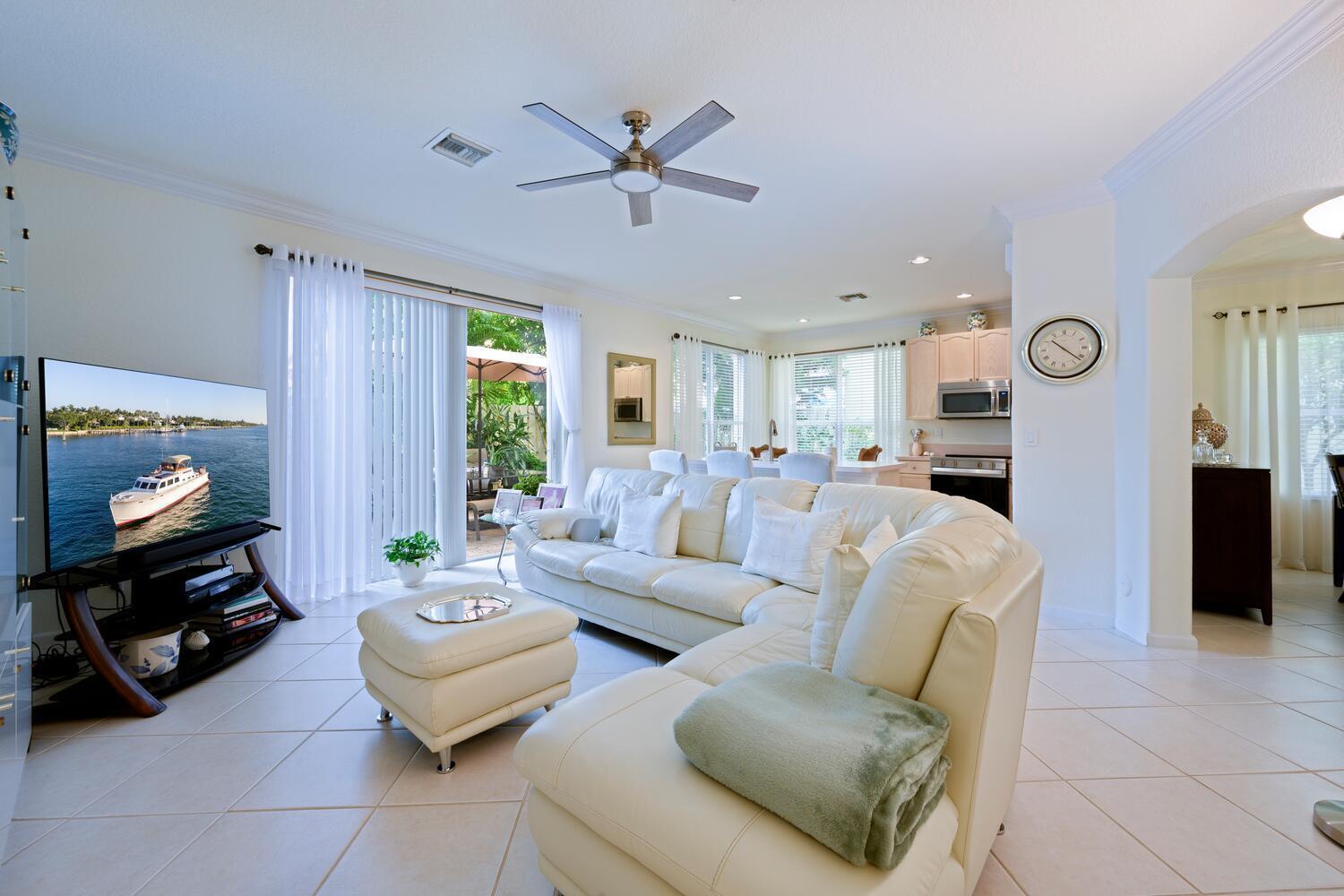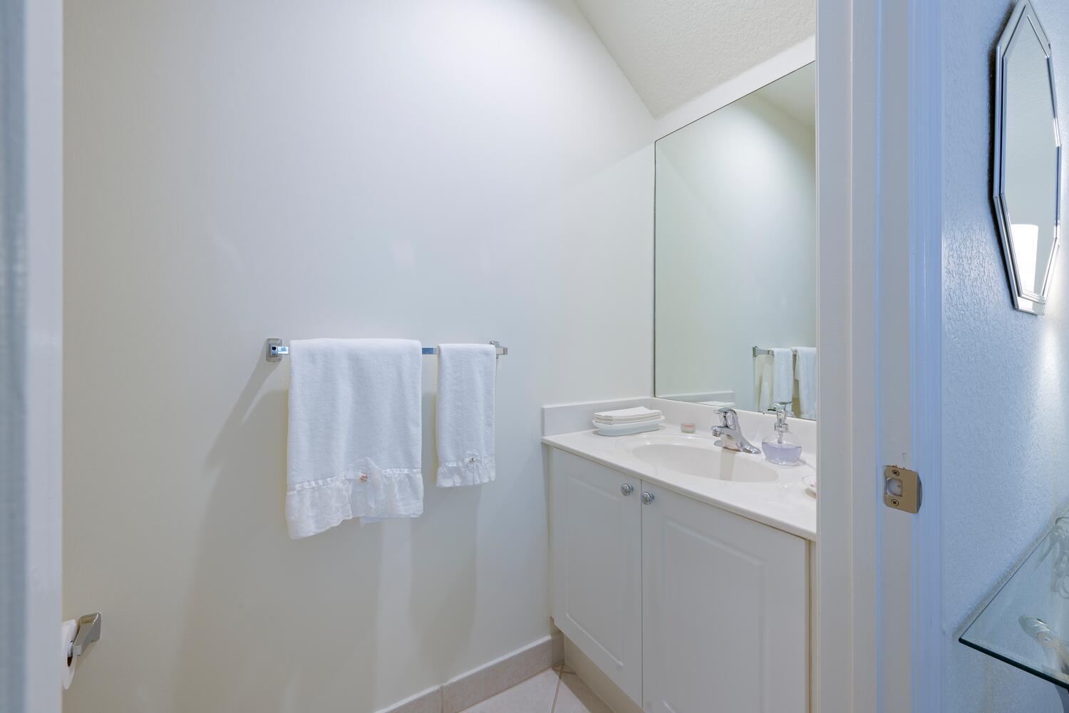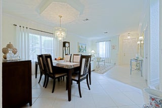 Welcome to this hidden gem nestled in the highly sought-after Lakes of Laguna. This stunning 4-bedroom, 2.5-bathroom home offers a private retreat and is perfect for entertaining or accommodating a large family. This home has a spacious layout featuring multiple gathering areas both upstairs and downstairs, inside and outside.Step into the large, light-filled living room, highlighted by a classy chandelier, wall sconces, and abundant natural light from oversized windows. Accordion hurricane shutters throughout provide both safety and convenience. The formal dining area is a showpiece, featuring a custom chandelier framed by a stylish ceiling soffit that adds depth and architectural character to the space. Beautiful tile floors downstairs, recently refreshed grout, and classy archways create a seamless flow to the kitchen. The kitchen is designed for both style and practicality, with stainless steel appliances, ample cabinetry, and a spacious island offering seating for casual dining and sink overlooking the living room and lush backyard. A bright breakfast nook provides views of tropical landscaping, and sliding glass doors open to the outdoor patio, perfect for entertaining. Crown molding, recessed lighting, and modern ceiling fans enhance the elegance and functionality of the home. Upstairs features a large third living area, ideal as a TV room, home gym, nursery, or office. The master suite is a true retreat, with a luxurious bathroom featuring a soaking jacuzzi tub, separate tiled shower, double vanity, and a spacious walk-in closet. Three additional guest bedrooms offer ample closet space, and the guest bathroom includes double vanities and a separate shower/tub combo for maximum functionality. The upstairs laundry room adds convenience. And luxury vinyl plank flooring adds comfort and style throughout the upper level. Outside, the backyard is a private oasis with lush, meticulously maintained landscaping and two outdoor seating areas. A large patio and hidden nook provide space for entertaining or relaxing in peace, creating a serene atmosphere reminiscent of Bali or Thailand. Lakes of Laguna is a gated community offering a variety of amenities for comfort and recreation, including multiple swimming pools, tennis and basketball courts, scenic walking paths, a playground, picnic areas, and a welcoming clubhouse. Centrally located, this home is just minutes from the beaches, I-95, PBI airport, the Turnpike, grocery stores, Downtown West Palm Beach, The Outlets, Kravis Center, restaurants, shopping, hospitals, and more, making this the perfect home for you!
