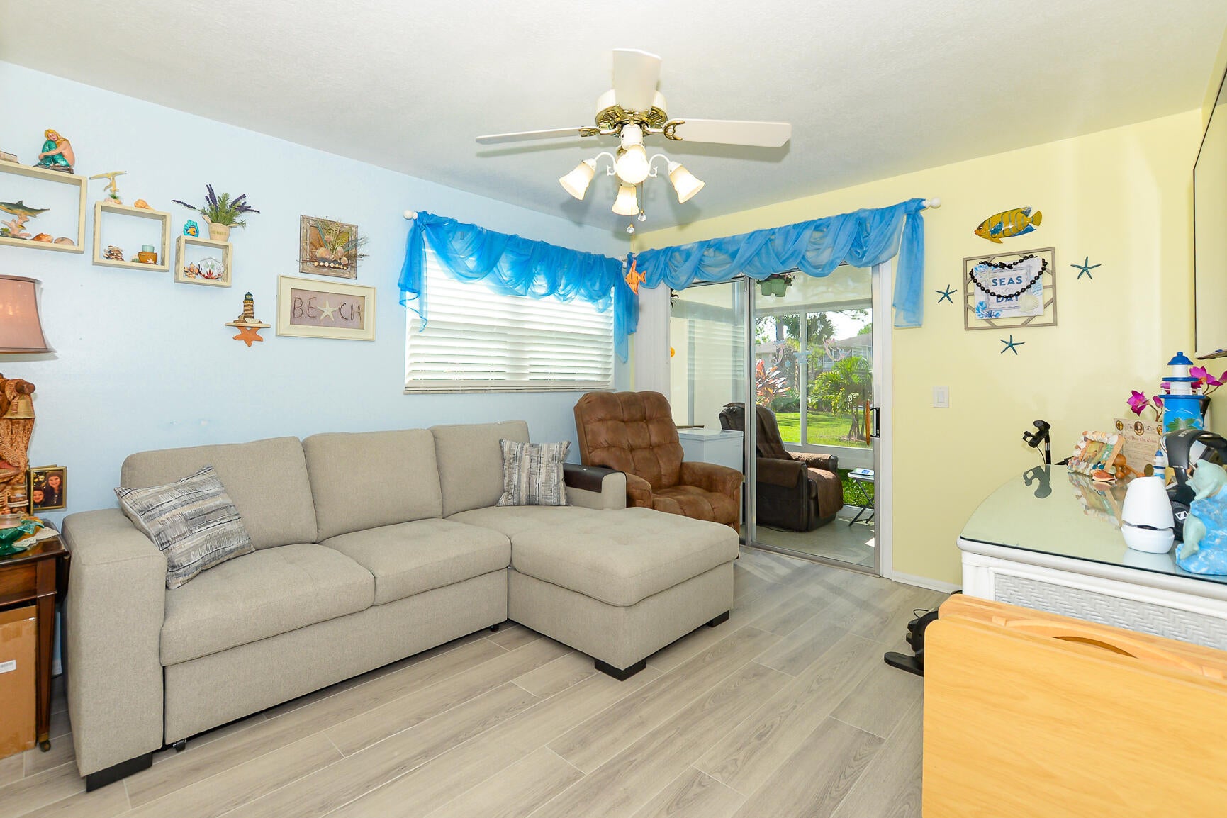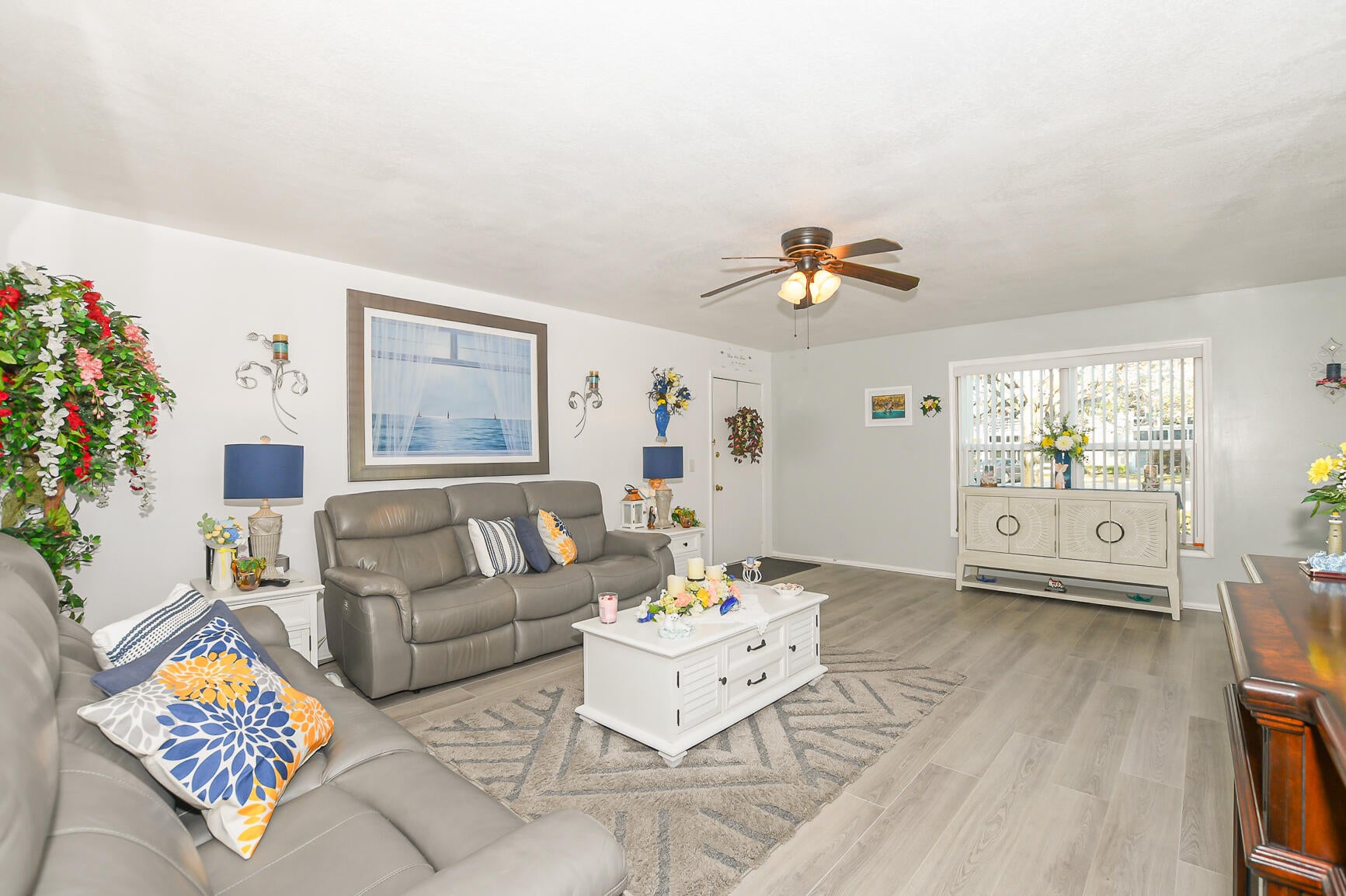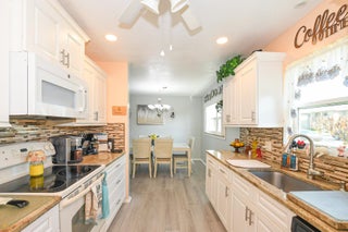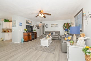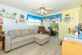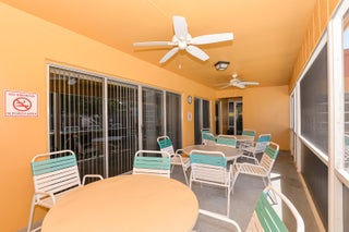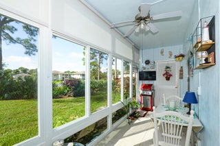 Own one of the best homes in the whole community. The largest of all the units, the Woodrose, which has been completely updated from floor to ceiling with impact windows, new impact glass enclosure for Lanai, tile, granite countertops, new cabinets, new flooring throughout, fresh paint, water filtration system, new vanities and new custom tile ensuite shower with glass door. Unit also has been upgraded to have a washer and dryer. Perfect location in the community with lovely garden view from Lanai. Quiet and beautifully maintained community which is in the heart of everything with no city taxes. Cable, internet, water, trash removal, home phone, sewer, roof replacement, exterior maintenance and exterior pest control all included! Never be bored again, enjoy community clubhouse,shuffleboard, pickleball, tennis, billiards, fitness room, library, games, classes and clubs. Bring your pickiest buyer and this unit will not disappoint.