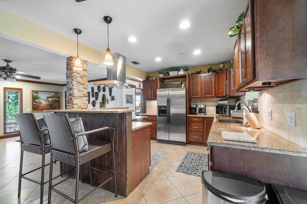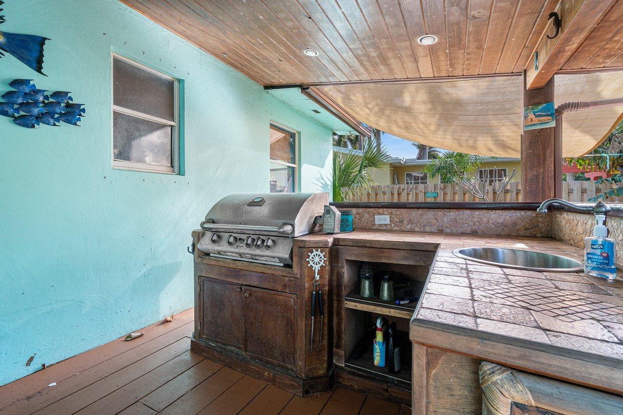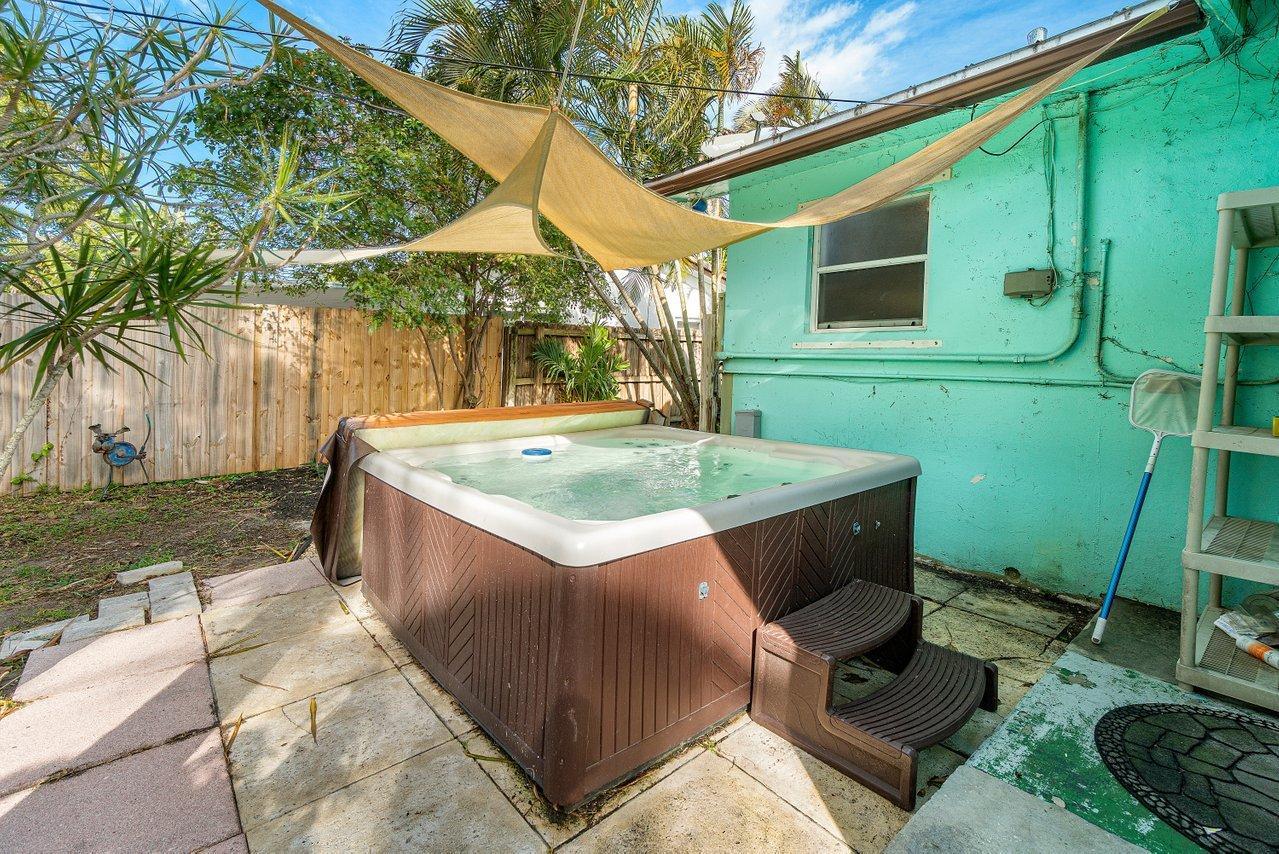Available Seasonal, Summer, or Annual! New Bathroom install!Just one street from the Intracoastal, this turnkey home offers the perfect mix of tropical style and everyday comfort. An open floor plan creates a welcoming space for entertaining, with a wide, well-appointed kitchen at the center. The master suite exudes a chic island vibe with bamboo wood floors, while the guest room pops with Caribbean blue walls and dark bamboo floors. A third bedroom, bright and airy, doubles as a cozy den with twin beds. The master bath channels the tranquility of a Costa Rican rainforest, while the guest bath reflects timeless Old Florida charm. Step outside to your private backyard oasis--lush tropical landscaping, a spacious deck with resin bar top and grill, and a hot tub for unwinding after a long dayWhether you're seeking a seasonal retreat or a year-round residence, this home is ready to welcome you.