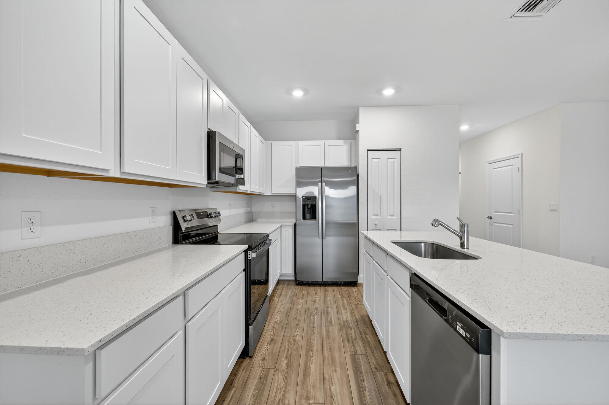 Be the first to call this 3-bedroom, 2.5-bathroom, brand-new townhouse home! Nestled in a highly desirable gated community, this modern townhome offers convenience with easy access to highways, shopping, dining, top-rated schools, and more. Built by Lennar, the home features stylish flooring throughout the downstairs living area and kitchen. The kitchen is equipped with sleek quartz countertops, stainless steel appliances, and a breakfast bar that opens to a spacious great room. The master suite boasts a generous walk-in closet, a stand-up shower, and a separate linen closet. With tall ceilings and abundant natural light, this home is both bright and inviting! Lawn care and internet is included in rent.