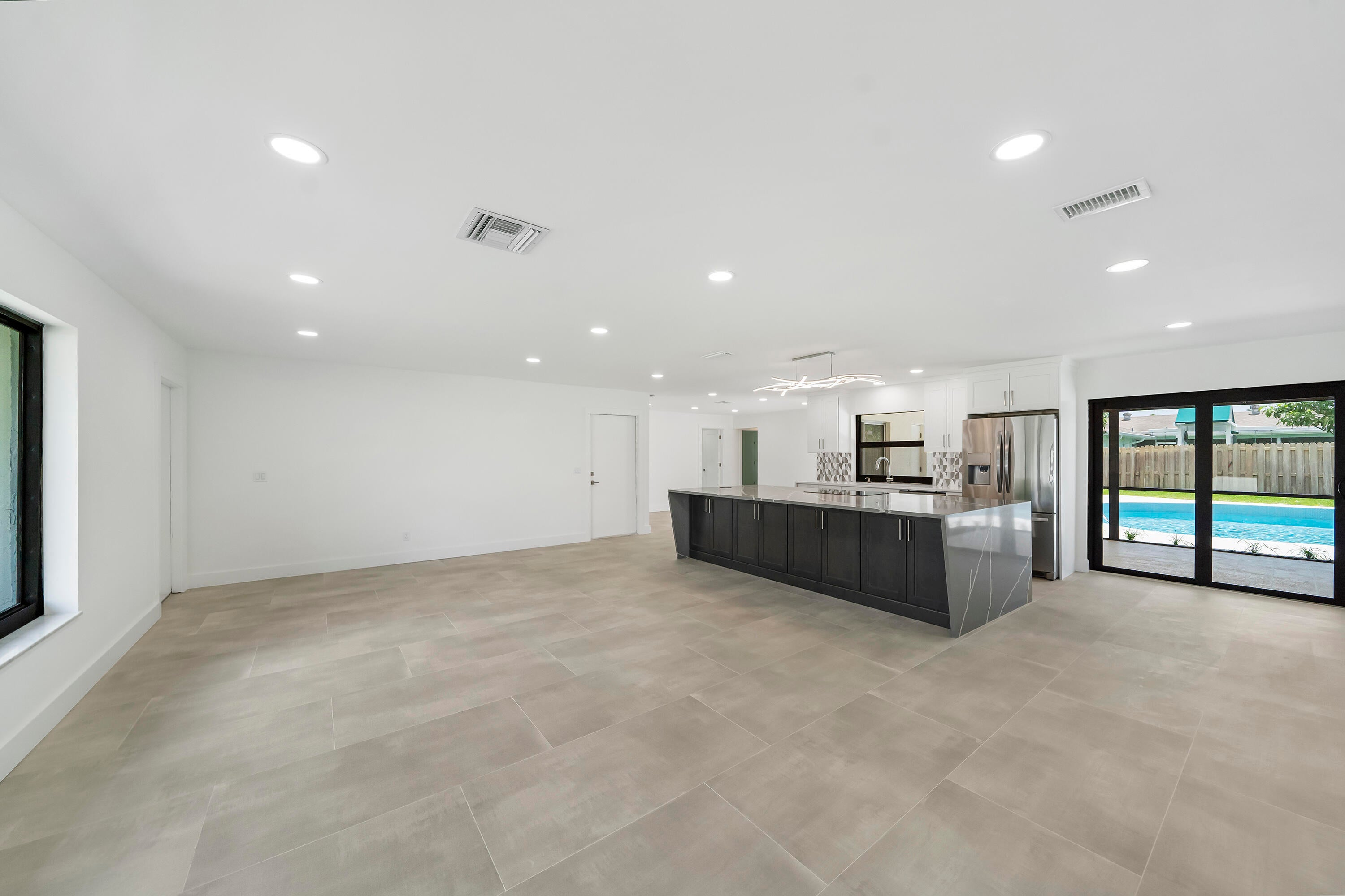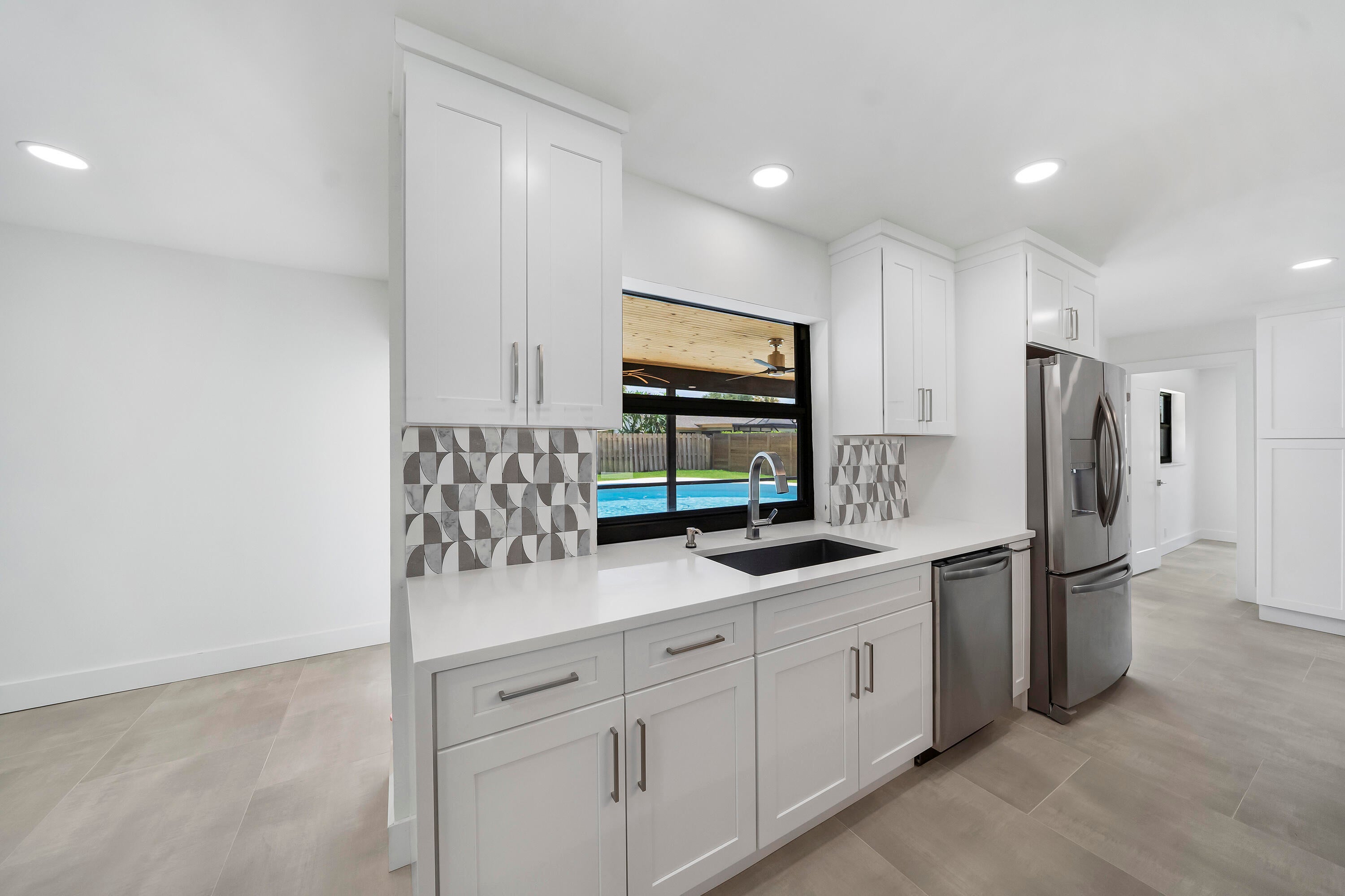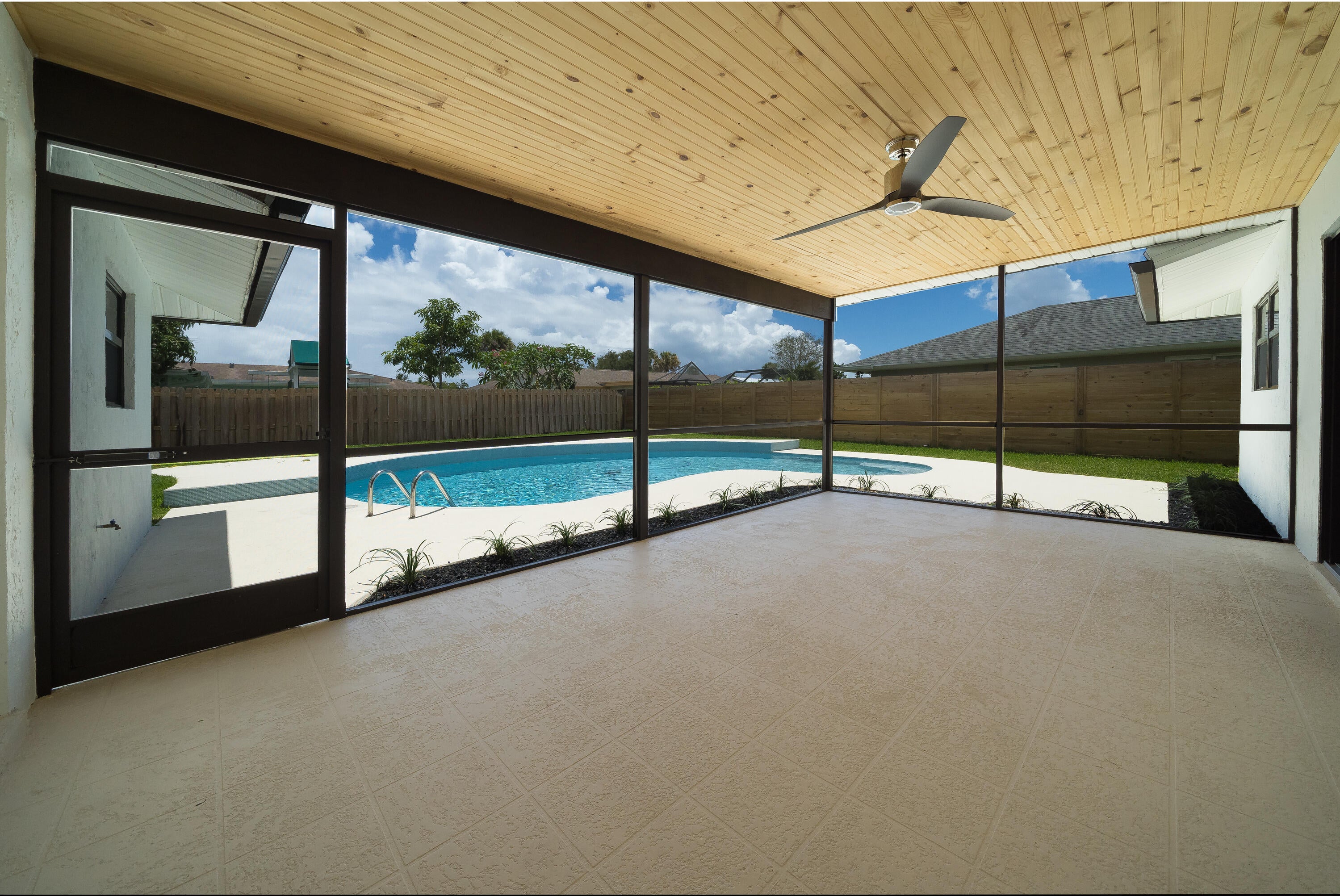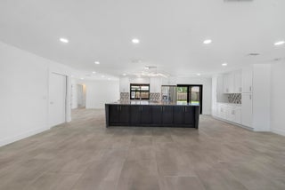 Large pets welcome. Gorgeous fully renovated, unfurnished, 4 Bedroom, 2 Bath, Pool Home w/ 2 Car Garage. Nov 1 move In. Located Garden Woods with no HOA. The renovated kitchen has a huge island that seats up to 7 and opens to the living room & dining room. The kitchen is complete w/soft close wood cabinets, stainless steel appliances & quartz countertops. The whole house has complete impact windows & sliders, 24'' x 48'' large format porcelain tile and recessed lighting. Both bathrooms have been fully renovated and the 2nd bath is also a cabana bath. The screened, covered patio opens to the pool deck and spacious fully fenced back yard. Lawn and pool maintenance included in rent.