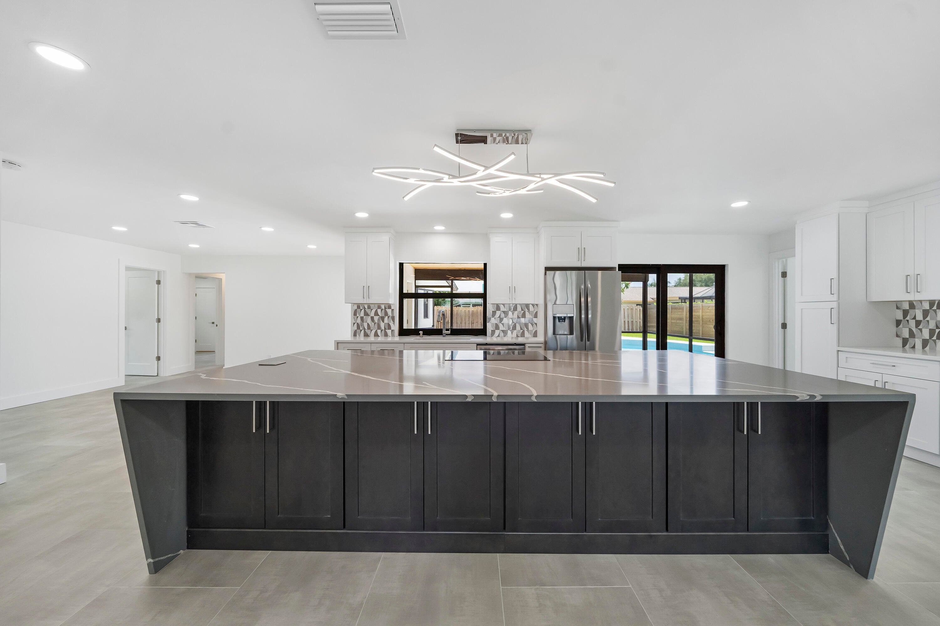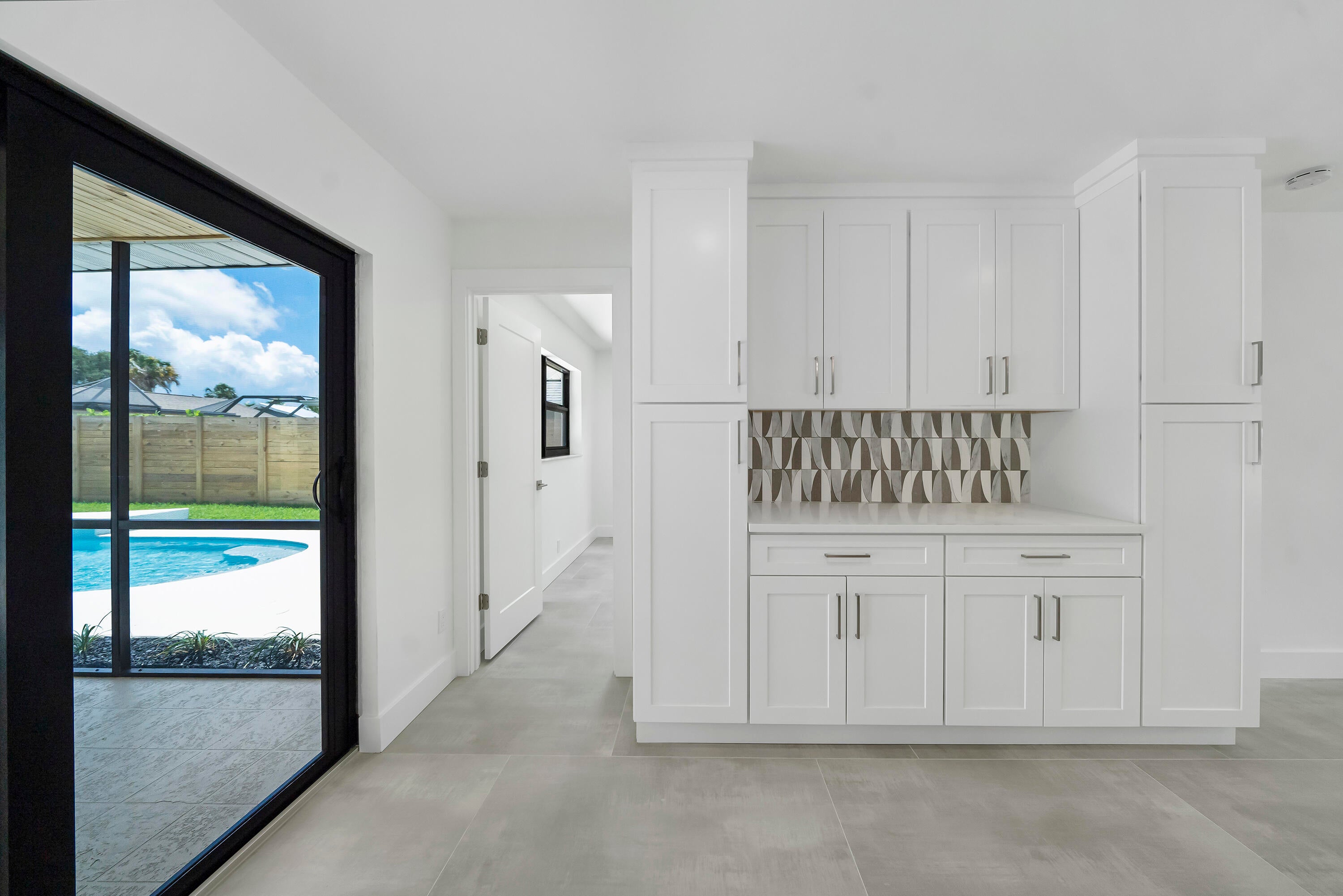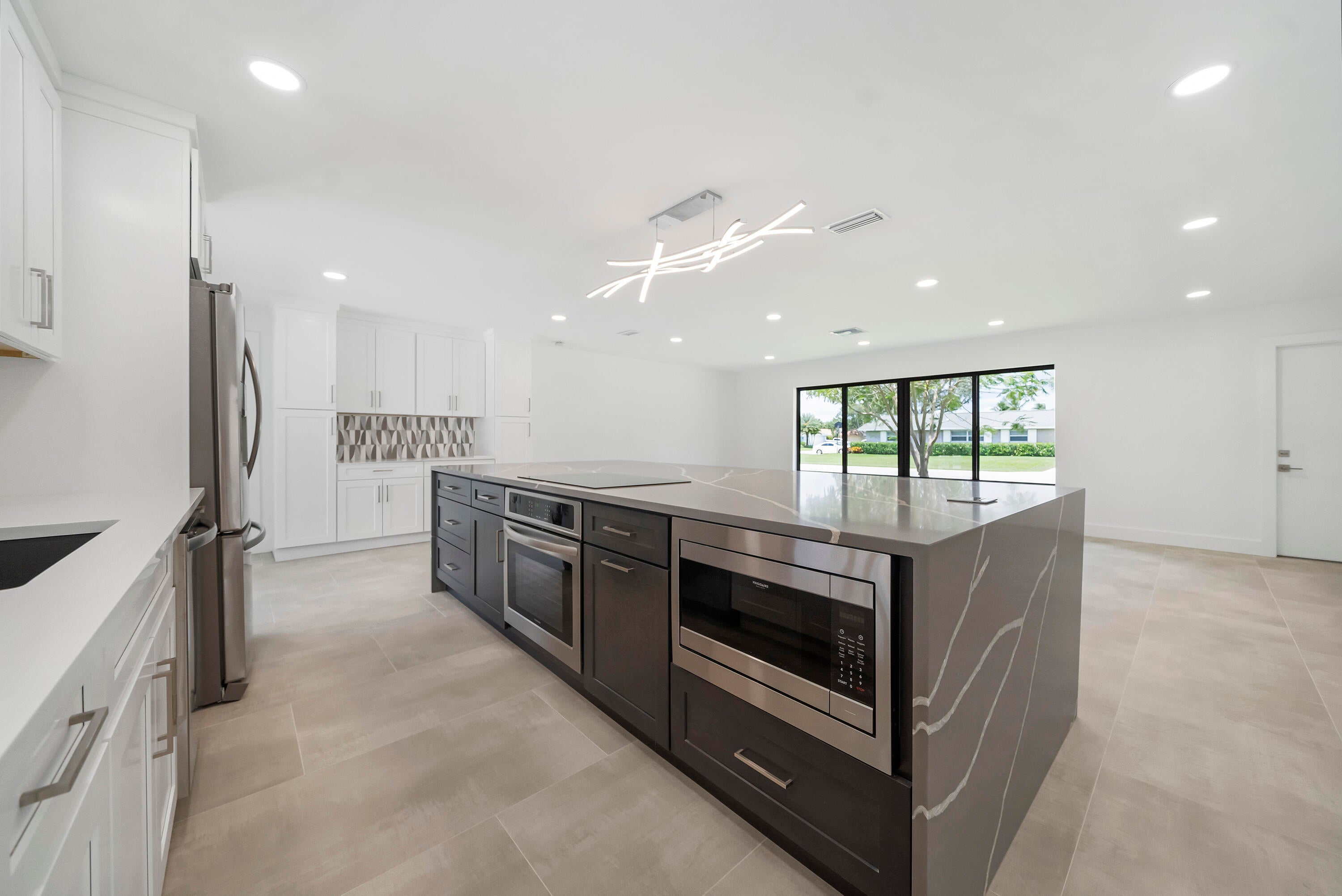 Large pets welcome. Gorgeous fully renovated, unfurnished, 4 Bedroom, 2 Bath, Pool Home w/ 2 Car Garage. Nov 1 move In. Located Garden Woods with no HOA. The renovated kitchen has a huge island that seats up to 7 and opens to the living room & dining room. The kitchen is complete w/soft close wood cabinets, stainless steel appliances & quartz countertops. The whole house has complete impact windows & sliders, 24'' x 48'' large format porcelain tile and recessed lighting. Both bathrooms have been fully renovated and the 2nd bath is also a cabana bath. The screened, covered patio opens to the pool deck and spacious fully fenced back yard. Lawn and pool maintenance included in rent.
