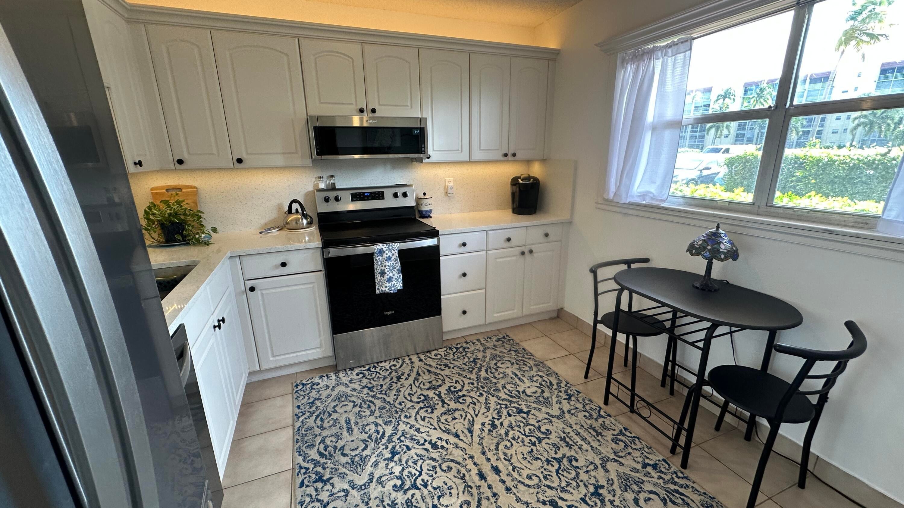 Must see this beautifully renovated 1 bed 1.5 bath 1st floor condo located in the Oxford building in Poinciana Place & walkable to the tennis courts NEW flooring throughout, NEW appliances, NEW quartz counter tops, NEW light fixtures, NEW shower and toilet, NEW washer and dryer! Enjoy the spacious master bedroom that features 2 walk-in closets & an expansive golf course view! The renovated master bathroom boasts a walk-in shower too! Unwind in the screened in patio that overlooks the golf course. Poinciana Place is a 55+ active adult community that boasts lots of amenities to keep you busy that includes an 18-hole executive golf course, tennis, bocce, shuffleboard, a private pool & Mel's Way Bistro, open 6 days/week for all meals with live entertainment 4 nights/week. No pets or smokers.
