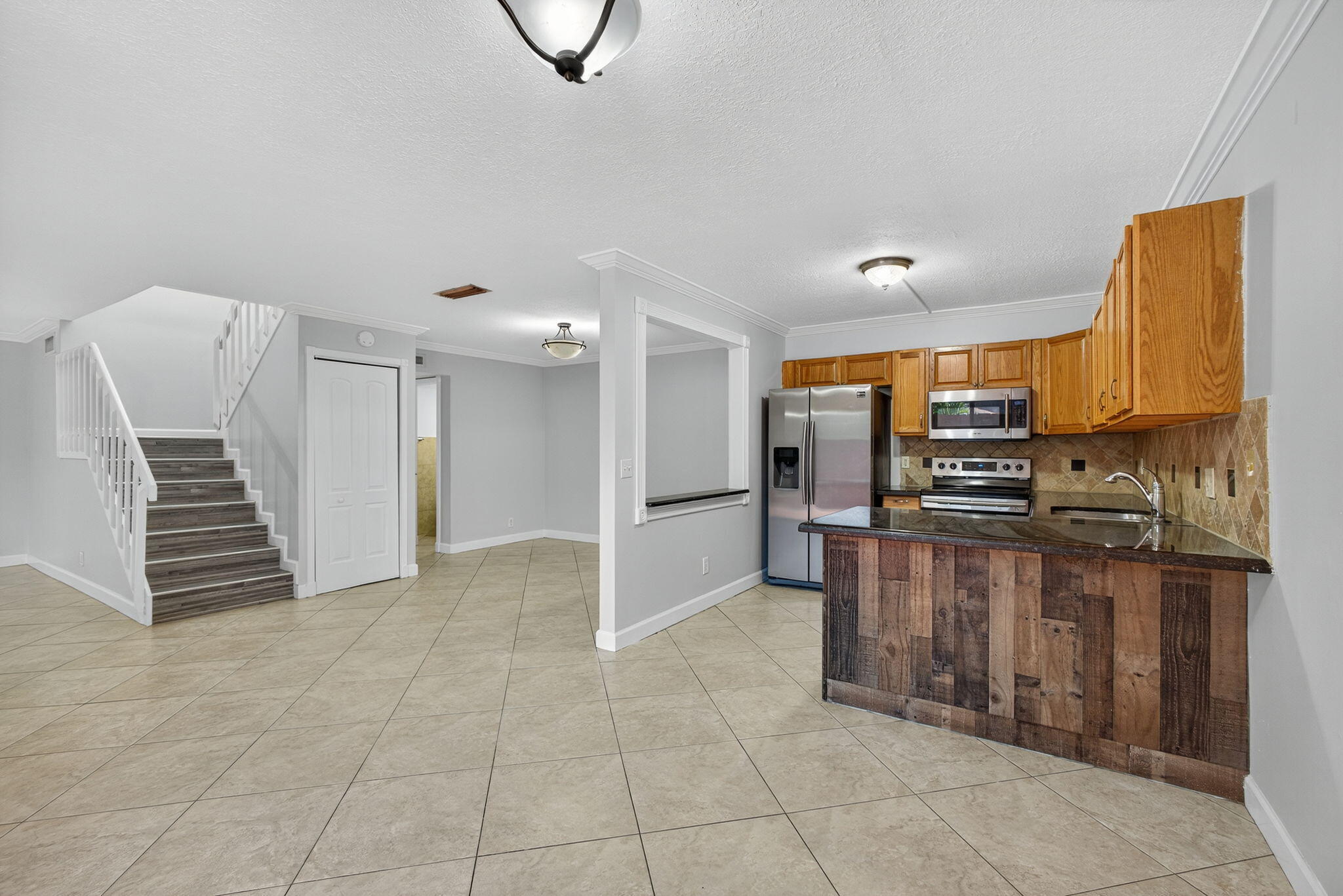 GORGEOUS 3 bedroom, 2.5-bathroom RENOVATED townhome nestled in the vibrant heart of West Palm Beach with a NEW ROOF, New FRONT DOOR and Newer A/C (2023). Meticulously renovated with crown molding throughout the downstairs, captivating farmhouse theme, every corner exudes charm and sophistication. Step inside to discover beauty where every bathroom boasts exquisite tile work and each vanity cabinet has been tastefully replaced. The kitchen is a chef's dream, with nice countertops and equipped with newer stainless-steel appliances.