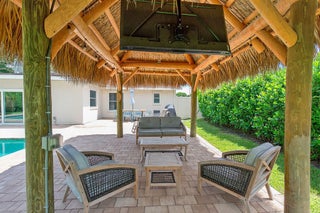 Unfurnished or fully furnished./turnkey. Beautifully renovated 3/2 pool home with 1 car garage in Palm Beach Gardens. Fabulous large fenced back yard, pool w/ large pool deck, Tiki Hut with electric and big screen TV Annual rental only, pool & lawn maintenance included in rent. The light & bright kitchen has been completely redesigned with white shaker cabinets, quartz counters, custom floating shelves & GE appliances. Both bathrooms received a complete makeover with a walk-in shower in the master, tub in guest bath. Vinyl plank flooring stretches throughout the living space & accented by designer tile in the Florida room & laundry room. All windows are impact glass & for added peace of mind a whole house Generac gas generator & tankless gas water heater.Located in the heart of Palm Beach Gardens, easy access to I-95 & TPK. Beaches, fishing, golf, restaurants and shopping just minutes away. Available immediately. Quick move in.