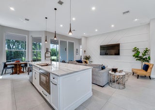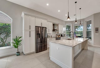 This beautiful open concept renovated home is one you will not want to miss. Located in the Oakmont subdivision of The Fountains. This home has 3 bedrooms and a den that could easily be a 4th bedroom, 2.5 bathrooms, a 2 car garage with EV charging system and a covered screened patio with a golf course view what else could you want in a home! There is matching ceramic tile throughout the home so you will not have any transitions in the flooring from room to room. Storms will not be an issue in this home because impact windows have been installed throughout the home. With the homes location on the golf course you will have privacy and you will not have any neighbors behind you just a beautiful view. This home is NOT in a 55+ area of the community.