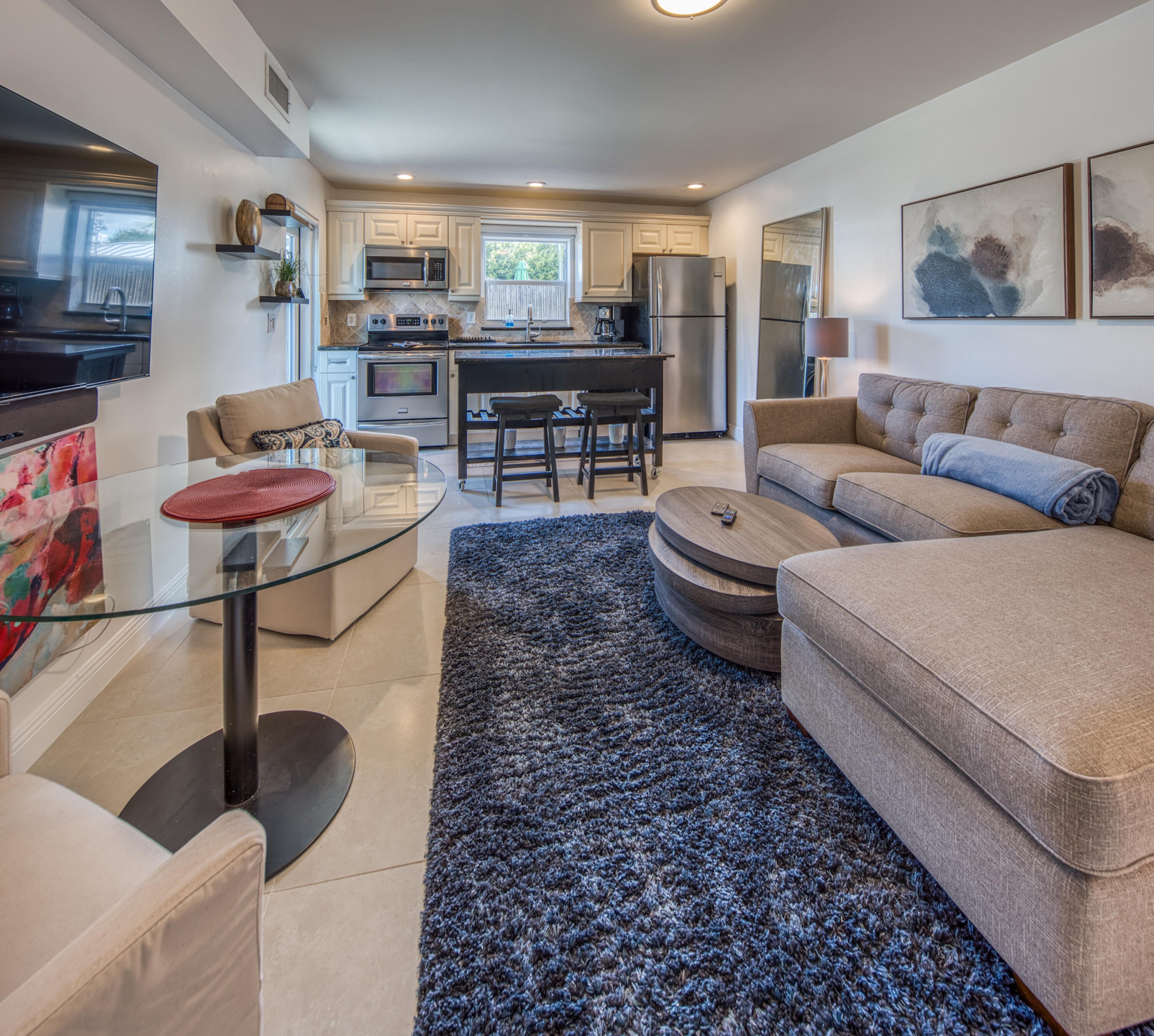 Beautiful and super private Lux 1/1, private tropical yard, turnkey, full range, ref, micro, W/D, Central A/C, east of Federal, central to everything