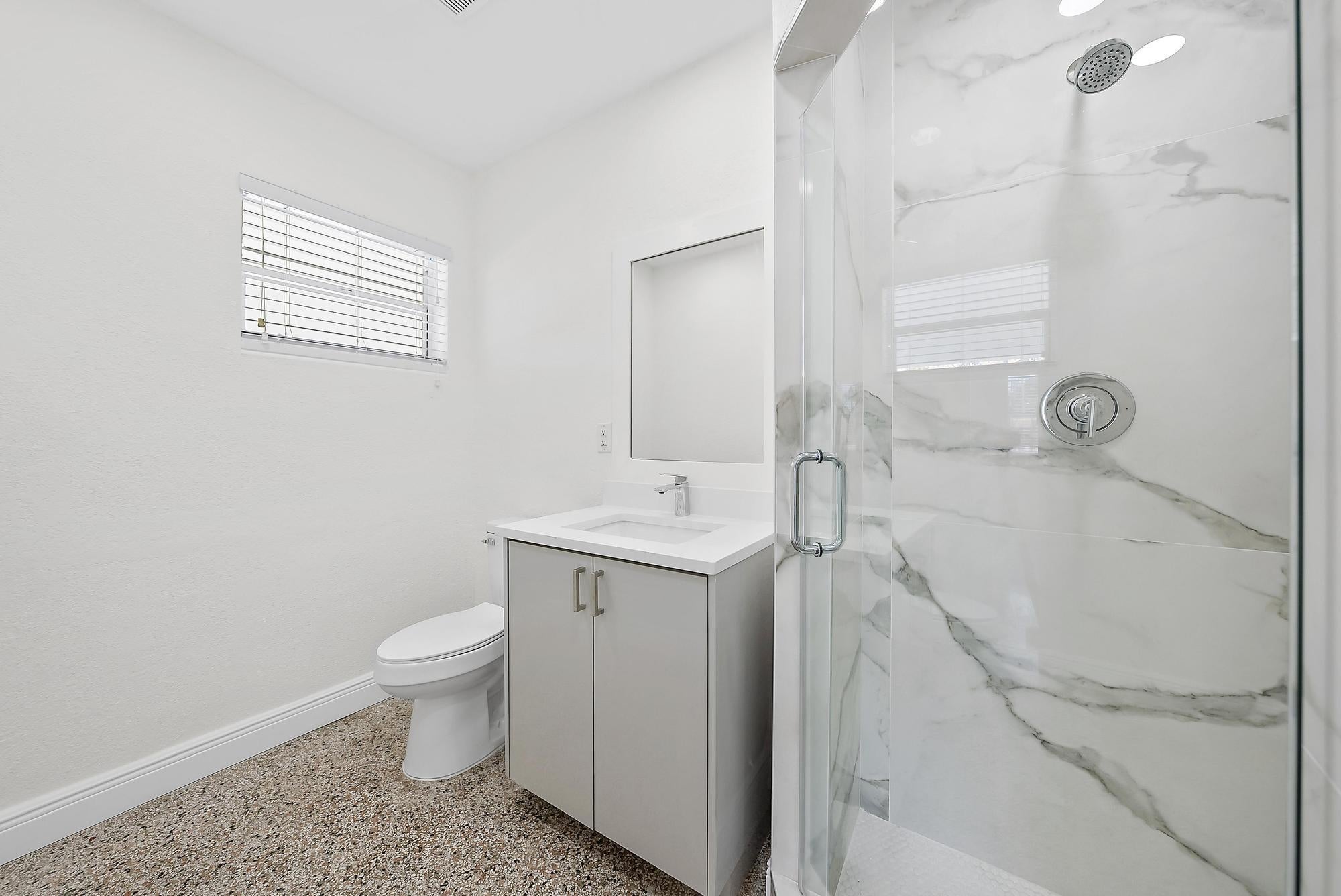 Immediately available, NO HOA and easy to move in!!! Don't miss this completely renovated 1 bedroom 1 bathroom apartment w/ brand new stainless steel appliances, HVAC, and impact windows. The parking is well lit and right in front of your new place! This unique property has two fenced in courtyards, one with a front entrance and the back entrance perfect for relaxing and BBQ'ing. This could also make a perfect work/live apartment! Pet friendly. You are also very close to St Marys Hospital, Good Samaritan Hospital, Palm Beach, Northwoods, supermarkets, Singer Island and Phil Foster Beach and more. Don't let it get away!
