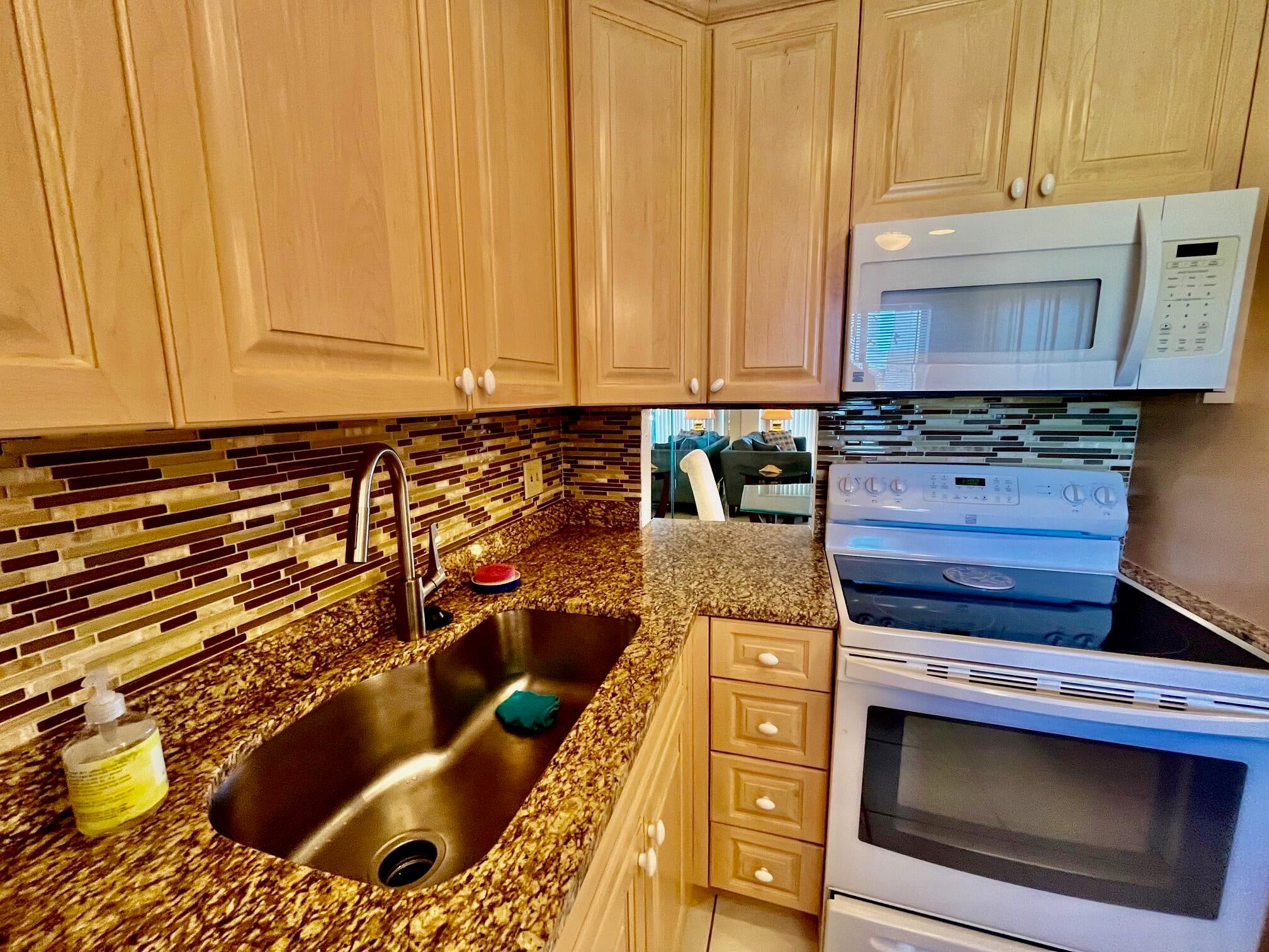 Immaculate, airy, bright. Kitchen has granite countertops. Beautiful sunlit views from the balcony and master bedroom with ample closet. space and two bathrooms.Just steps away from the Tivloli heated pool. Minutes away from restaurants and shopping.