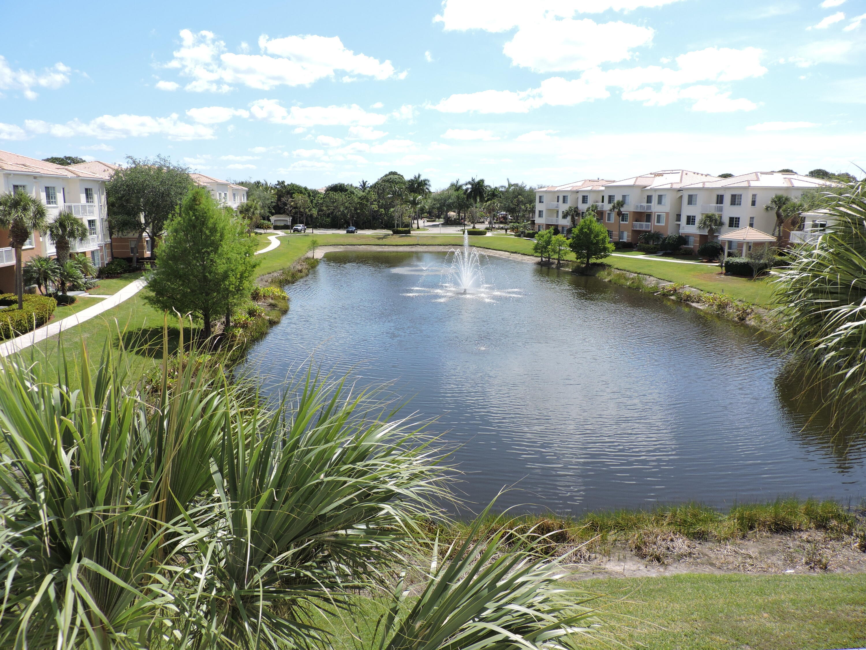 Great neighborhood in gated resort community which has it all. This 2 bedroom, 2 full bath 3rd floor 1,213 square feet under air. Flooring has 16'' marble diagonal tile through out (NO carpet). Entire unit has been freshly painted with some upgrades with new lighting, mirrors in bathrooms, new shower heads and more. All newer appliances with stainless steel refrigerator, microwave, range, dishwasher and Samsung washer and dryer. Florida room off of living room. Community has a resort pool, gym, kids play area, barb-b-que area, meeting room, media room. Close to all shopping including Publix grocery store, restaurants, banks, shopping, Abacoa public golf course and I-95.
