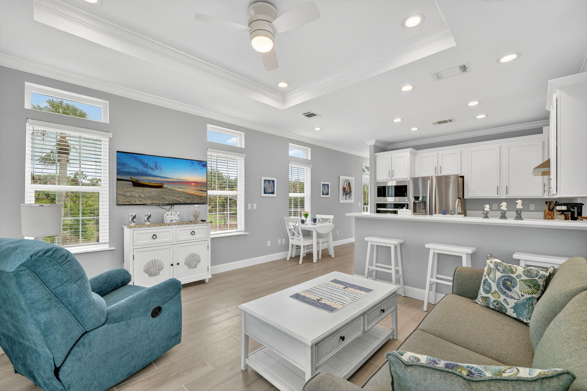 Beautiful fully furnished, turn-key 2 BR - 2 BA practically brand new. What a GREAT location - SO many amenities - so close to downtown Jensen Beach. This active 55+ community is much sought after. This unit has a pad that will hold an elevator - We have 2 units next to each other - so buy both and have a family compound! Check out 300 NE Coastal. NO taxes - Land lease covers water, sewer and trash and all amenities. SELLER FINANCING AVAILABLE!