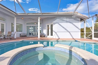 Gorgeous Florida retreat! This 4 bedroom, 3 full bath pool home has been beautifully remodeled and very tastefully decorated to make your dream vacation a reality. King master suite, 2 Queen suites, & twin w/trundle will sleep 8 comfortably. The huge master suite has French doors leading to the private, screened in pool and spa. The spacious master bath features double floating vanities, soaking tub and a dual head doorless walk in shower. Spacious and well-appointed kitchen opens to the enormous living room for entertaining with ease and comfort. The home even has a billiards table, ping pong and an office! Located on 2 acres in a quiet country setting yet close to beach. No annual leases. Available 2025-2026 season. NO PETS AT ALL.